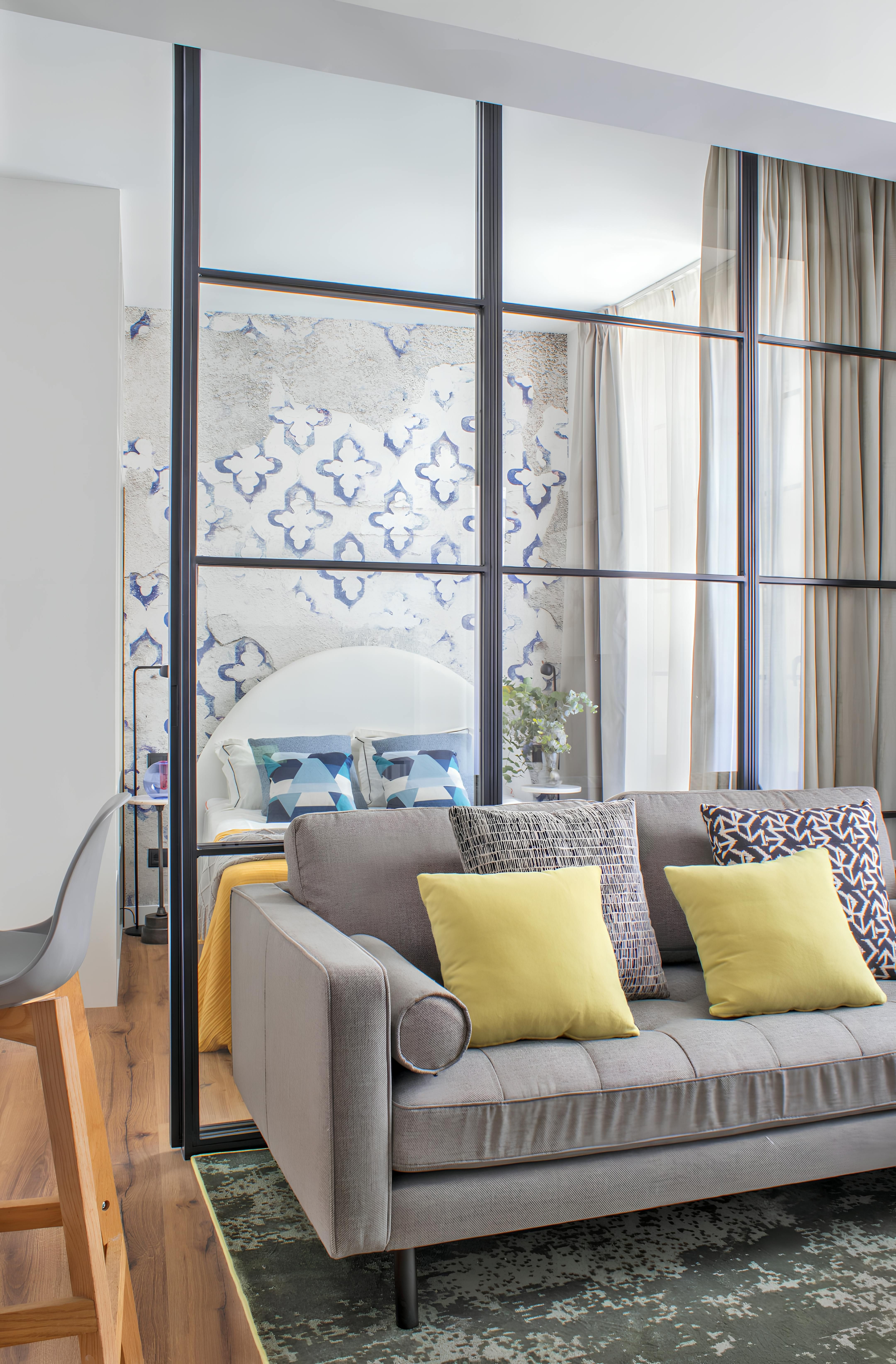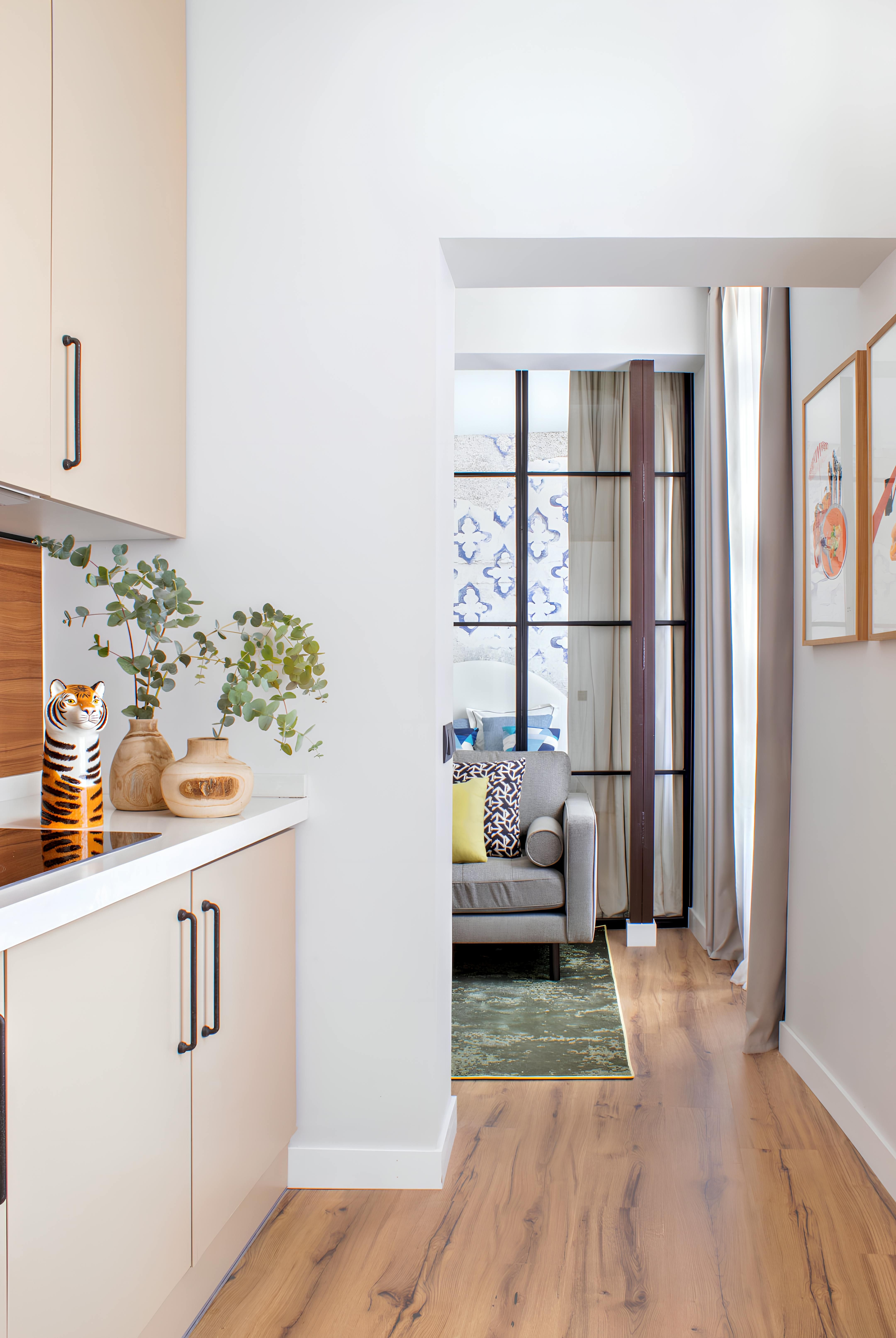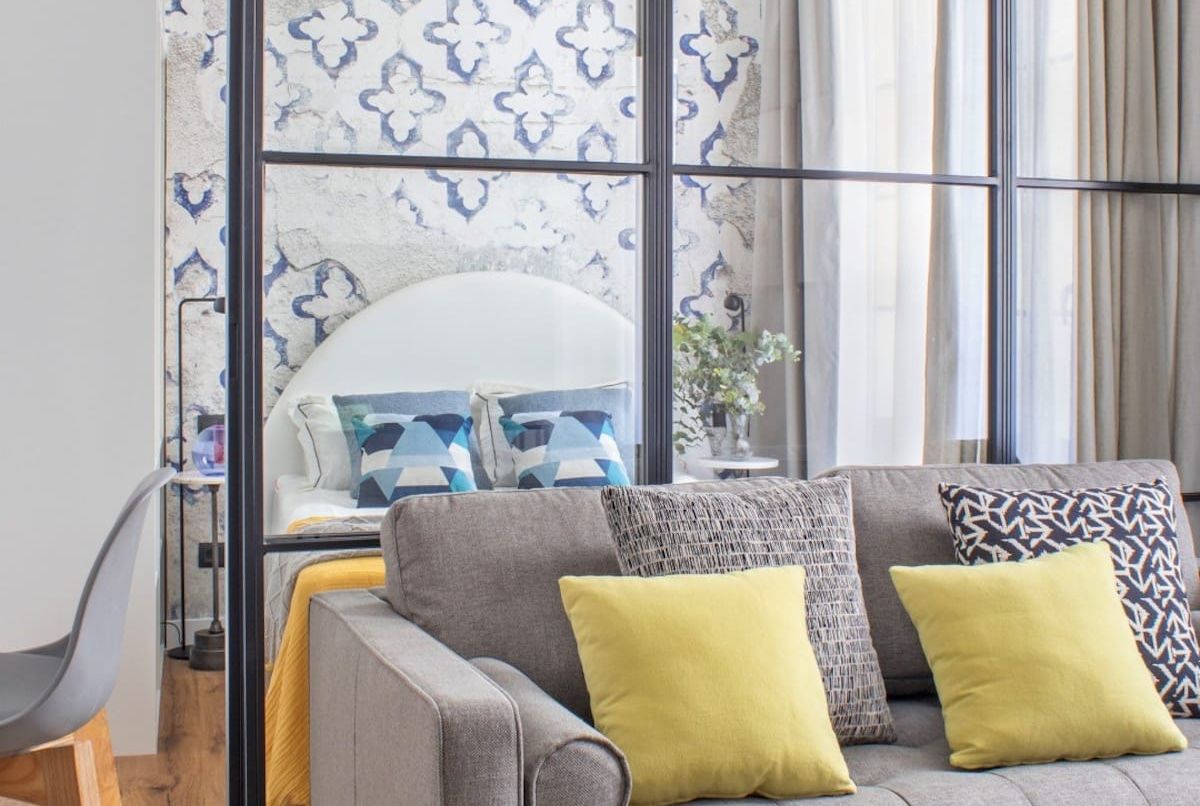 This Madrid apartment is perfect for solo travellers and couples. It's small but packed with style, from colourful artwork to contemporary details. Layout-wise, it's similar to a studio – a glass wall divides the space, but it has curtains for privacy. You'll have a glimpse of the cathedral, too – proof that you're right in the heart of the action here. All the must-see spots are within walking distance. Mercado de la Cebada is practically next door, Plaza Mayor is ten minutes on foot, and an array of bars and restaurants are at your fingertips.