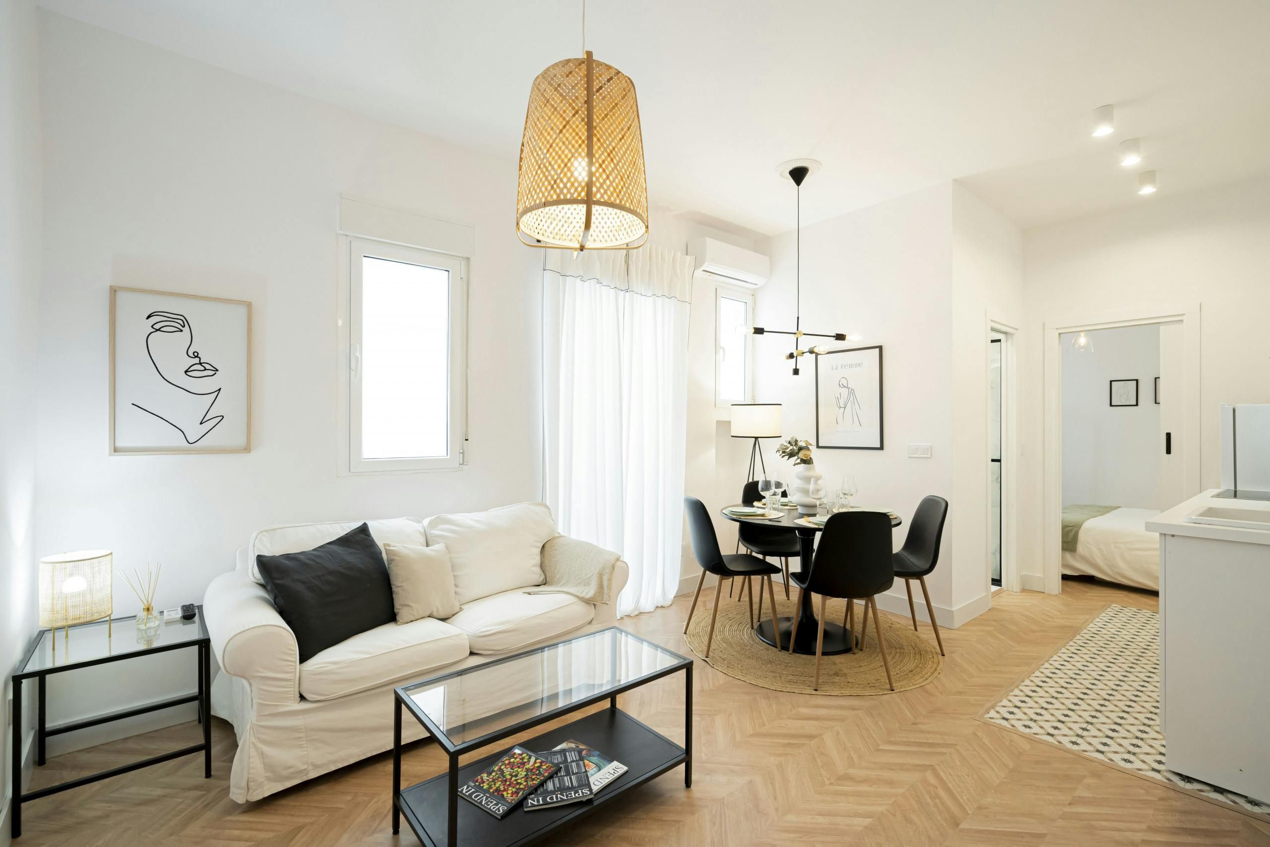 This cosy, stylish apartment is a superb base for two in Madrid. It’s in the popular Delicias neighbourhood, right in the heart of Madrid. You need only walk ten minutes to reach Plaza Major and twelve minutes to Puerta del Sol. You can also easily reach the metro, so seeing further-afield sights is as easy as can be. This well-connected neighbourhood is full of bars, shops and restaurants, too, making it a convenient base for your stay – though you might want to pack earplugs.