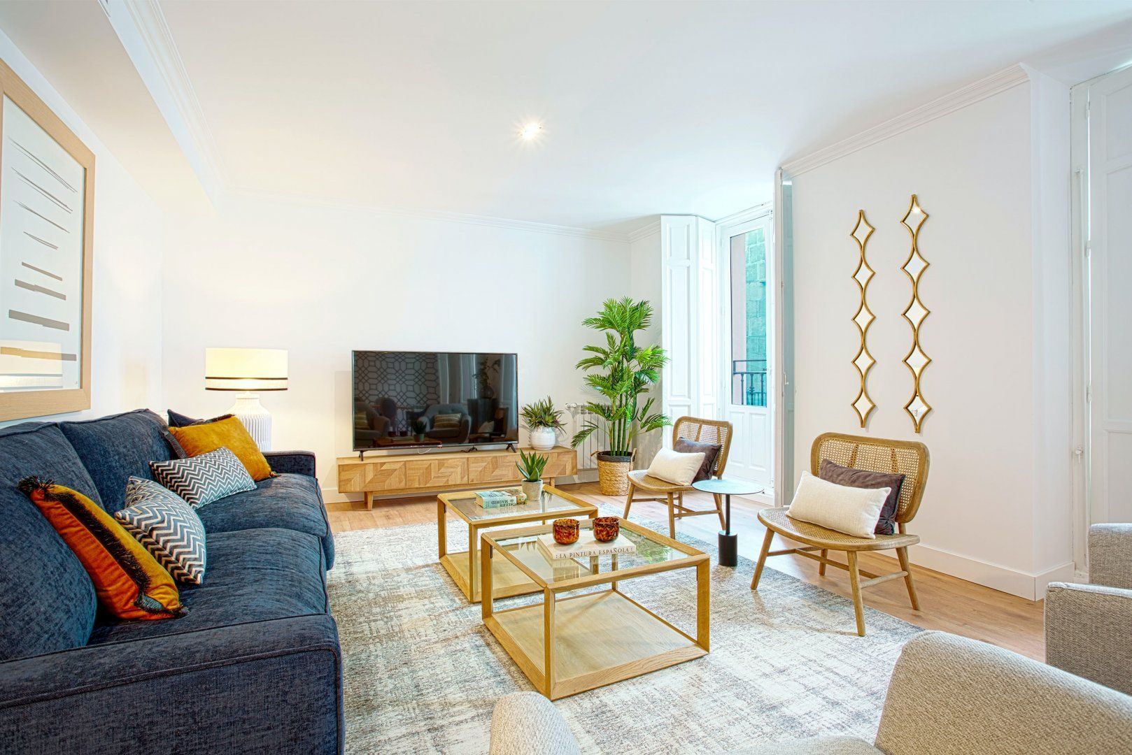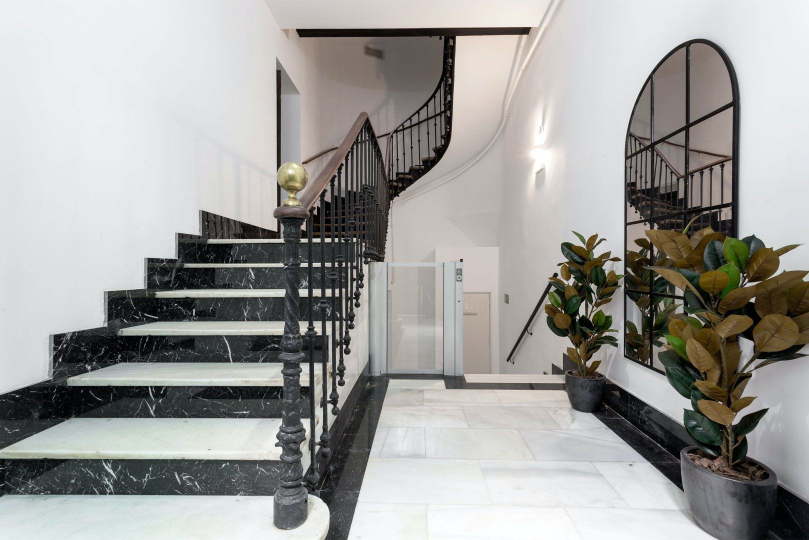 Situated in Madrazo, just a five-minute stroll from the bustling shop-lined avenue of Gran Vía and its majestic Metropolis Building, this home's location alone is enough reason for us to praise it to the skies. It's right at the heart of the action, though, tucked away on a side street and perched on the third floor, feels delightfully peaceful. Here, you're within walking distance of all the main sights, including El Retiro Park and the Plaza Mayor, both twelve minutes from your doorstep on foot.