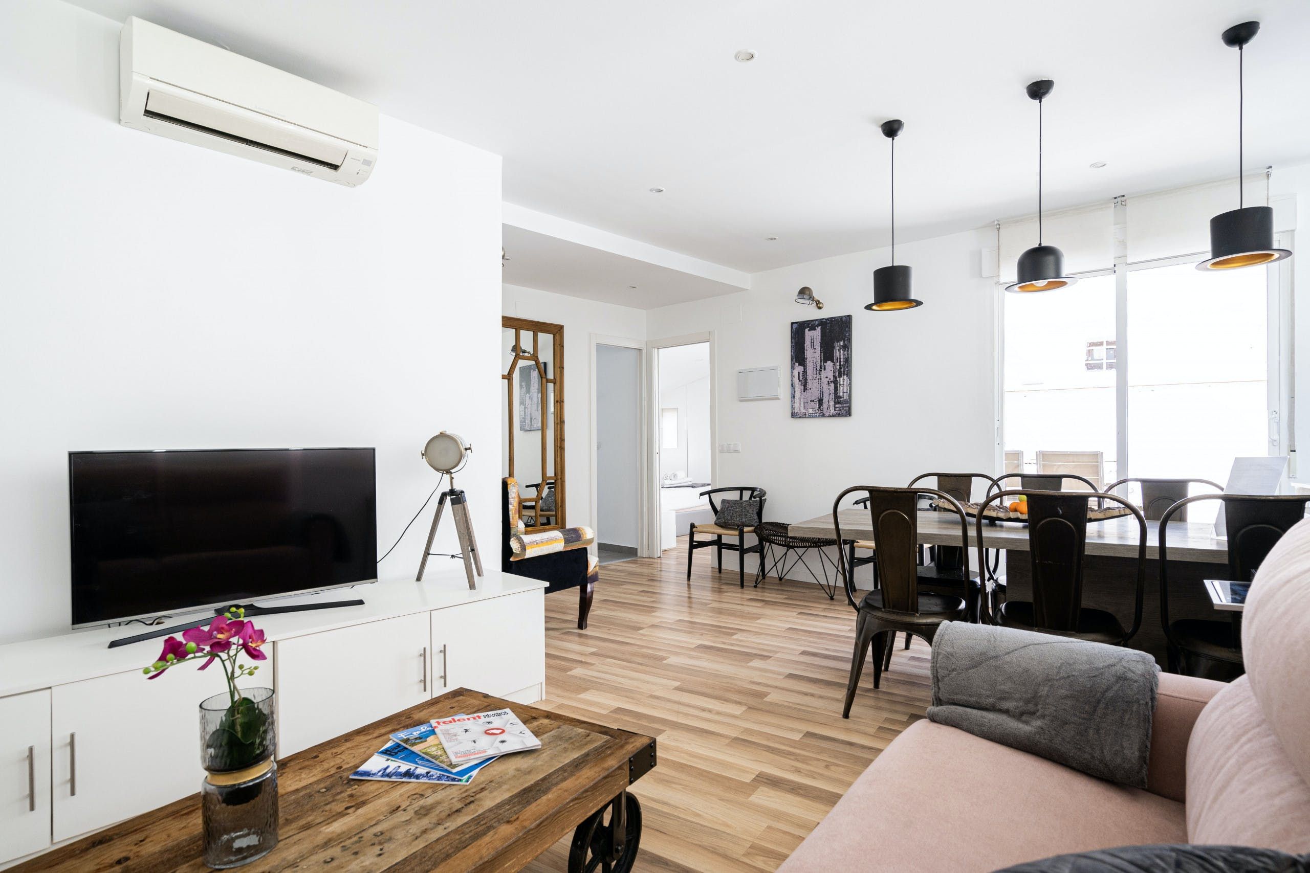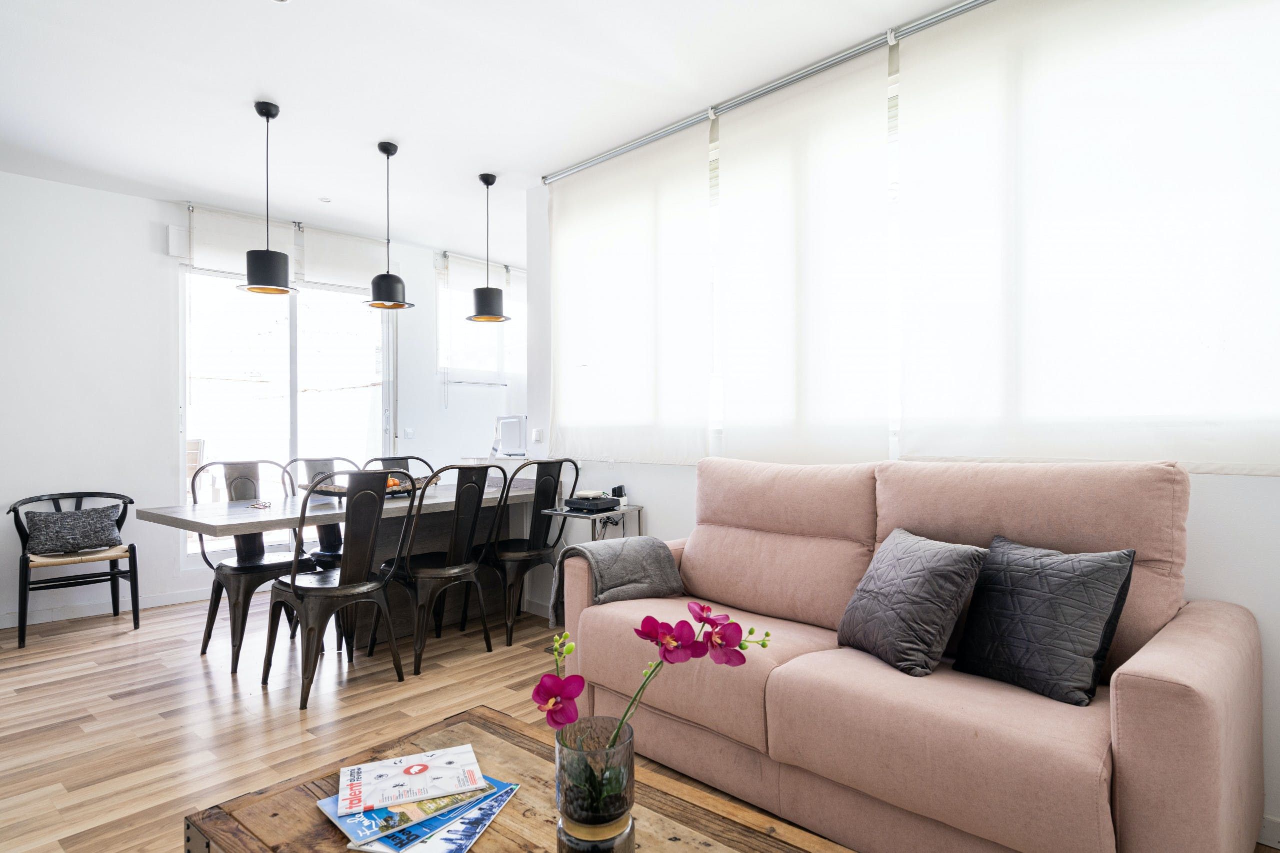 Home truths: *If you're travelling for work, you won't find a dedicated desk here. However, the dining table doubles up as a laptop-friendly workspace. *Parking in Madrid can be tricky, so we recommend sticking to easily accessible public transport where possible. *If you need to pick up provisions during your stay, there’s a small supermarket a five-minute walk away. *Given the home's central spot, expect to hear some street noise throughout your stay. *The terrace is a little dated. We think it could use a refresh. *The bedroom curtains here don't fully block out the sunlight. If you're hoping to enjoy a lie-in, you might want to pack an eye mask.