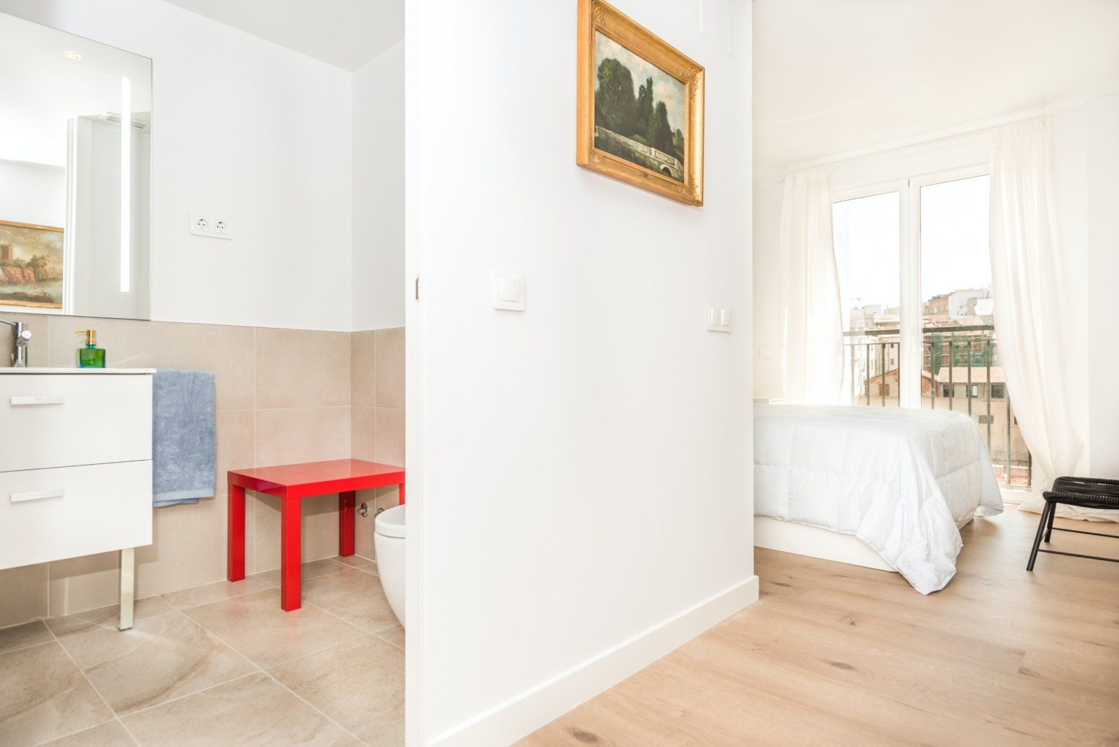 The bedroom, meanwhile, is a pared-back space offering rooftop views over your Malasaña neighbourhood from its Juliet balcony and a comfortable bed to retreat to at the end of the night. Factor in the bathroom’s rainfall shower – sure to get any day off on the right foot – and you've got everything you need for a blissful city stay.