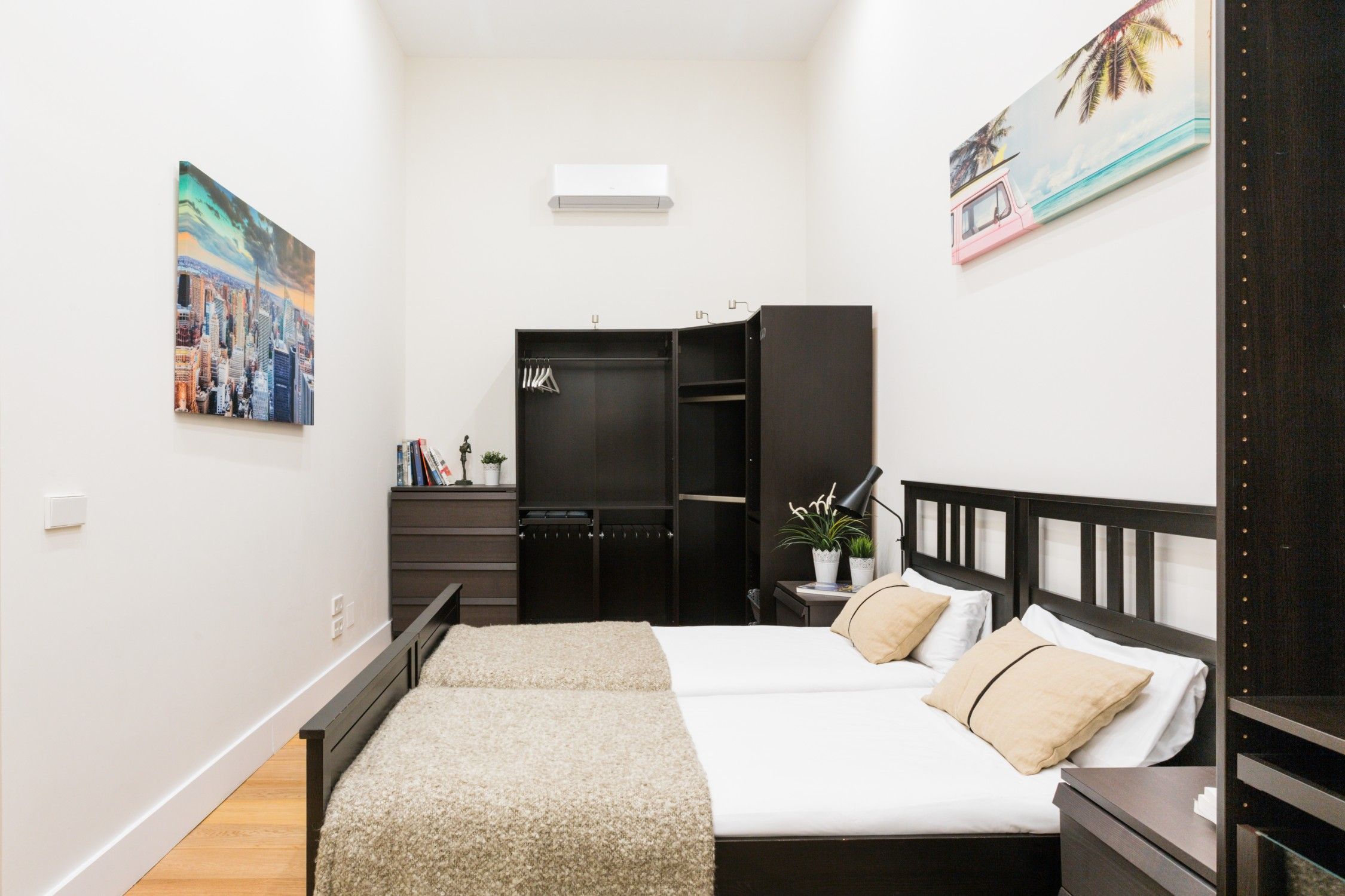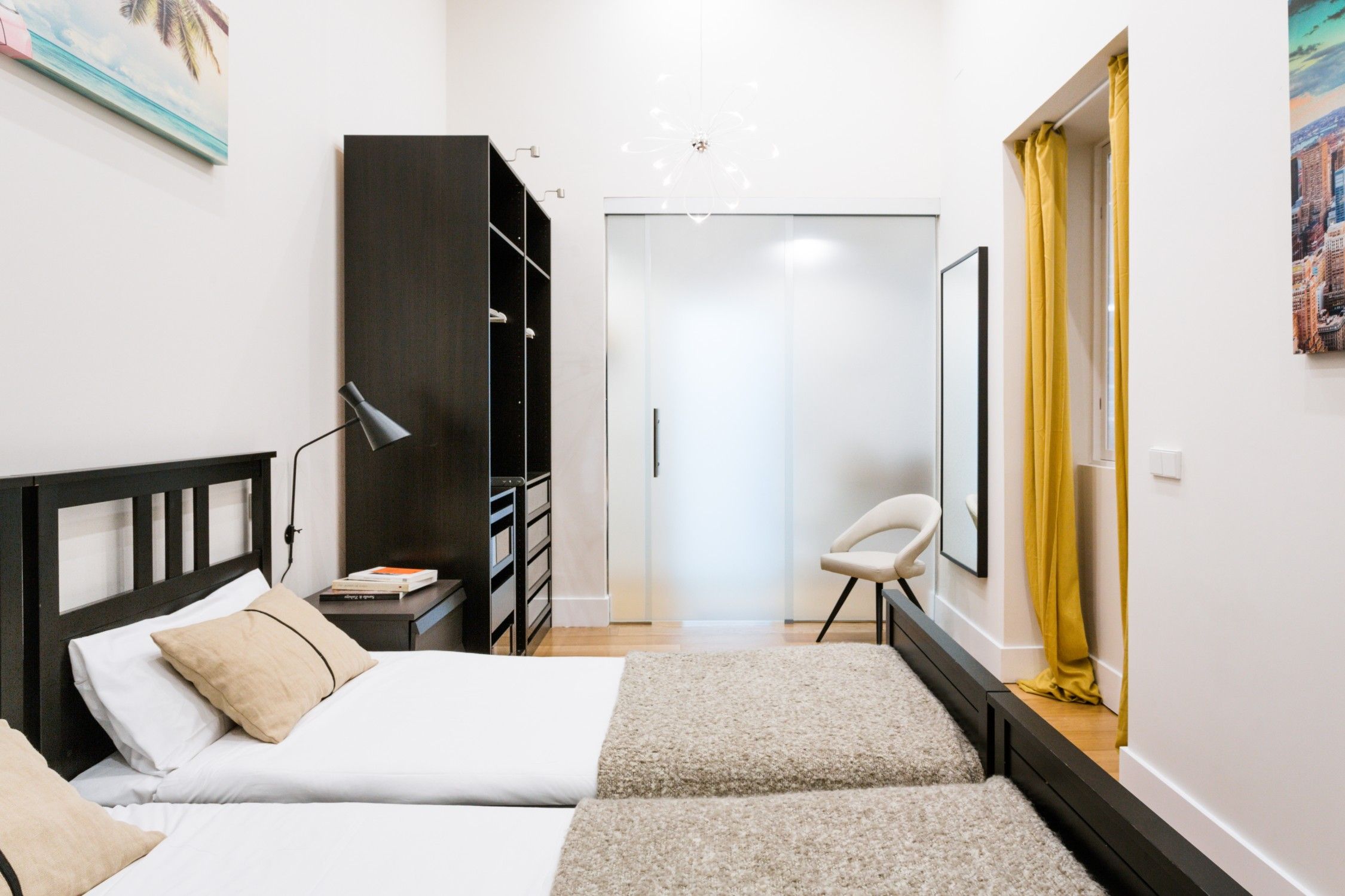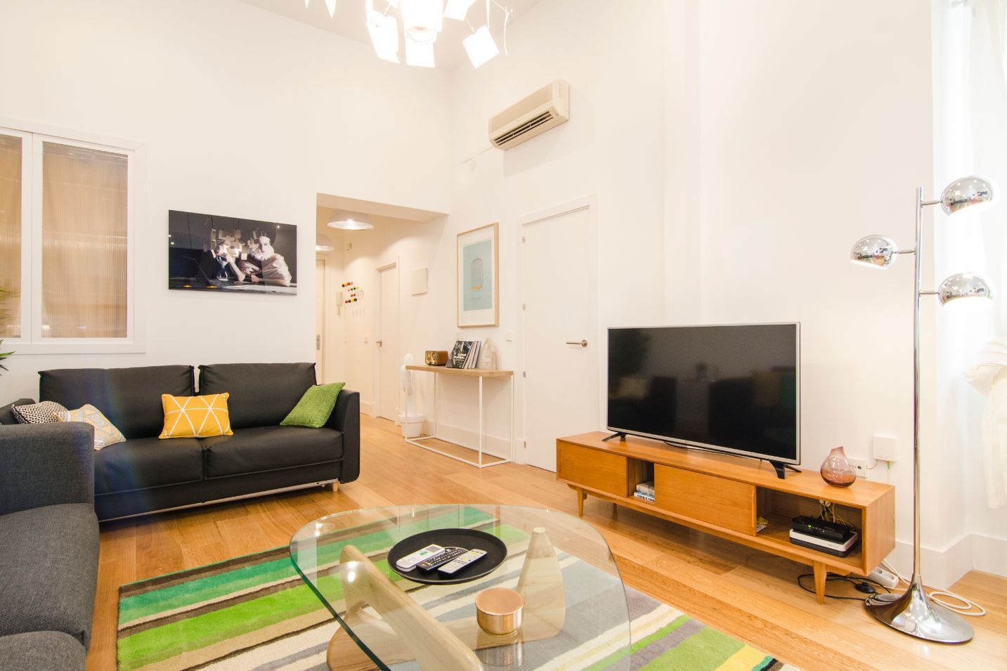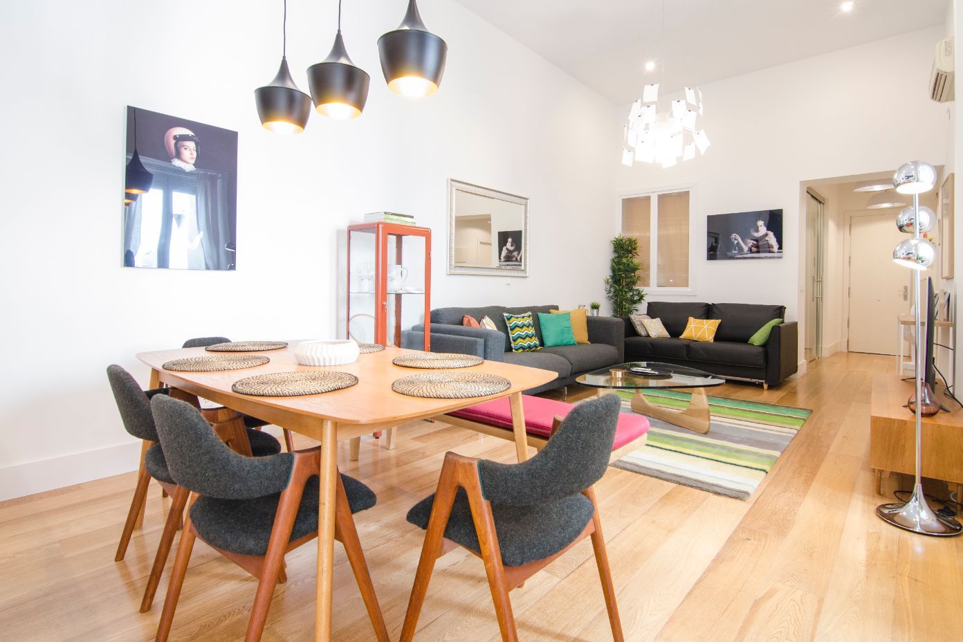 Designed with precision and flair, this cheerful apartment sits in the heart of the city. Mosaic flooring, contemporary artwork and urban-chic furniture make this home a thoroughly attractive affair. It’s no wonder really that the interiors have graced the cover of design magazines. Everywhere you look there is modernity, coolness and space. After a day exploring Madrid’s sights and attractions kick off your shoes and relax on one of the soft sofas or freshen up in the gorgeously tiled shower. The whitewashed walls and swathes of natural light have a soothing effect and despite the central location, inside is wonderfully quiet. You’ll soon be feeling suitably relaxed. If you’re in the mood to cook, head to the sleek kitchen. Happily, it overlooks the lounge so you can be part of the conversation while you rustle up a meal. Better yet, take the lift to ground level and make the two-minute walk to Plaza Mayor where a plethora of lively bars, restaurants and cafes await.