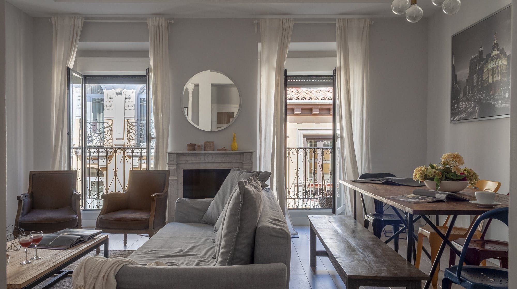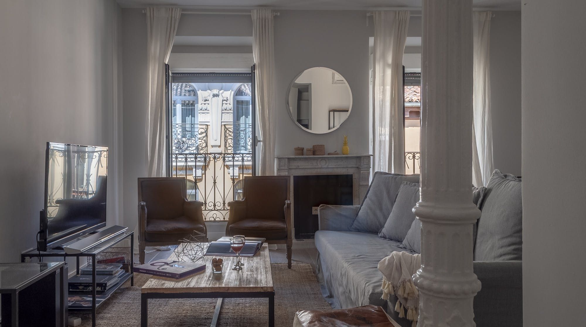 This is a big and cleverly laid-out home that impressed us with how quiet it was – in spite of the fact that it's in the strictest centre of Madrid. Both Puerta del Sol and the Prado are within walking distance, setting you up for great sightseeing walks. Corinthian gives the impression of old-timey grandeur. It's not a scratch-free home, but one that feels lived in and furnished with a personality. The high ceiling and use of wood in almost every room give it a warm and welcoming vibe.