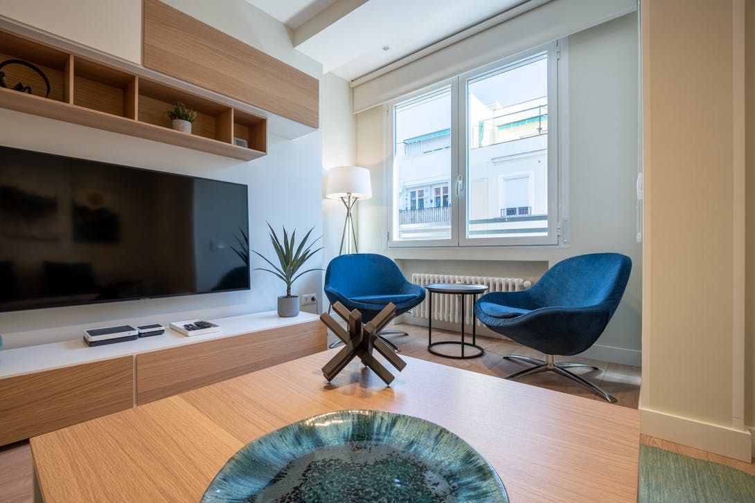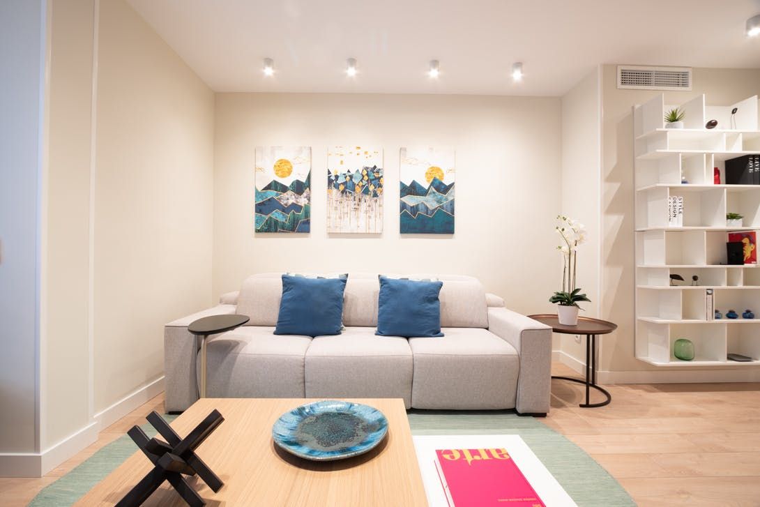 Exclusively located in the Barrio de Salamanca Lista. A region where you can enjoy the elegance and cultural significance of the buildings. Moments away from the hustle and bustle, the apartment itself is engulfed in serenity, with blue, grey, and cream dominating, flawlessly merging modern with stylish to achieve the minimalist vibe. The light shines through the living room window, giving you a pleasant sensation from the moment you wake up, ready for the day to take you to the wonders of Madrid.