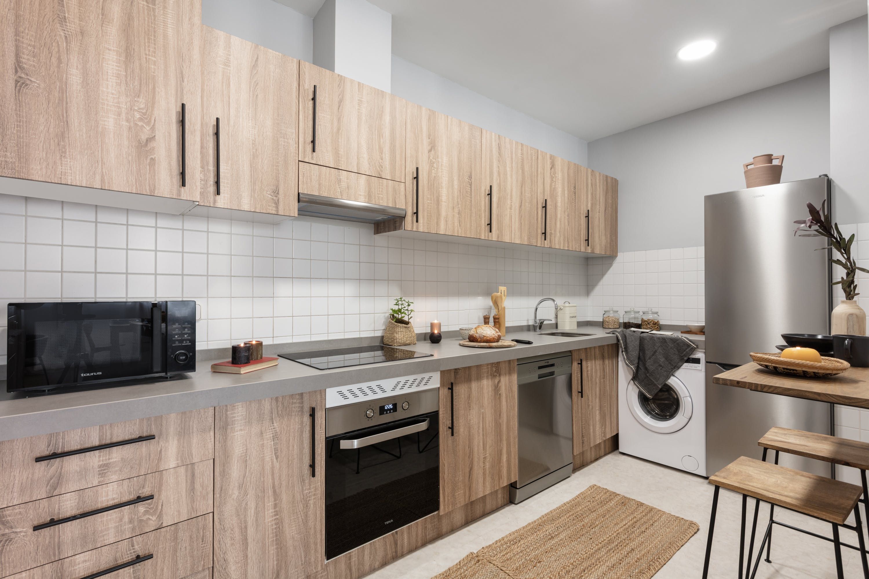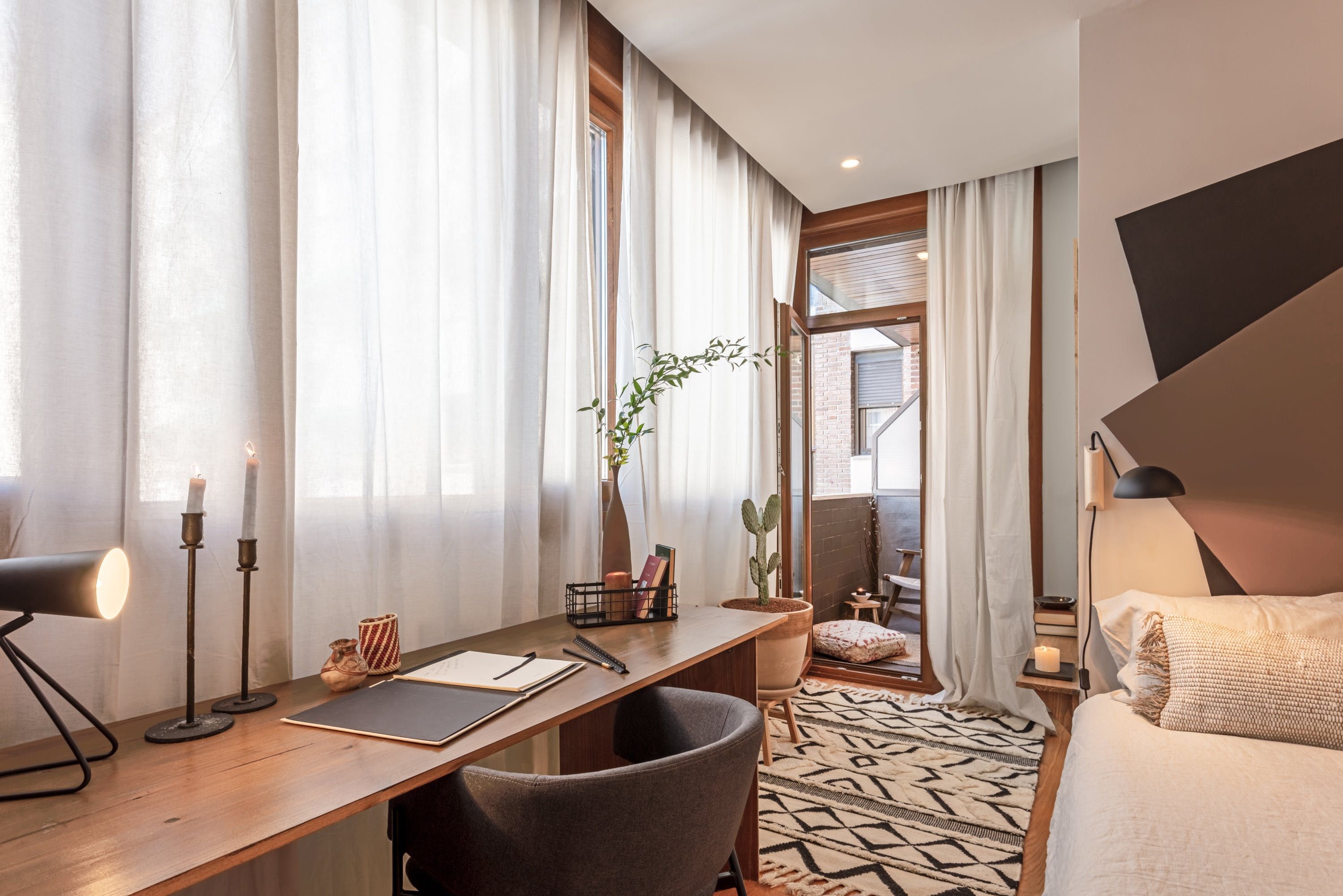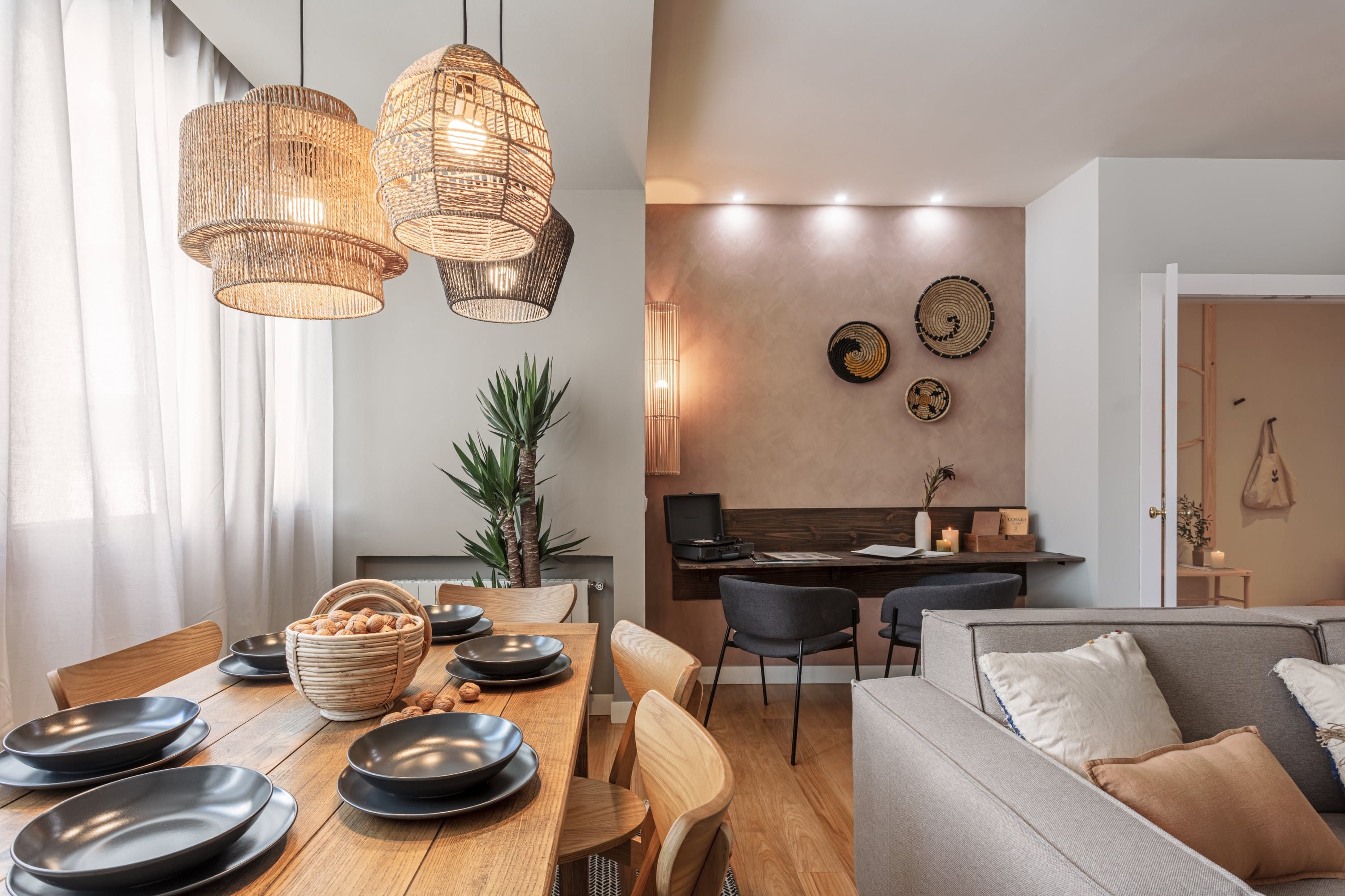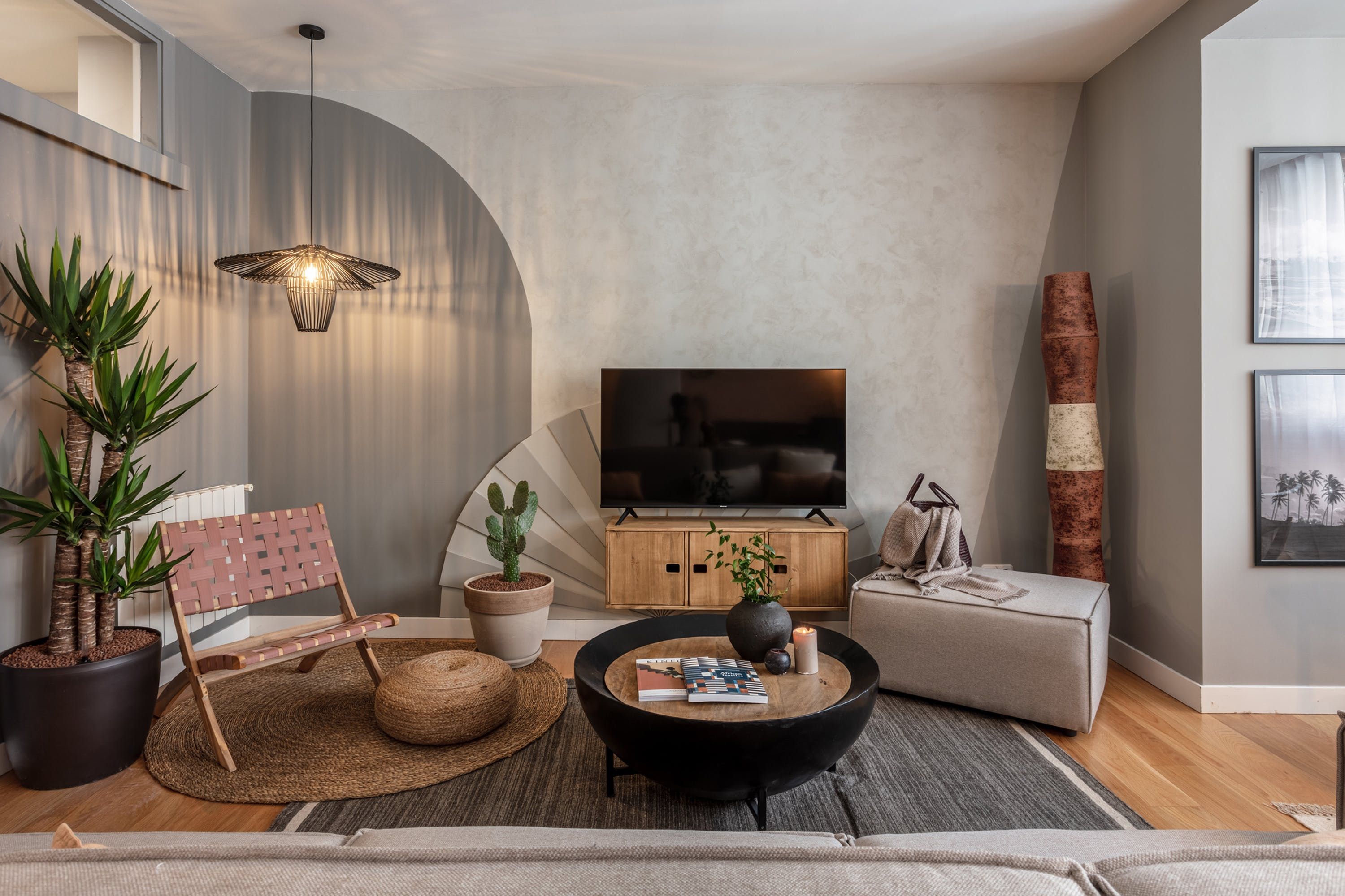 Taking inspiration from the Sahara desert, this design-led apartment is all warm tones and natural textures. The living space is the heart of the home with a plump sofa for lounging with a glass of Rioja, a dining table for leisurely tapas lunches and a handy desk for those who need to work remotely.