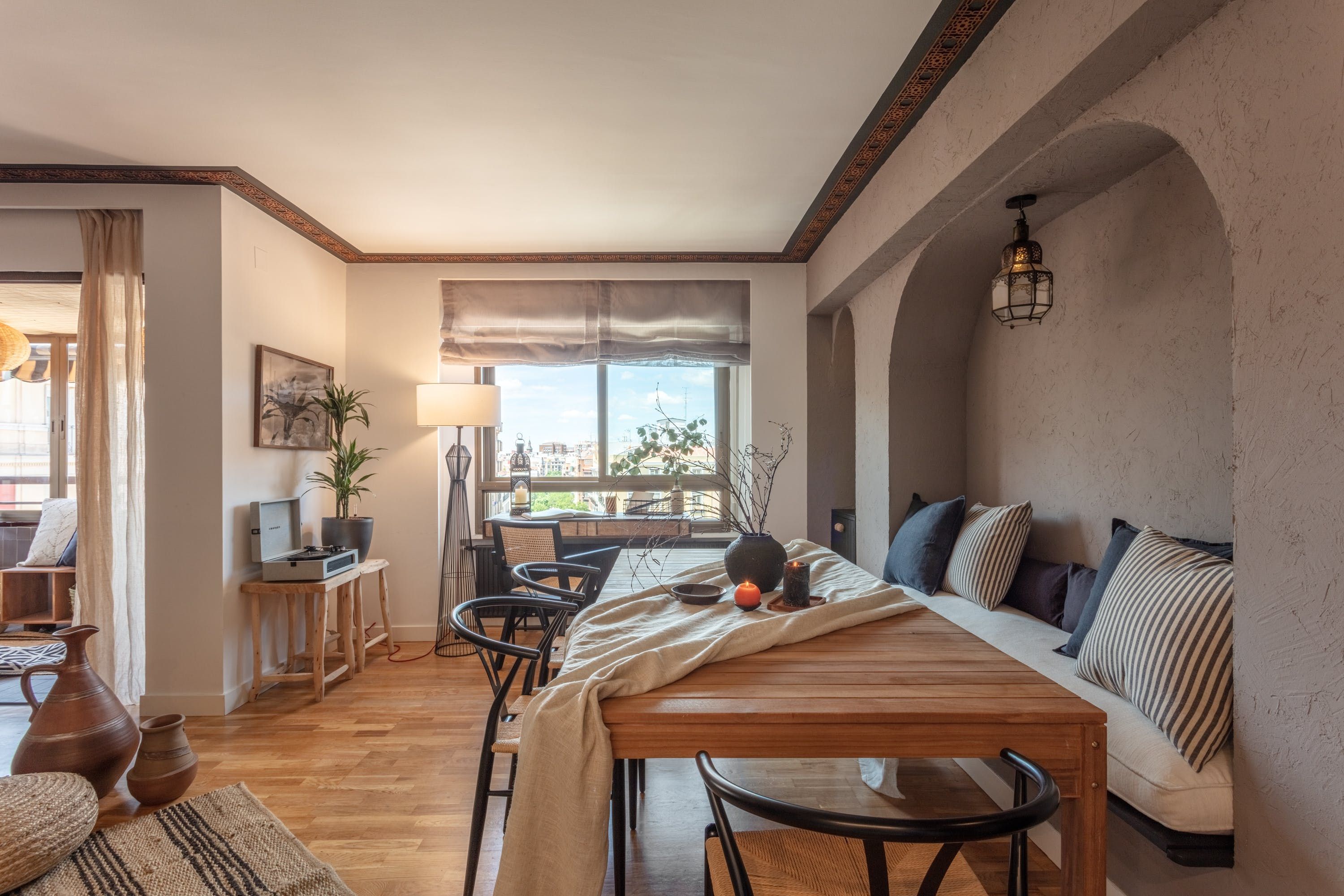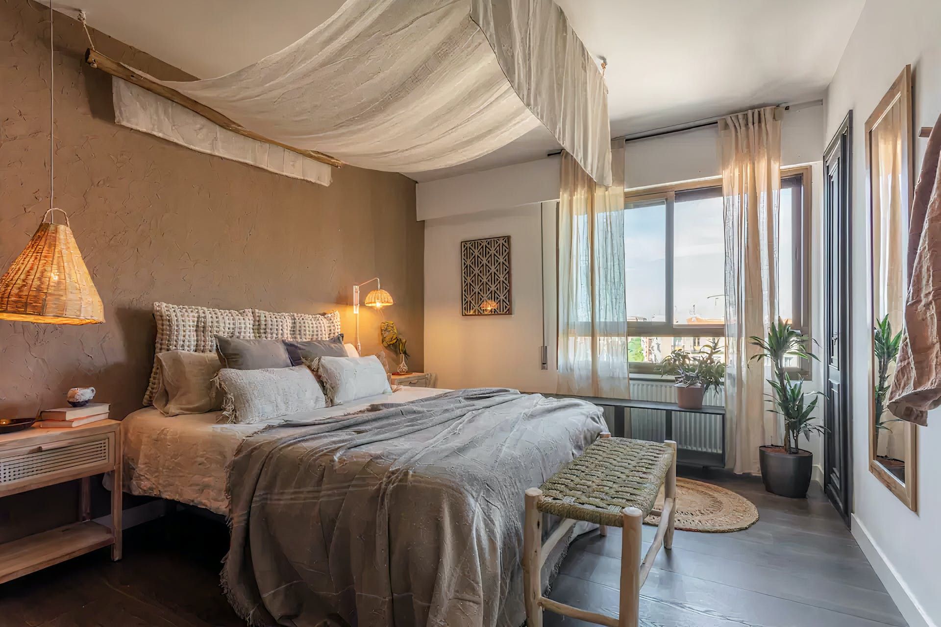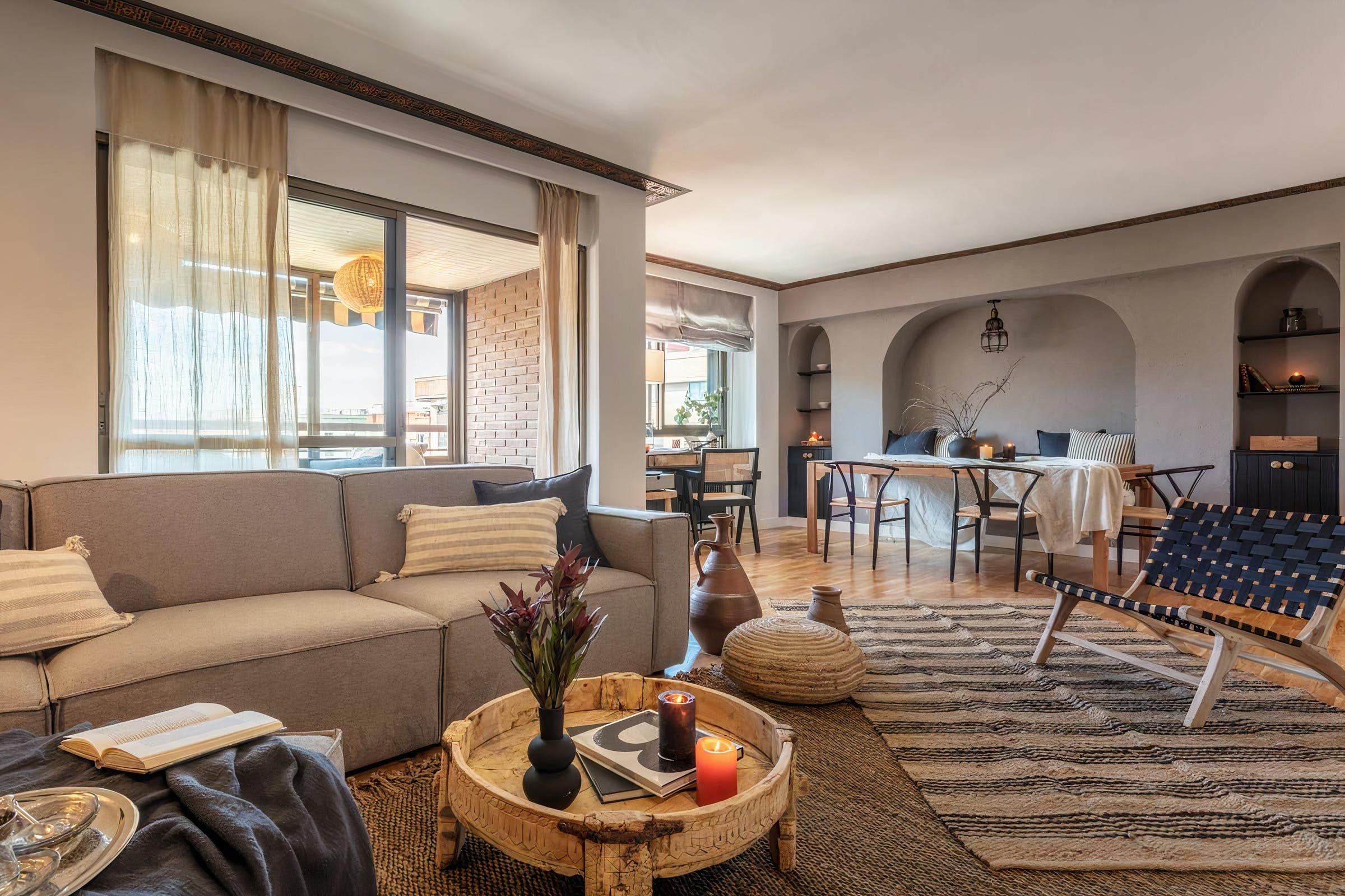 Blending Saharan tones with Madrilenian furnishings, this artfully-designed apartment in the heart of the quirky Almargo area is perfectly suited for those after a warm and welcoming city pad. Inside, a neutral, calming colour palette meets rattan decor to keeps things cosy, while the open-plan living space and private terrace creates a bright and airy place to hang out with guests.