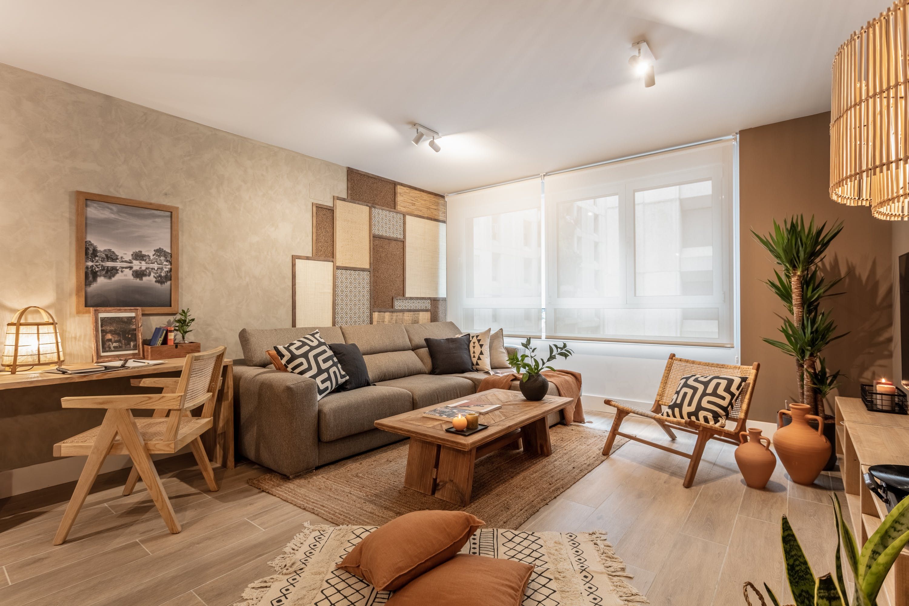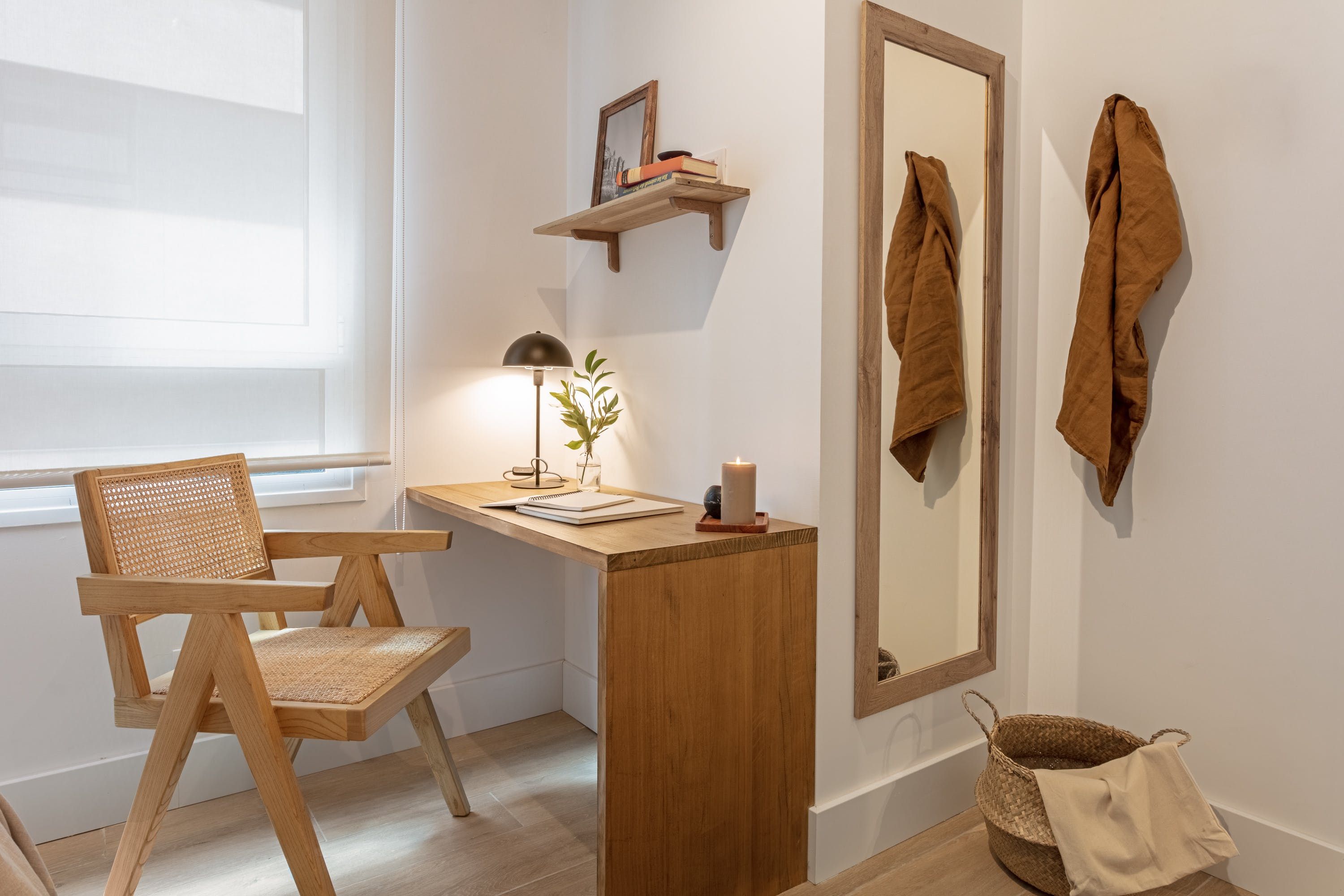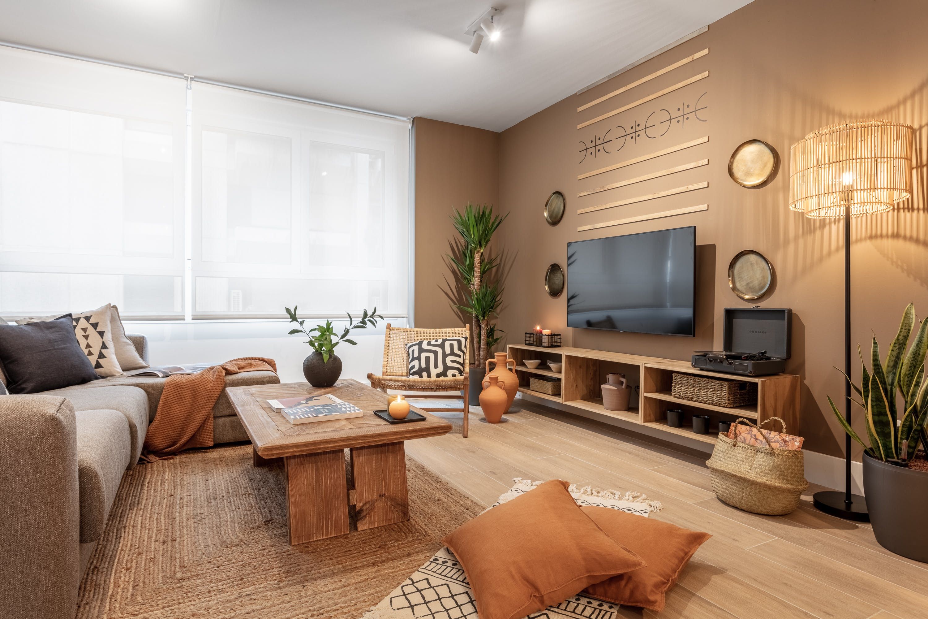 Combine old-world Saharan tradition with Madrilenian modernity and you’ll get this impeccably styled apartment in the heart of the vibrant Chamberí district. Inside, warm neutrals, natural textures and waxy leaf houseplants create a serene environment that’s a pleasure to relax or work in – there’s a dedicated desk for those who are visiting on business.
