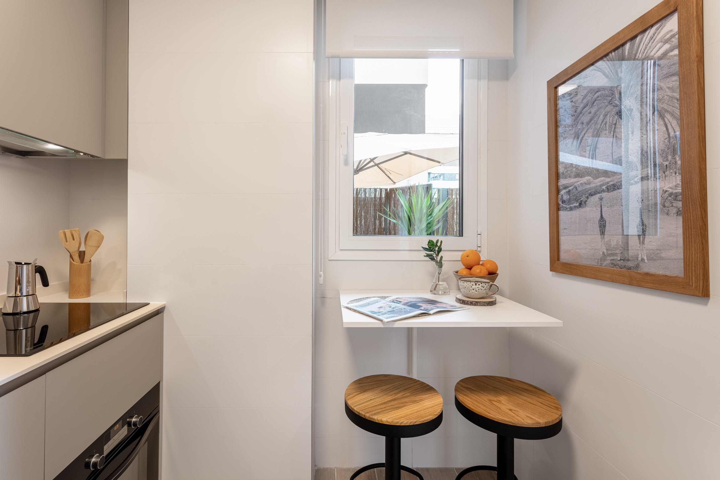 Days begin with a coffee on the private terrace before taking advantage of the building’s facilities – you’ve access to an outdoor pool, clubhouse, gym, community garden and a playground for little ones. After a bite to eat rustled up in your fully-equipped kitchen, take to the elegant streets that surround your home. Pore over the exhibits in the Sorolla Museum and Art Gallery, a quick fifteen-minute walk away or jump on the metro and whizz into the city centre for the iconic Plaza Mayor and the lavish Royal Palace. When it’s time to call it a night, head back to your cosy outdoor space for a well-deserved chilled glass of Macabeo