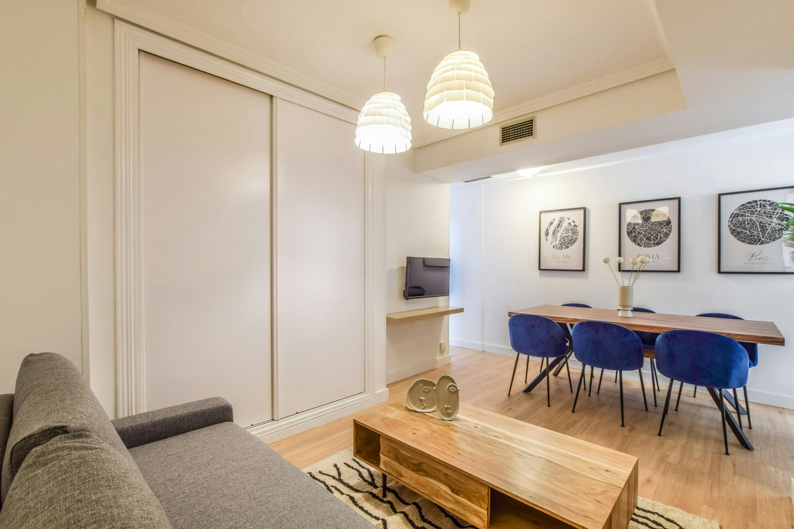 *At full occupancy, two guests will be sleeping on the sofa bed in the living room. *Purpose-built for rentals, this home is not the most soulful or charming space. We think some areas of this home could do with a refresh. In particular, the kitchen looks a little tired. *This home is located within an apartment building, with a shared entrance. Expect to bump into other guests during your stay. You may need to climb some stairs to reach this apartment. *Given the home's central spot, expect to hear some street noise throughout your stay. *Though you won't be able to sit out on the Juliet balcony, it's a nice spot for a glass of wine. *The closest metro station is Lavapiés.