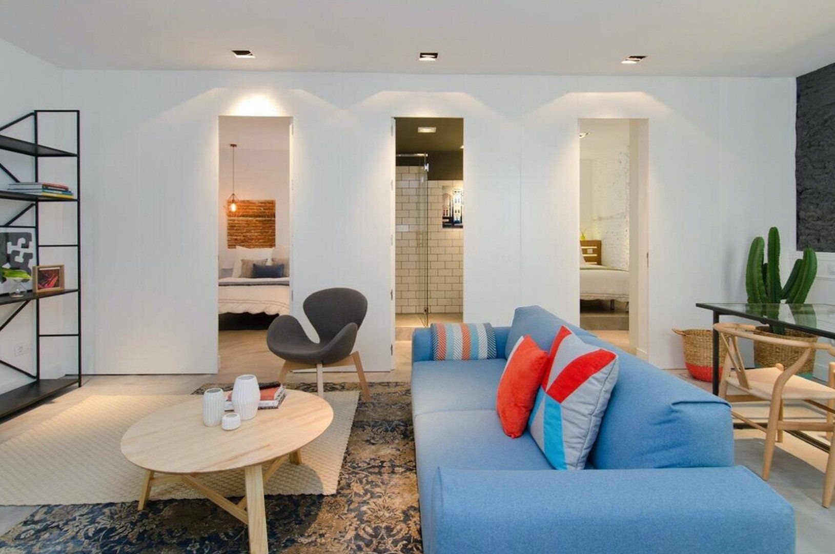 You’ll find this modern apartment in the lively Chueca barrio, surrounded by cosy cafes, no-fuss tapas bars and cosmopolitan restaurants. The bustling Gran Vía, famous for its shopping opportunities, is close by and you’re within walking distance of some of Madrid’s must-visit sights including the Royal Palace, Prado Museum and leafy Retiro Park. If you’re keen to explore further afield, Chueca metro station is just footsteps from your doorstep.