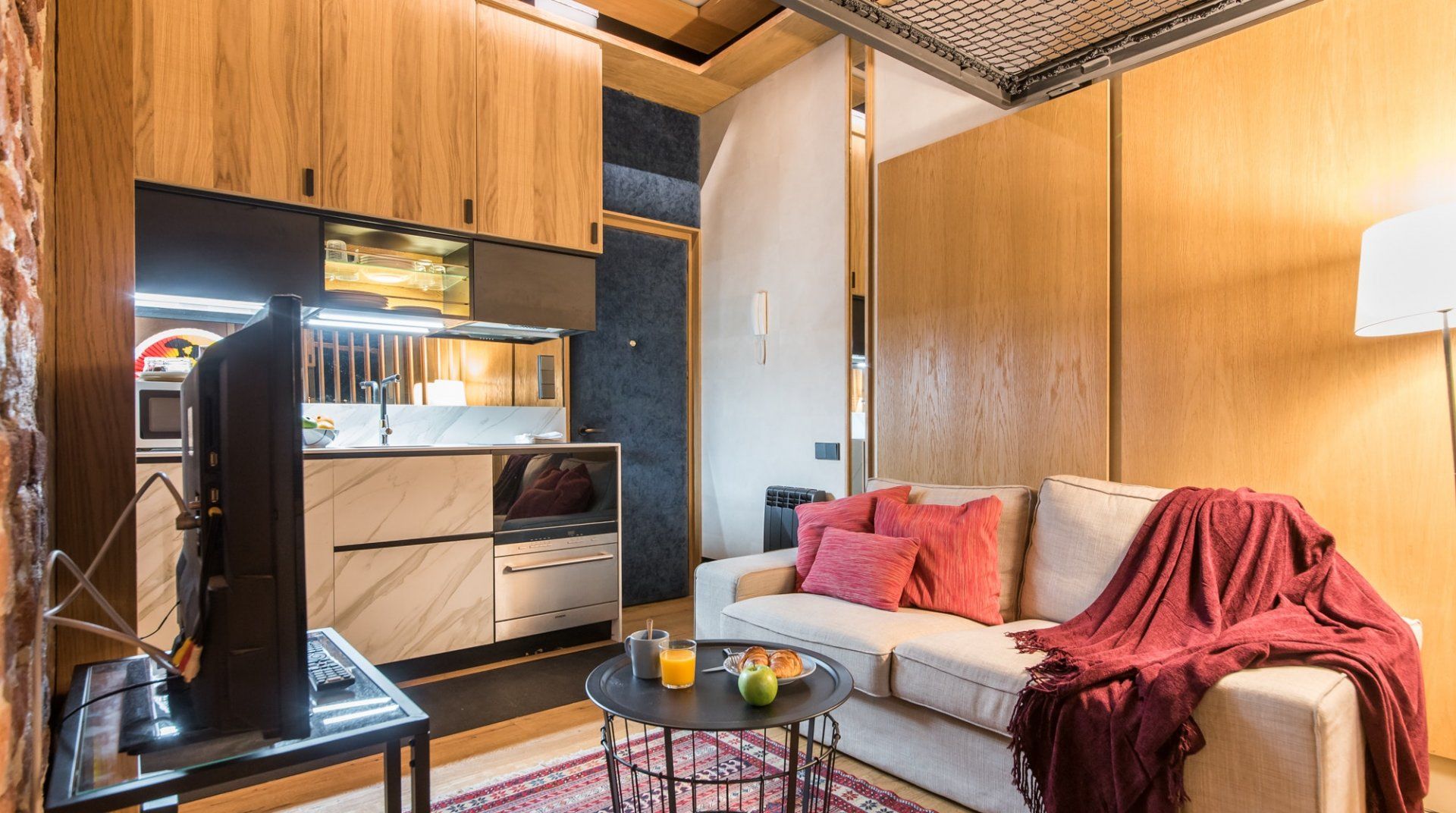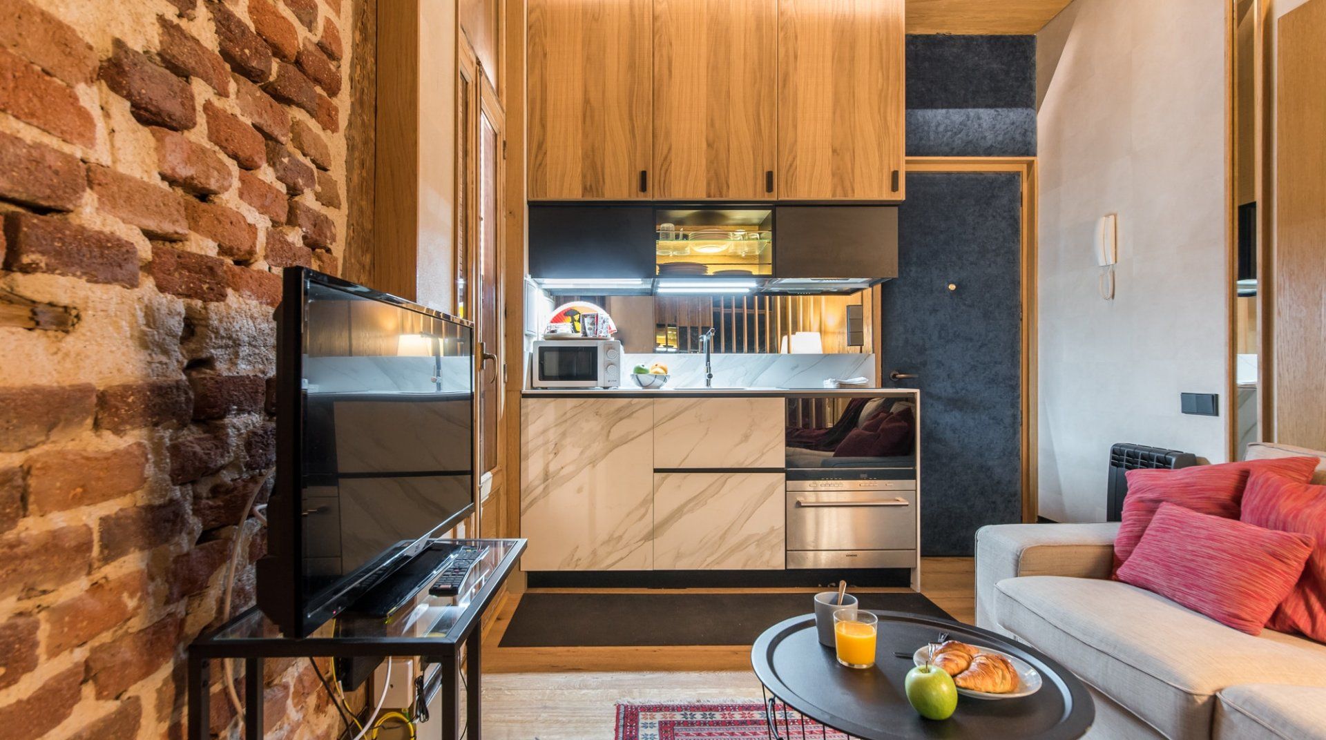 Tucked away in a typical Madrid townhouse in Chamberí, Grottino is a great base to explore the city. The streets surrounding this home are part of a neighbourhood that's just as opulent as Salamanca, yet closer to the old centre – which is great for a first-time visitor. Grottino might not be the brightest home in our collection, but a lot of care has been invested in designing the lighting in this small home, so that it resembles an urban chalet. We particularly liked the brick wall in the bathroom and the chic kitchenette.