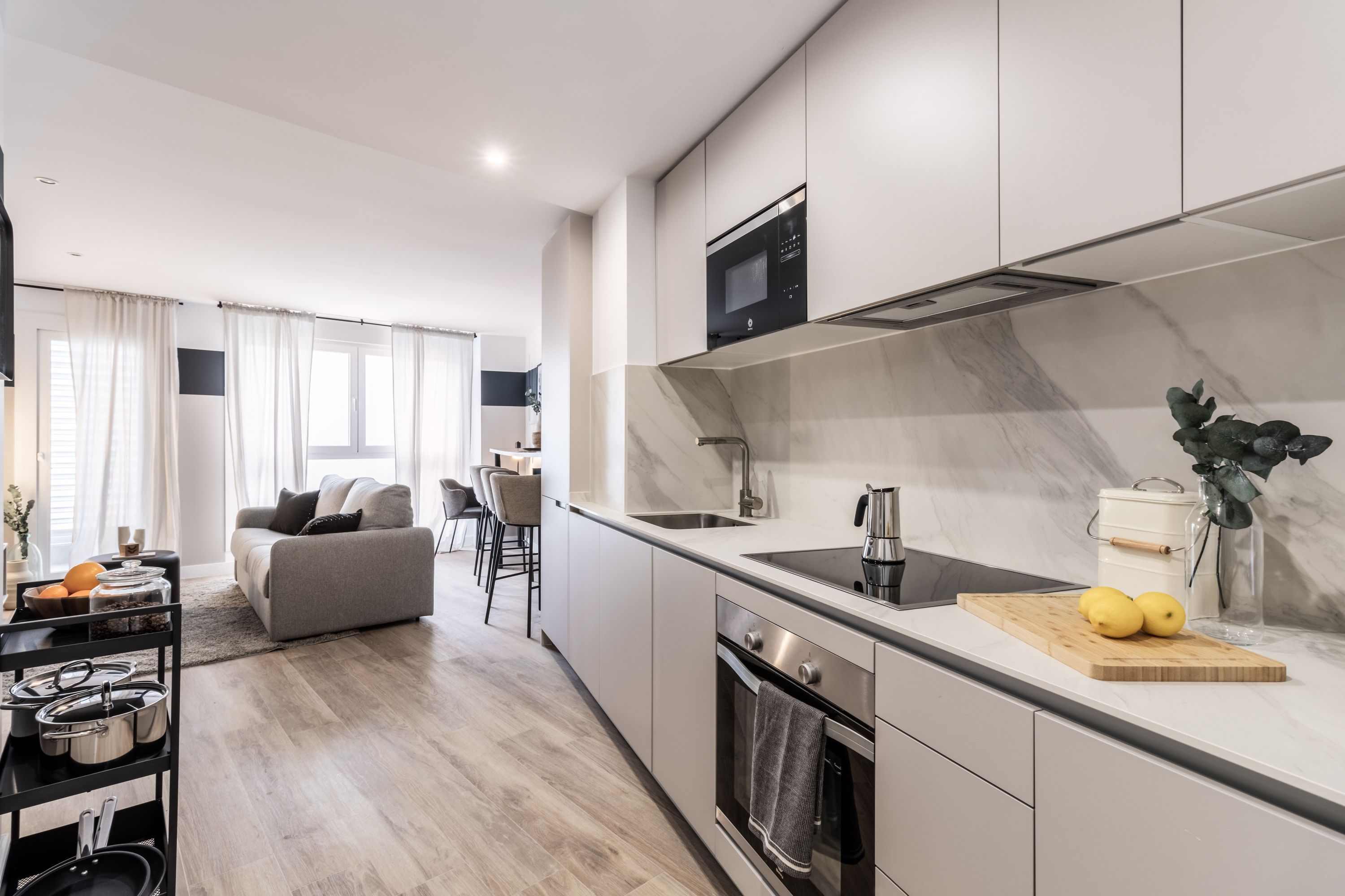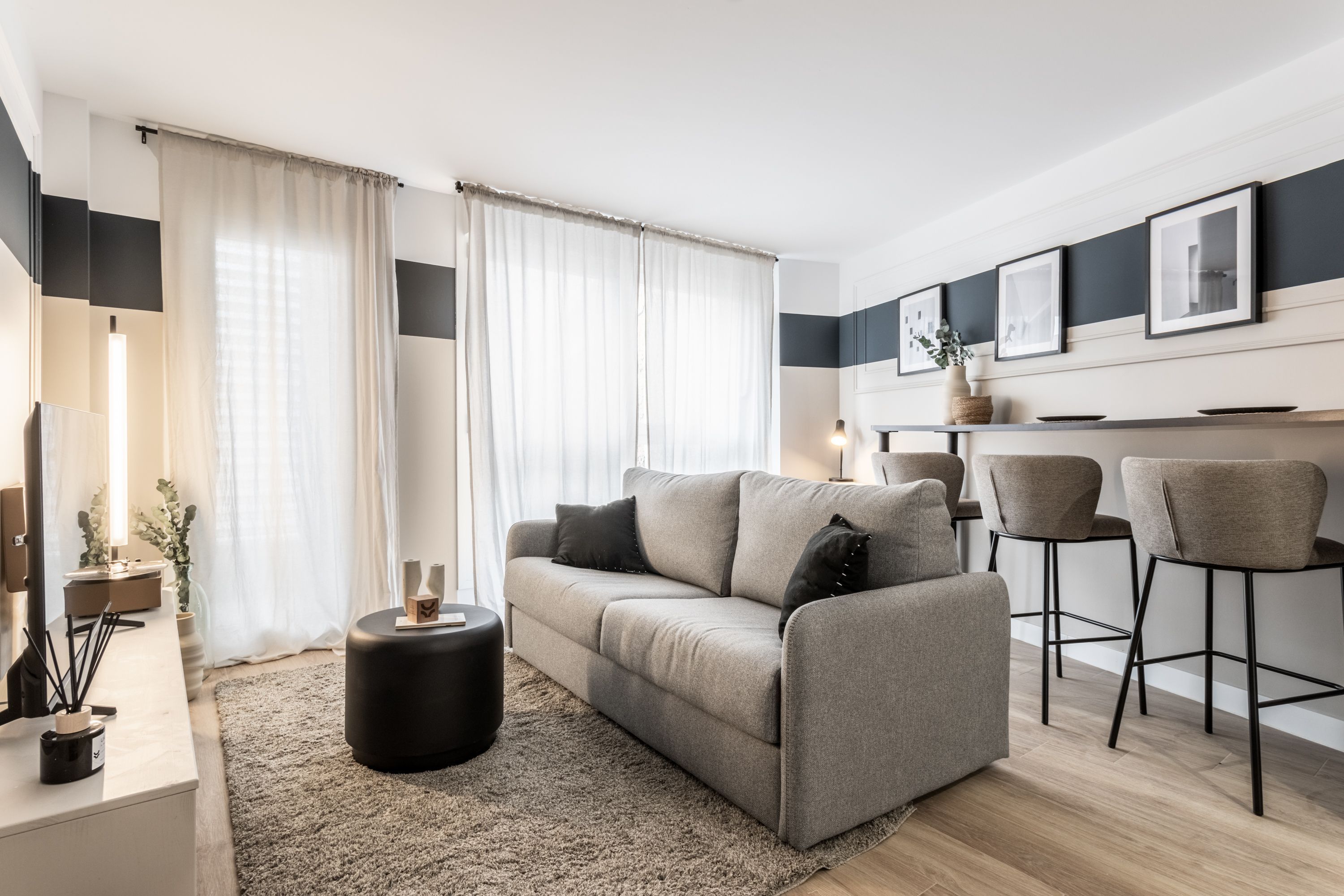 This chic, stylish apartment has everything you might need for a city break. It’s in the colourful district of Tetuàn, which borders exclusive Chamberi, and is a vibrant base in Madrid. The apartment is modern and sleek, with simple decor that makes it a restful place to call home. After busy days spent sightseeing, swim a few laps in the communal swimming pool, then put your feet up with a beer in the comfortable living space. At full occupancy, two guests will sleep on a sofa bed – for more space and privacy, we’d stick to a guest count of two.