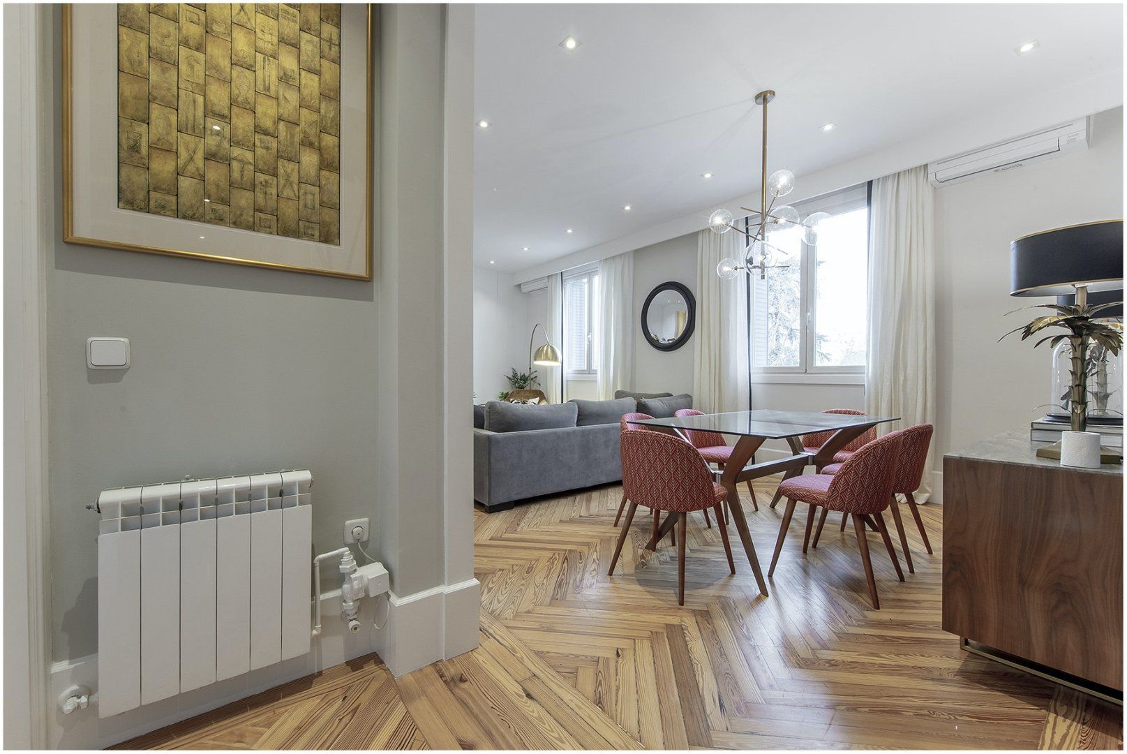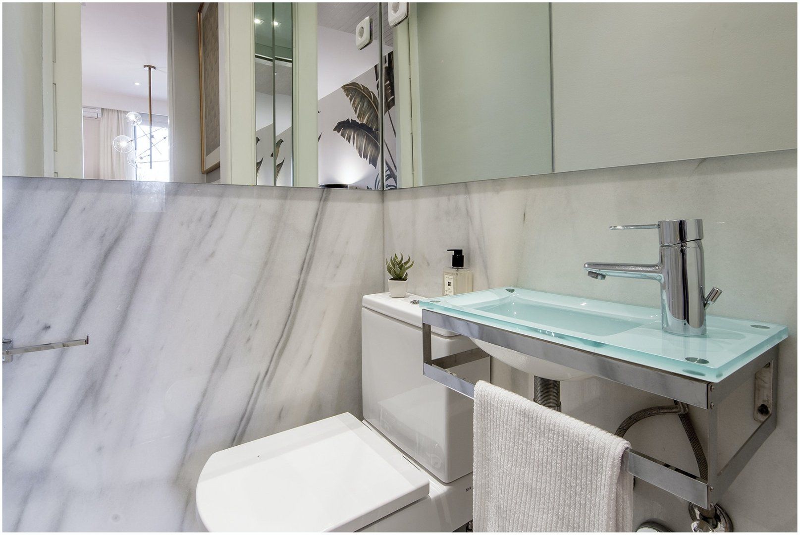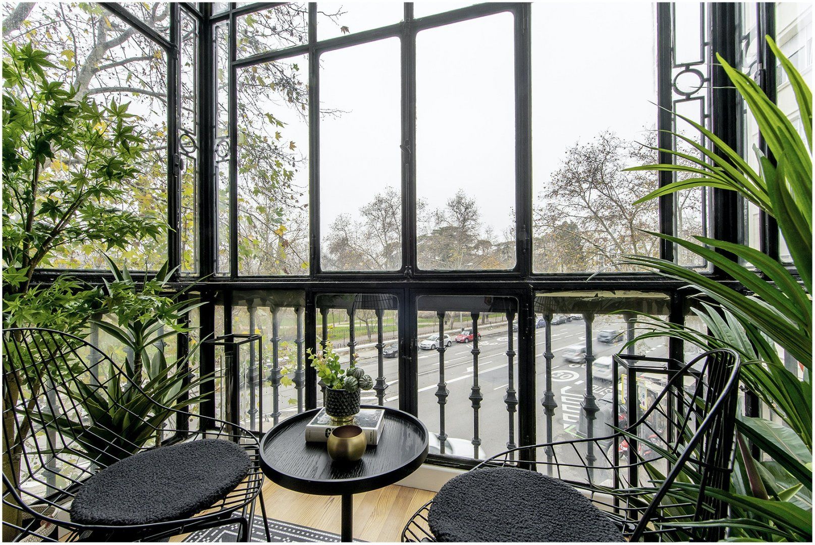 The great thing about living so close to a park is that it can feel like your private garden (albeit one you've generously allowed everybody else to visit). This elegant apartment sits just across the street from El Parque del Buen Retiro, an expansive green space in the heart of Madrid filled with gardens, fountains and galleries — Palacio de Cristal is only fifteen minutes' walk away, for example. It would be fair to say that the design choices were inspired by this proximity to nature, with a tastefully painted tropical motif on the wall of the living area and an enclosed glass balcony off the main bedroom filled with plants. Surprisingly, this isn't the only balcony, with another giving wonderful views of the park — who wouldn't want to wake up to that sight? Back inside, the herringbone parquet flooring, dazzlingly white kitchen and chic statement lighting combine for an interior that exudes contemporary luxury. Staying here will show you why this is one of the most coveted neighbourhoods in the Spanish capital.
