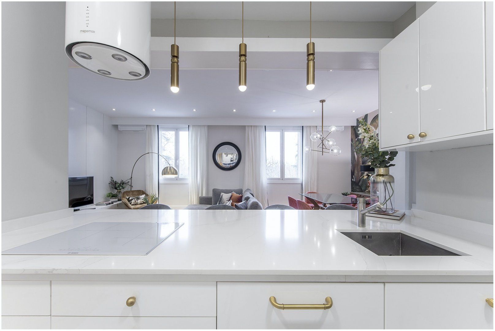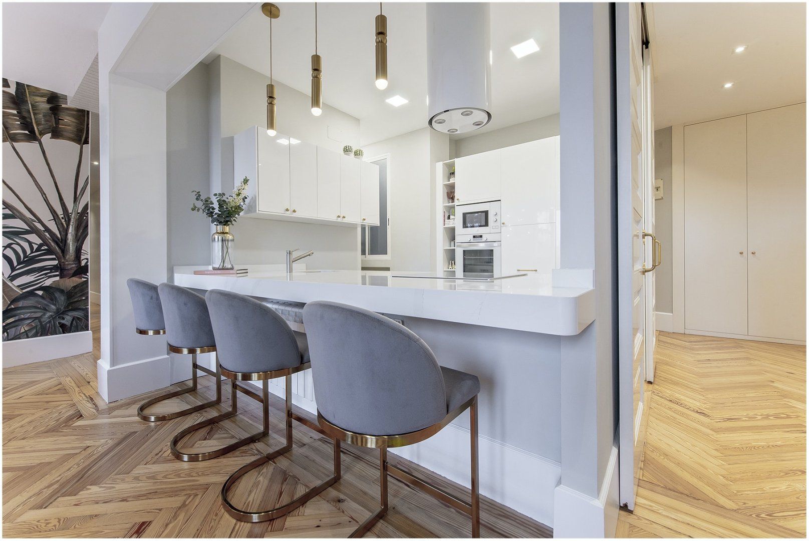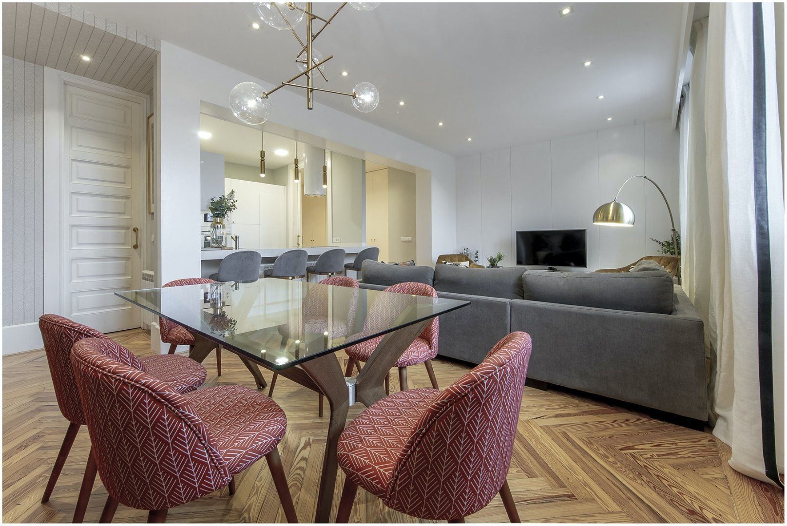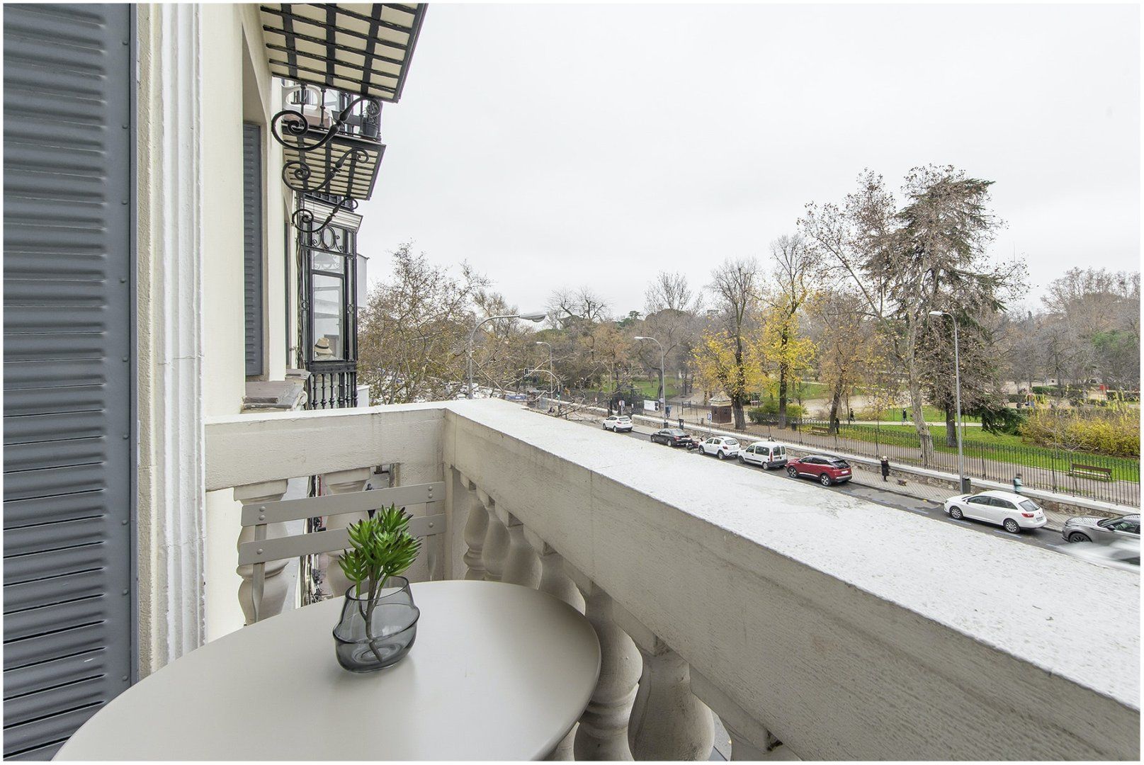 The great thing about living so close to a park is that it can feel like your private garden (albeit one you've generously allowed everybody else to visit). This elegant apartment sits just across the street from El Parque del Buen Retiro, an expansive green space in the heart of Madrid filled with gardens, fountains and galleries — Palacio de Cristal is only fifteen minutes' walk away, for example. It would be fair to say that the design choices were inspired by this proximity to nature, with a tastefully painted tropical motif on the wall of the living area and an enclosed glass balcony off the main bedroom filled with plants. Surprisingly, this isn't the only balcony, with another giving wonderful views of the park — who wouldn't want to wake up to that sight? Back inside, the herringbone parquet flooring, dazzlingly white kitchen and chic statement lighting combine for an interior that exudes contemporary luxury. Staying here will show you why this is one of the most coveted neighbourhoods in the Spanish capital.