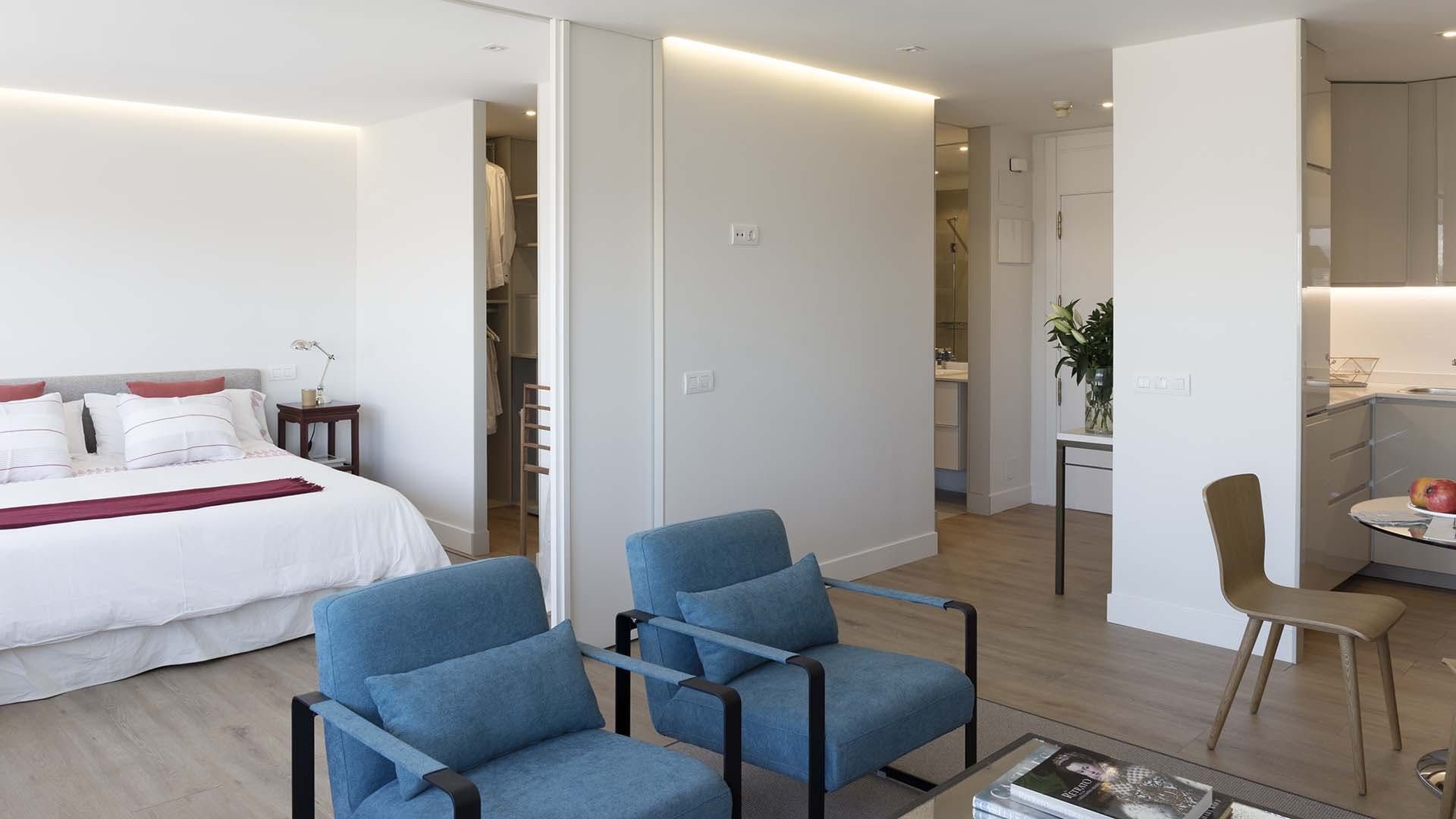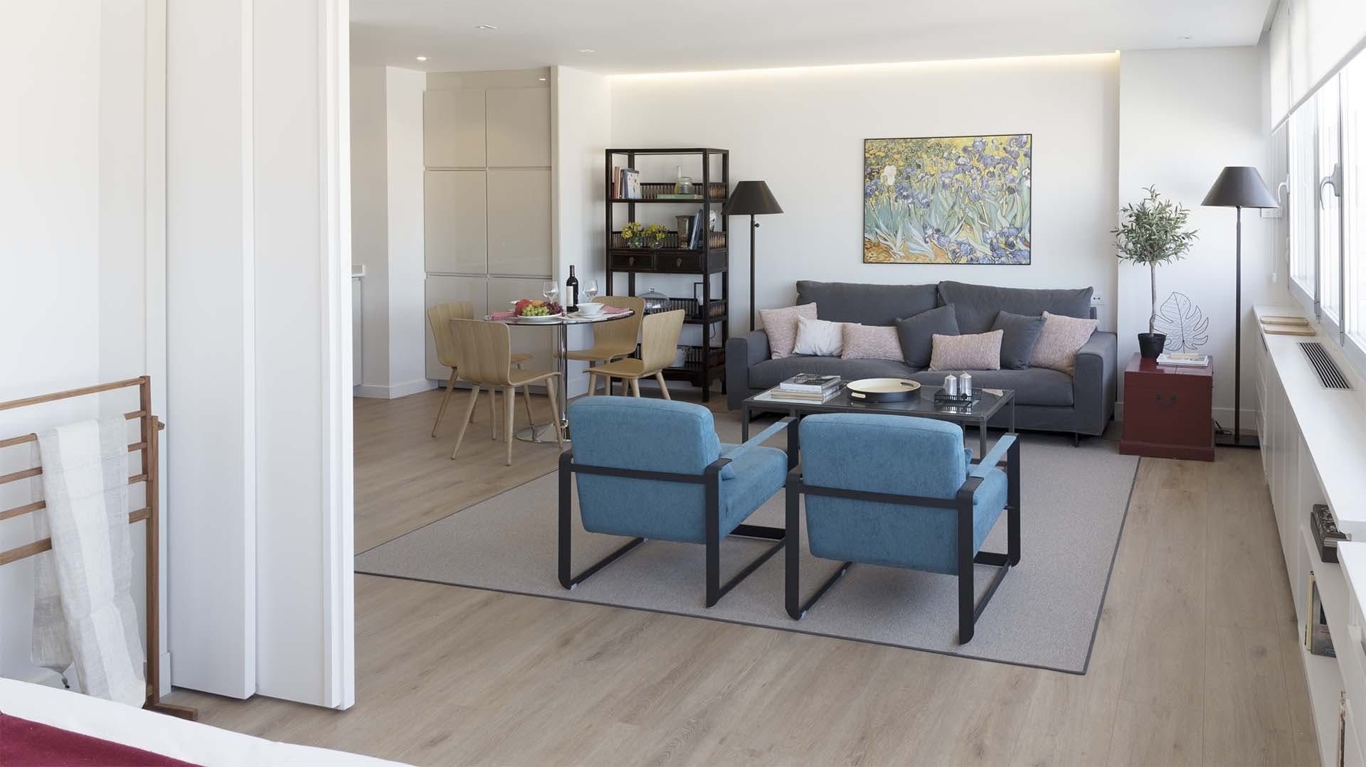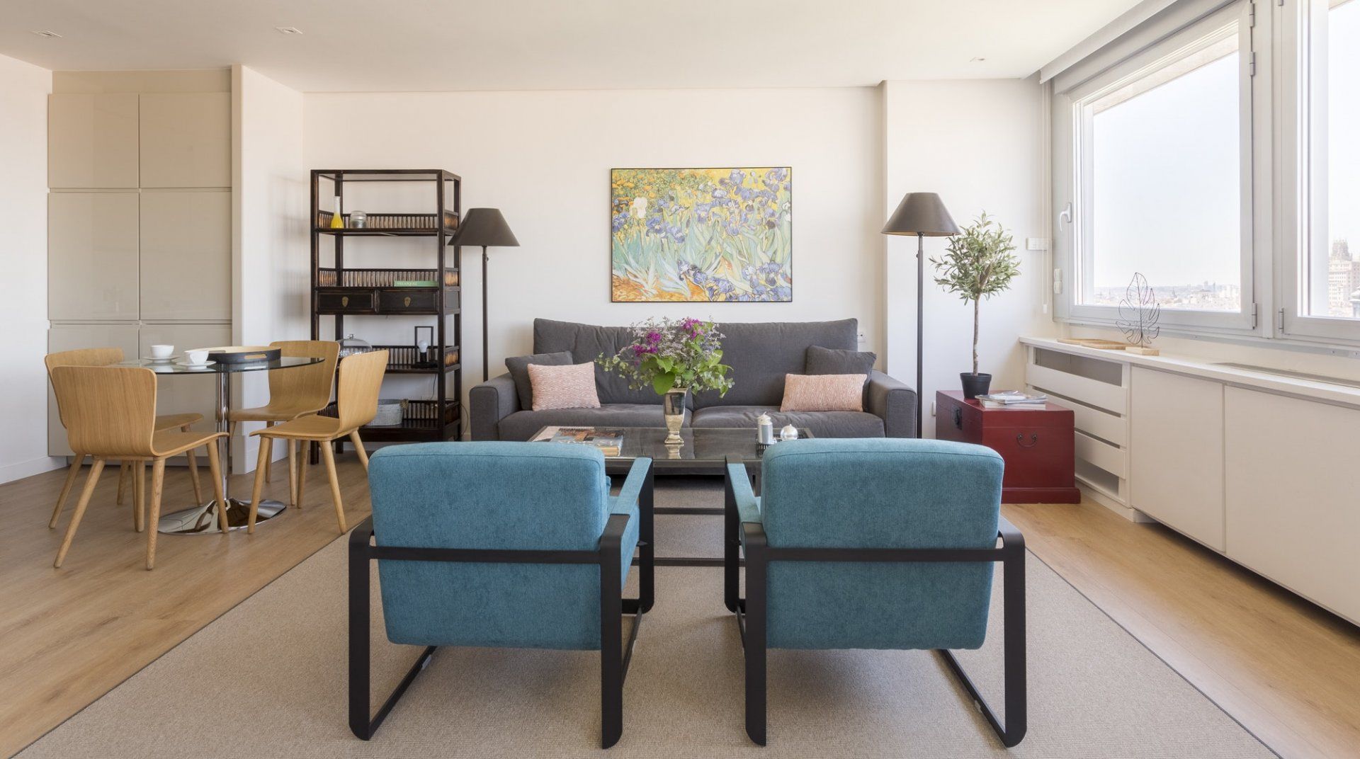 Bright and contemporary, we think this open-plan studio is perfect for a solo traveller or a couple craving a stay in Madrid. With a stylish bathroom, walk-in closet and huge windows that let you wake up with a direct view of the city, the clever layout compartmentalises the space in a way that opens up the room and fills it with light. Relax on the cosy sofa with a glass of Spanish vino and your favourite Netflix show, rustle up some tapas and light bites in the sleek kitchen or snuggle up on the comfortable bed with a book after a long day exploring – whatever you get up to, we know you'll be happy to call this pad home. And speaking of exploring, this locale is right in the heart of the city, with many of the must-see sights a short stroll away. Ritzy Salamanca is ideal for high-end shopping and fine dining (stroll down the Golden Mile or grab a bite at Platea food court, five minutes away), while leafy Parque del Retiro is an excellent spot to bask in the morning sunshine. Museums, restaurants and monuments are all within walking distance, but if your feet need a break, hop on the metro – both Colón and Recoletos stations are right around the corner.