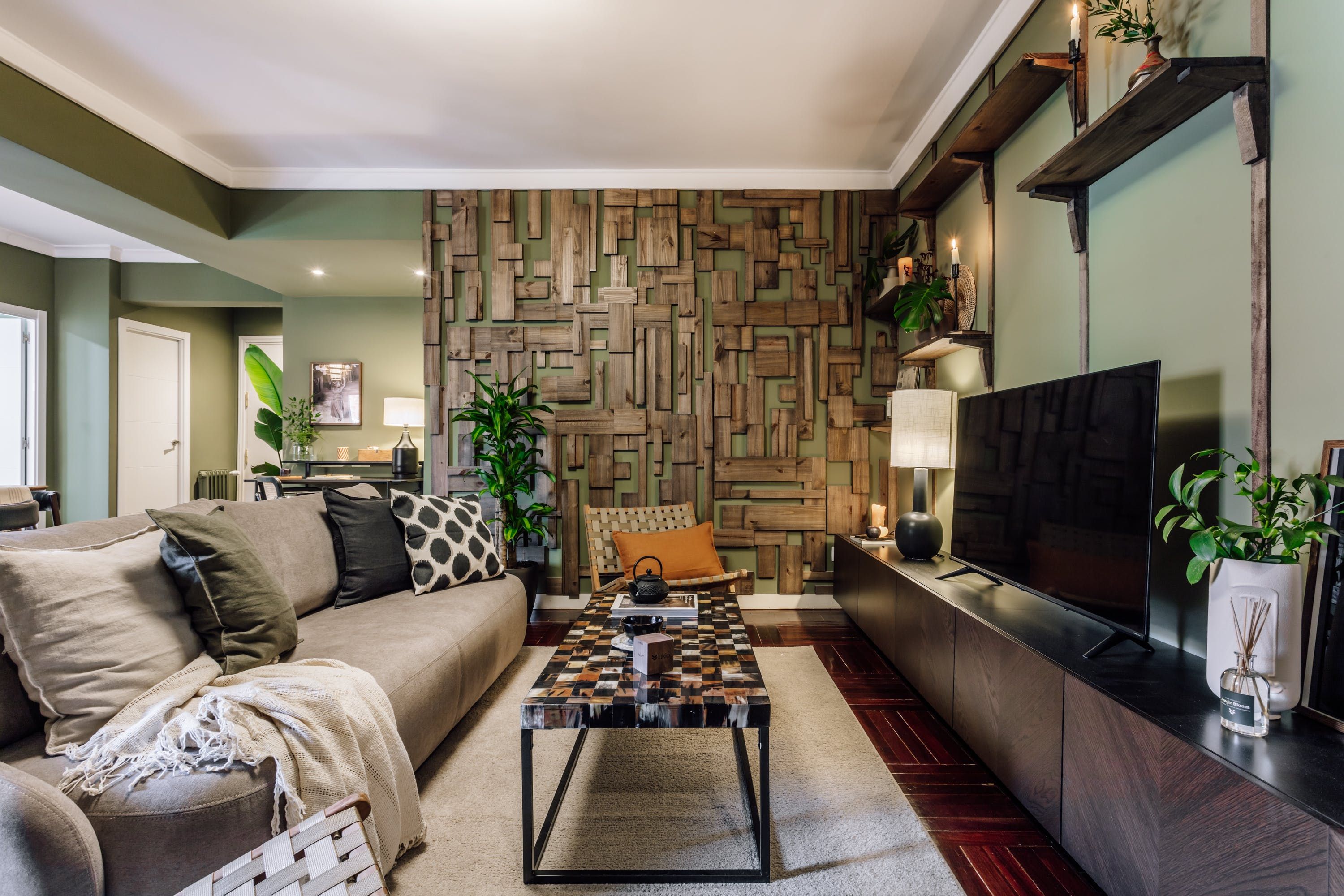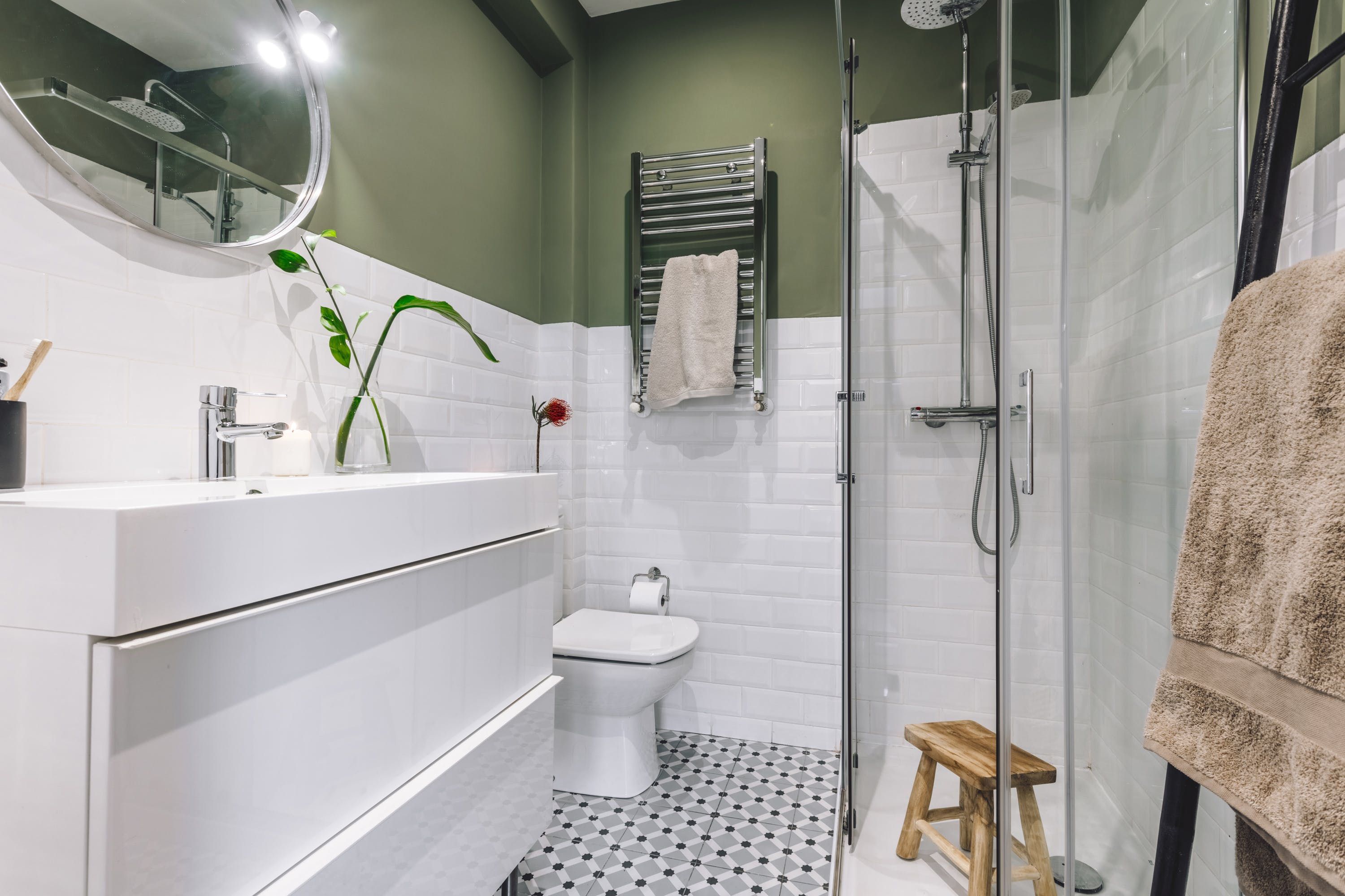 This forest green home will surely amplify the cost vibes as you unwind during your adventures in Madrid. Snuggle up together on the sofa by the unique wooden feature wall, as you watch a movie on the TV, paired with a freshly brewed pot of tea. The sleek kitchen is the perfect place to whip up a delicious homemade meal, followed by tucking in at the rustic dining table by the window.