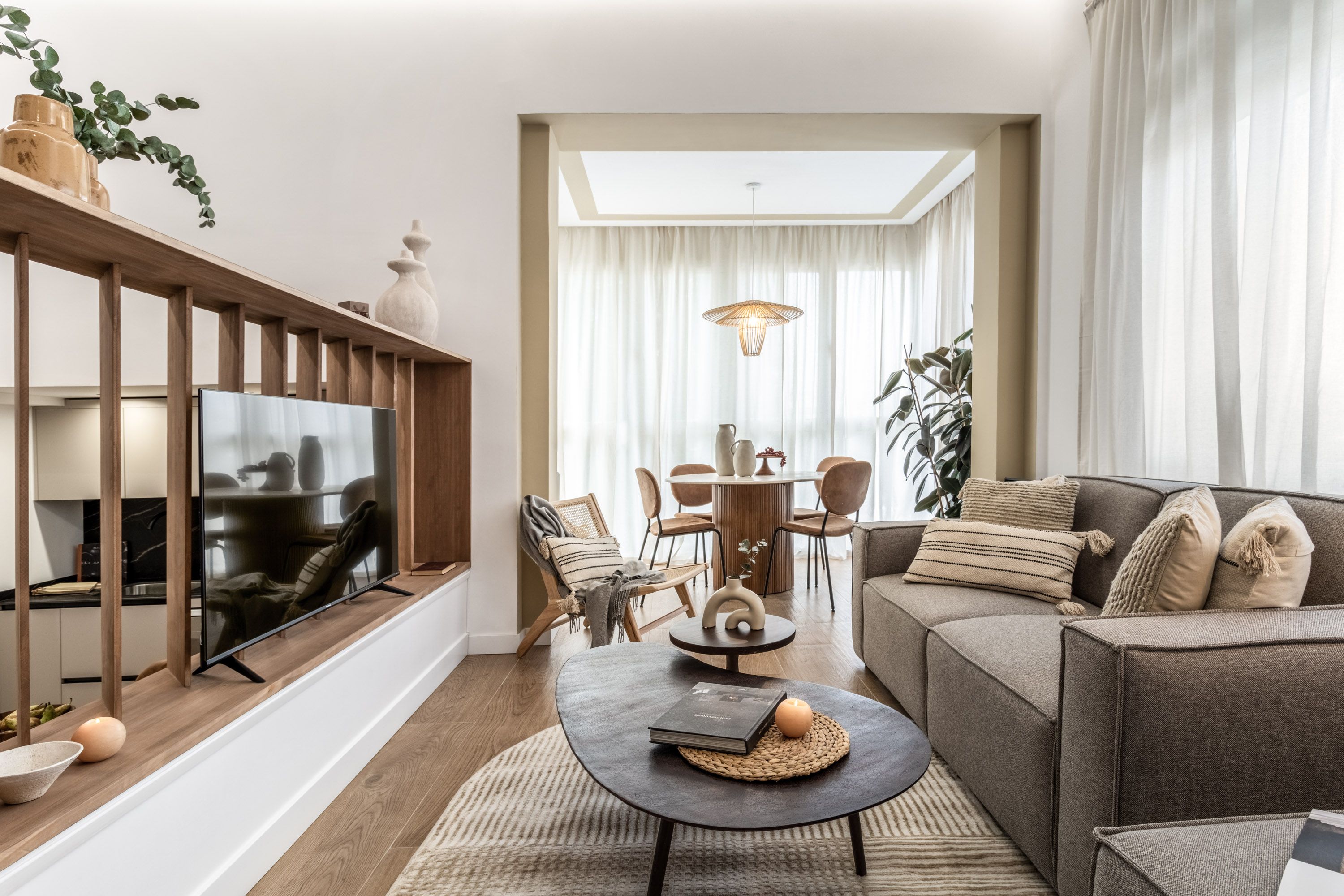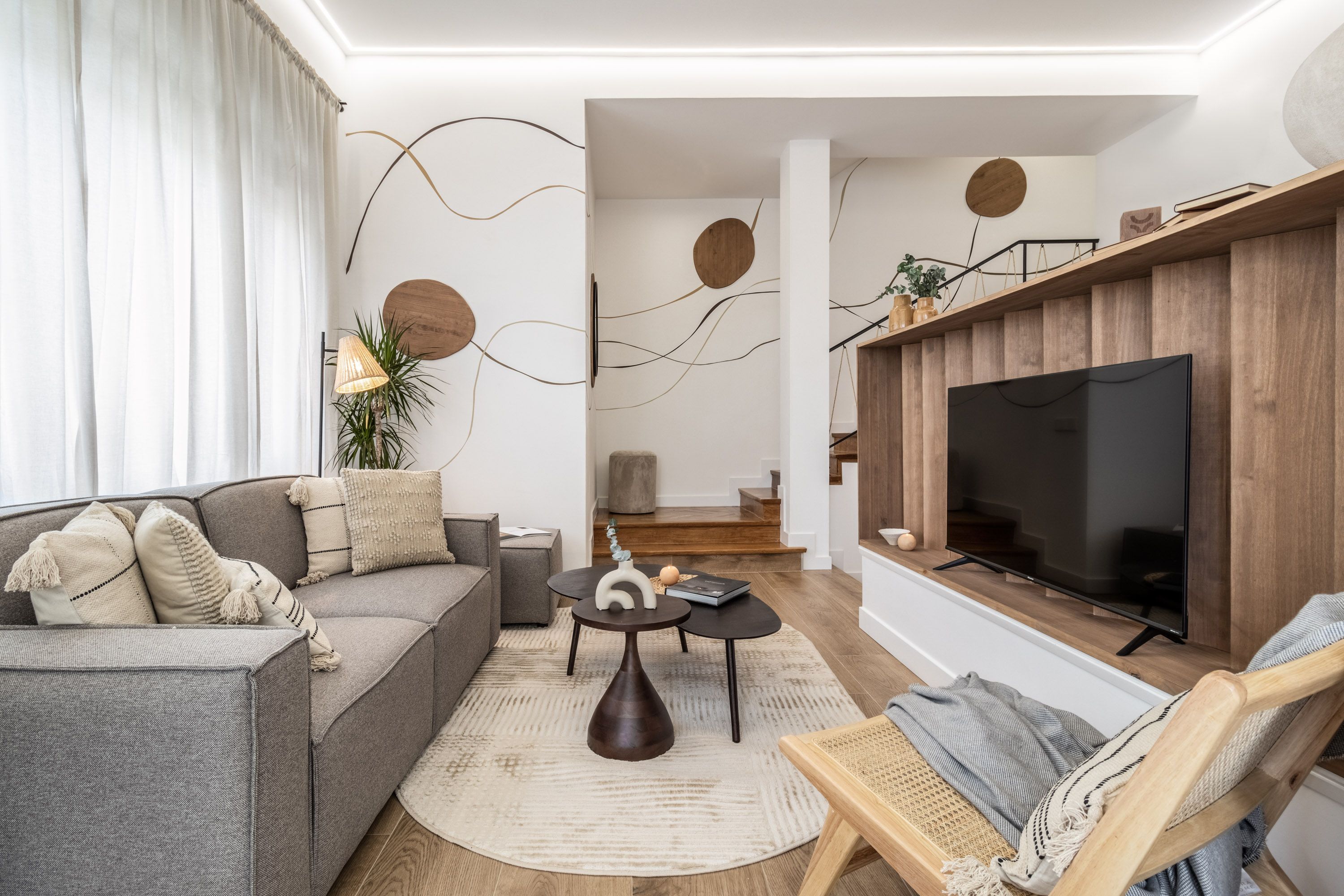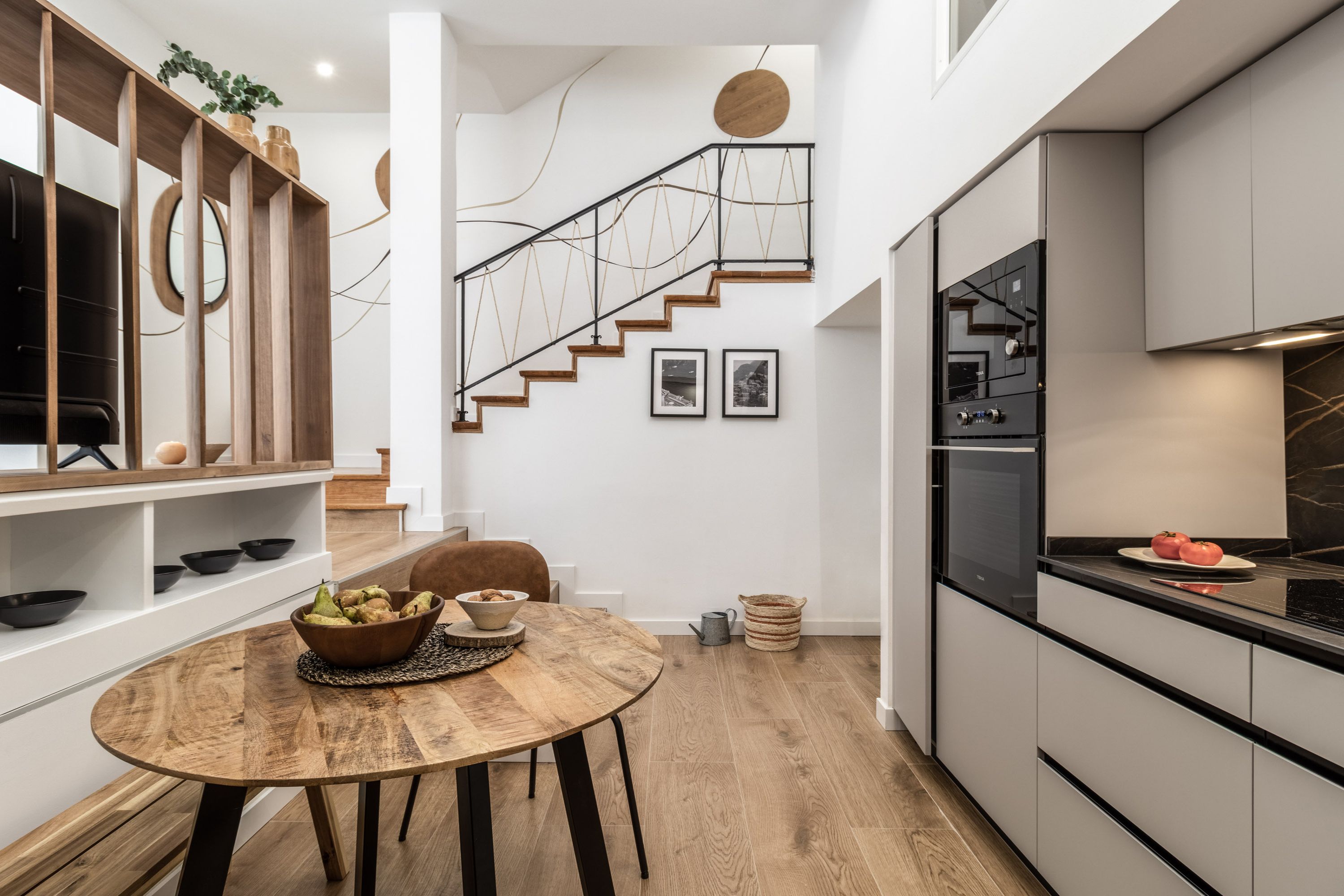 Located amid the skyscrapers of Madrid's Azca area, this home is ideal for two couples or a family looking for a cosy base in the city. The open-plan living area is spread over two levels, letting you enjoy some time apart when needed. If cooking is on the agenda, the kitchen has everything you need, and the small dining table by the windows is a perfect spot for light meals. In the local area, you'll find several museums, high-end eateries and the Bernabeu Stadium, while if you want to explore farther afield you're just a short walk from República Argentina Station.