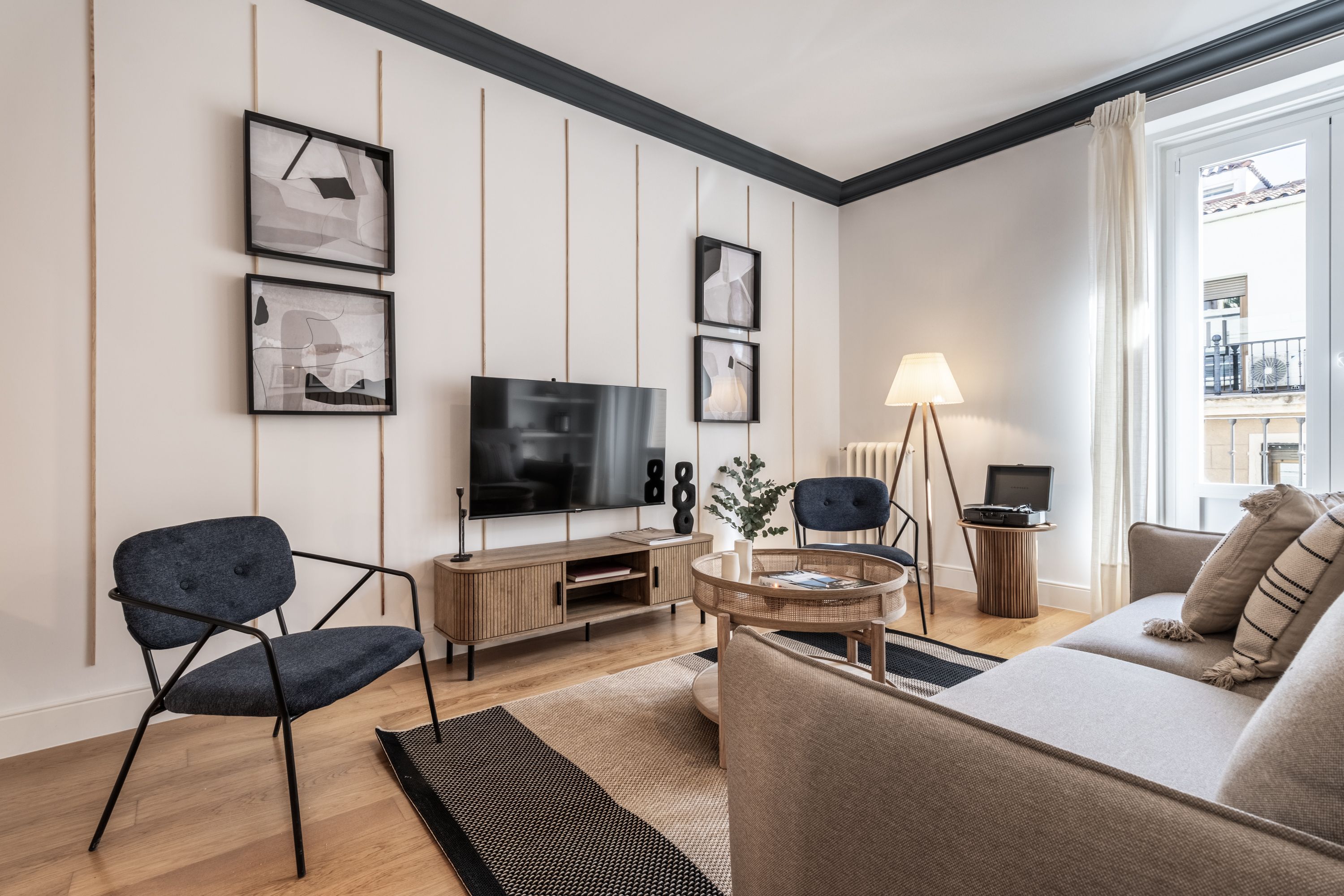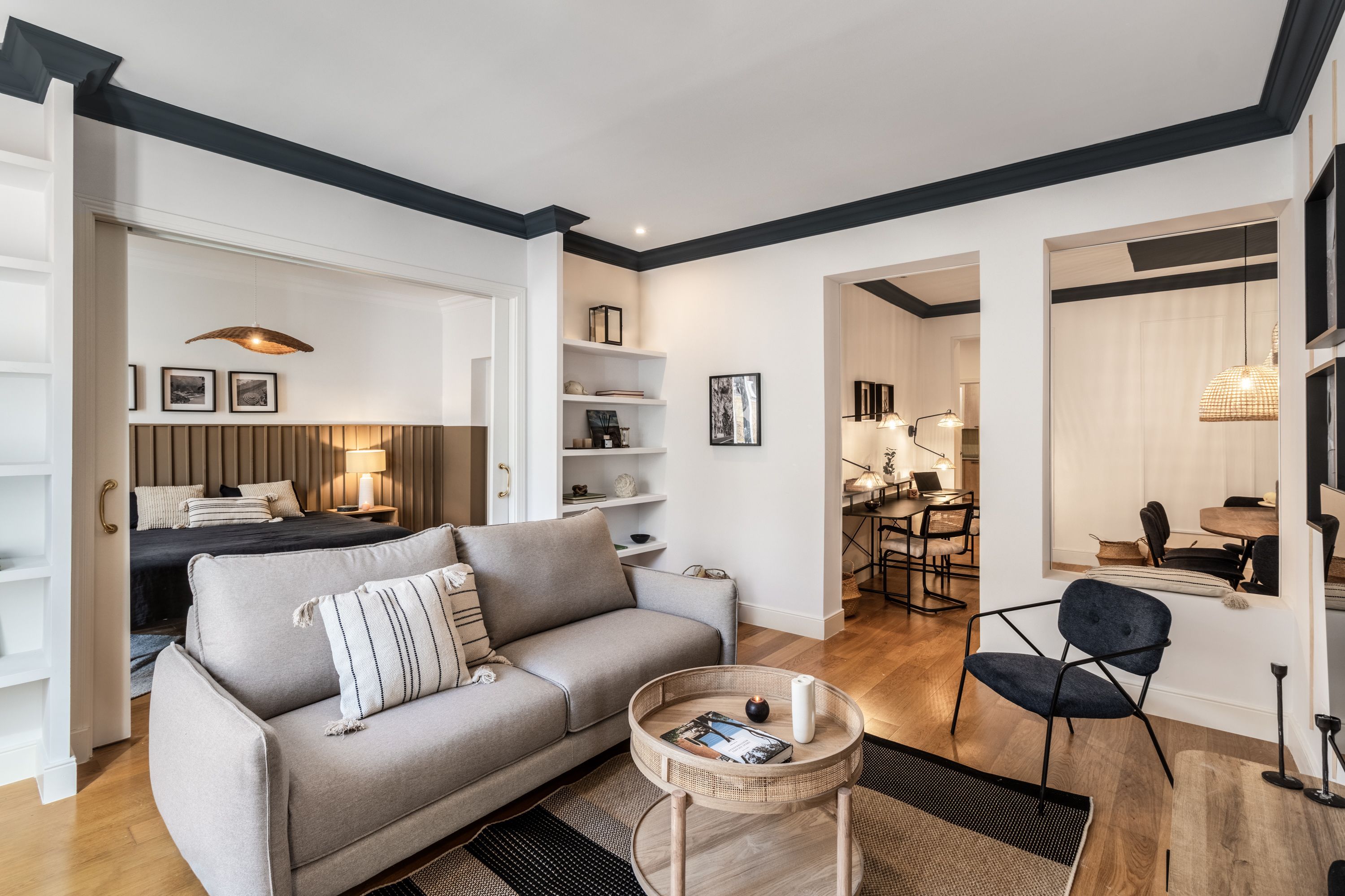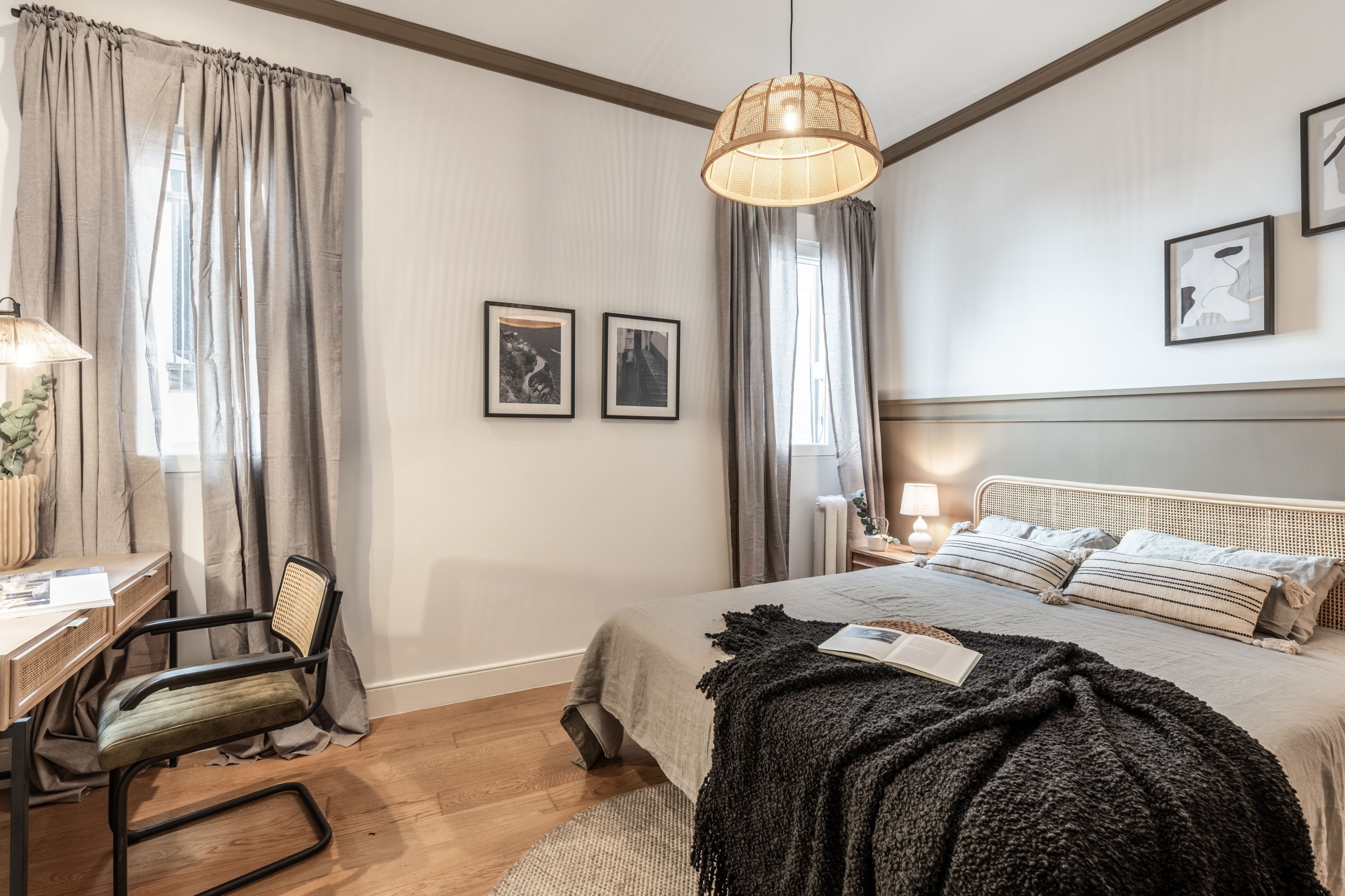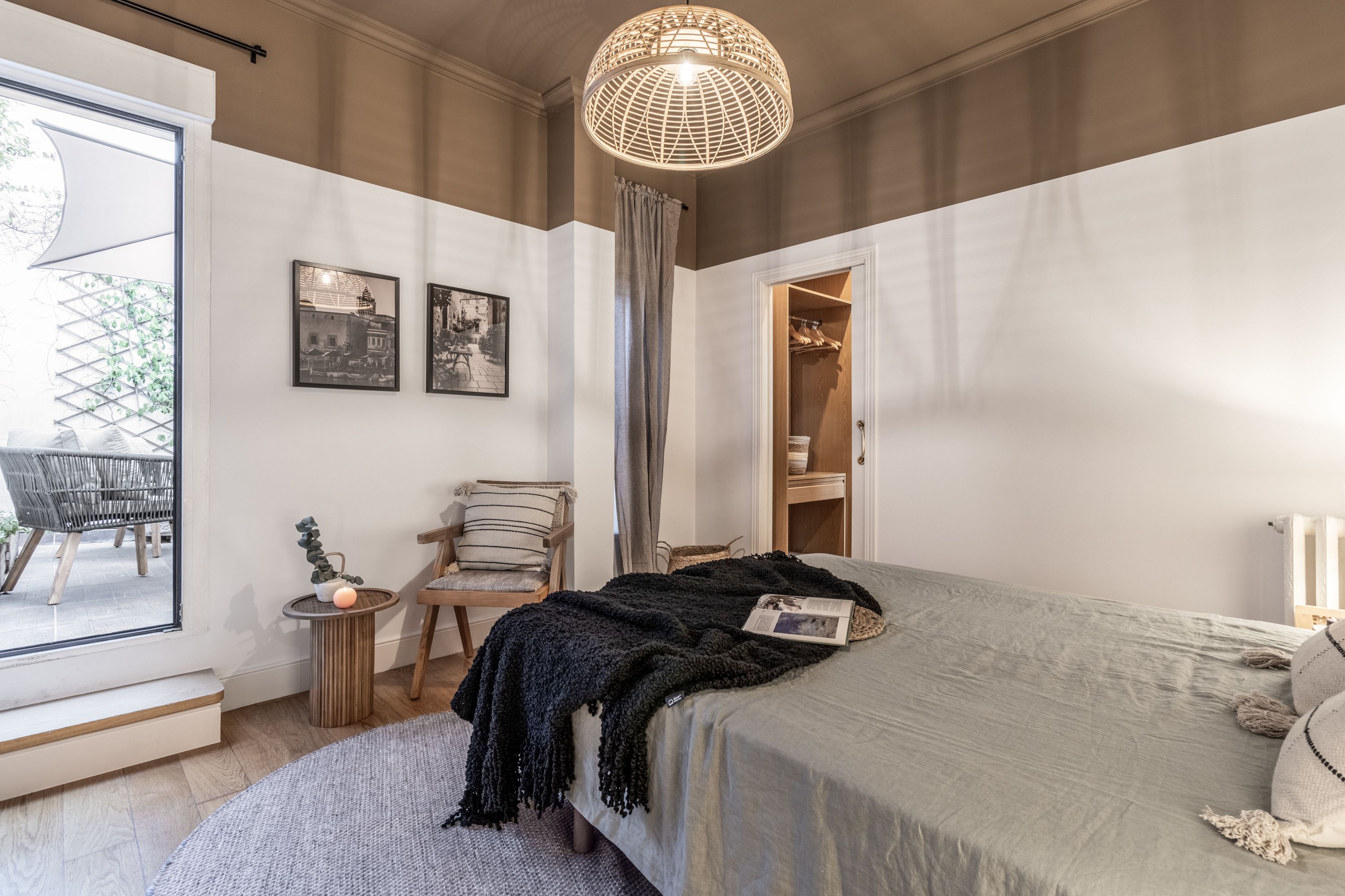 This apartment is situated in the Huertas-Cortés neighbourhood, with its narrow, elegant streets and beautiful architecture. You’ll find a variety of museums as well as plenty of dining options within walking distance, along with co-working spaces. Not that you’ll probably need them as this home has several desks if you need to work while away. An absolute highlight of this home, we think, is the private courtyard garden with its vine-clad walls – the perfect spot to relax after a busy day.