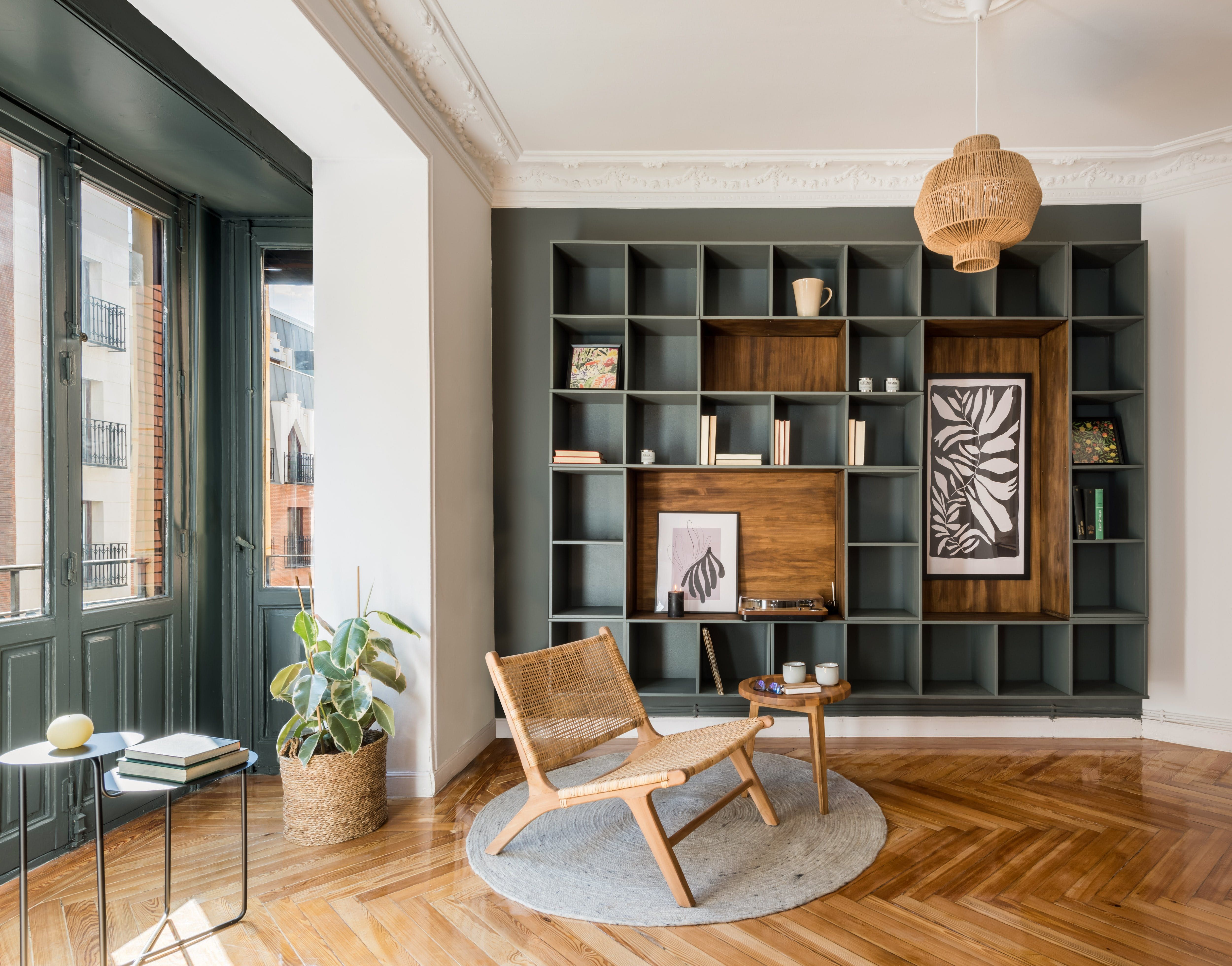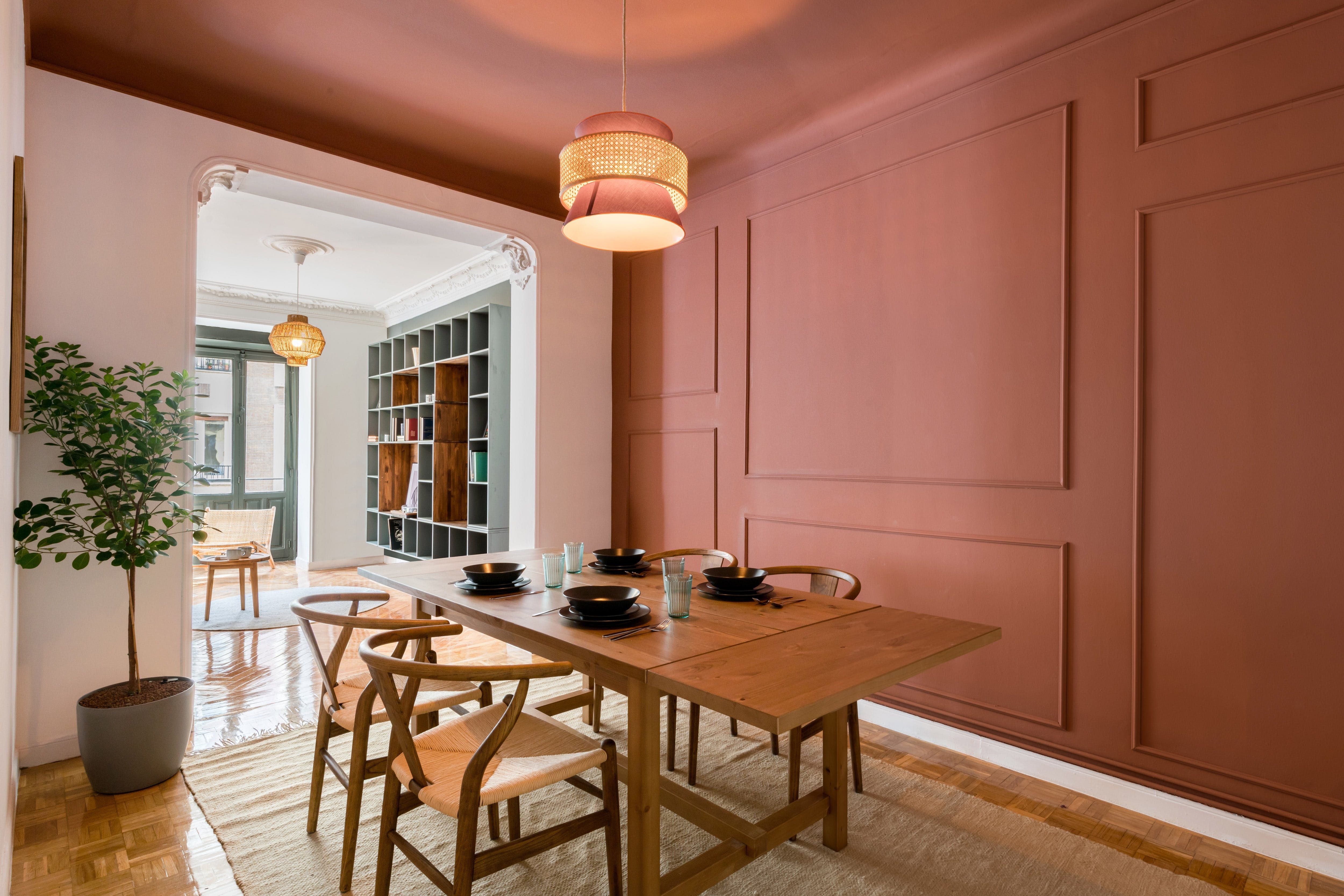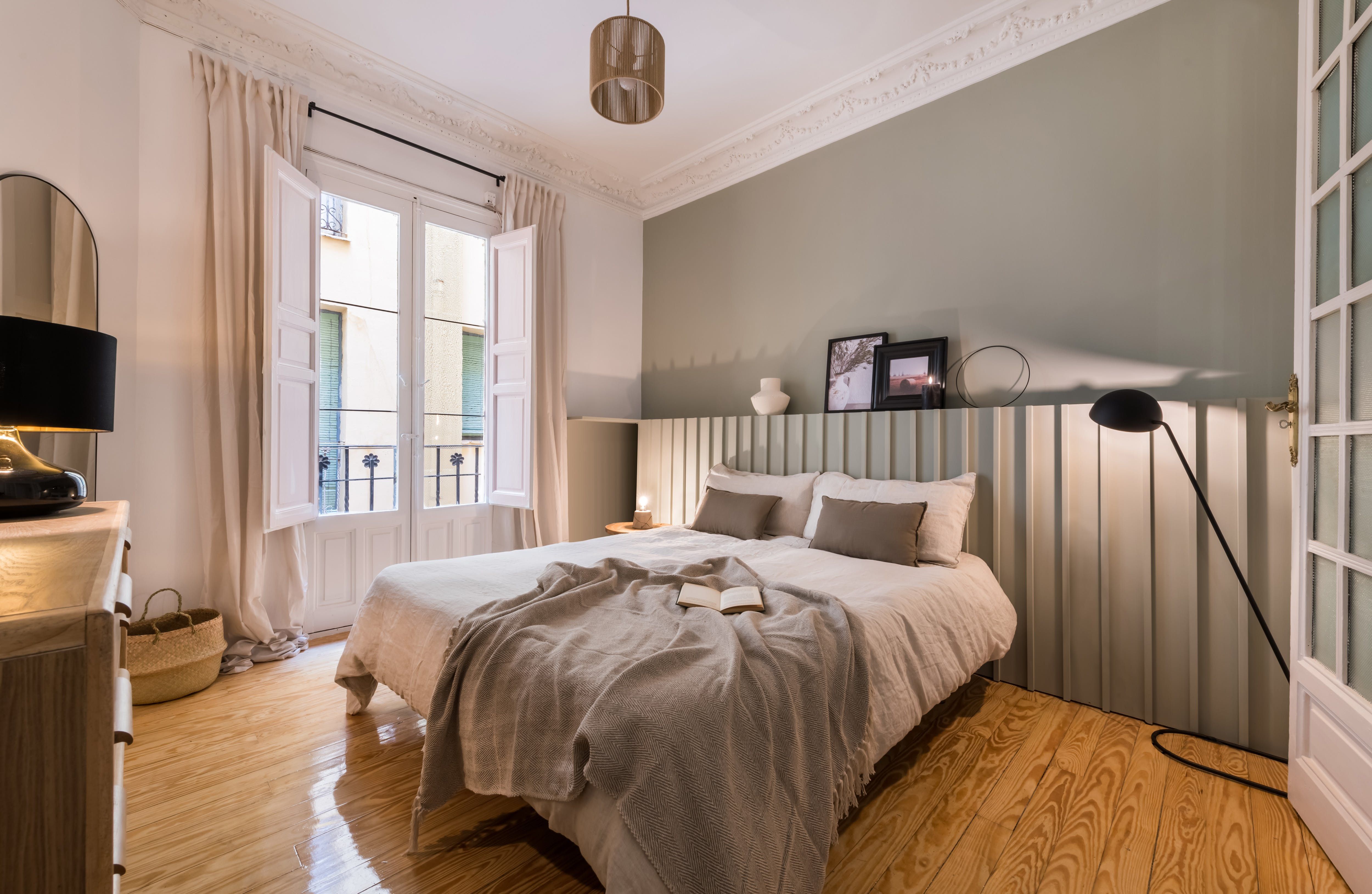 Step into a world of old-school elegance and modern design at this stunning apartment in Madrid’s stylish Salamanca neighbourhood. Inspired by the landscapes of Calabrian vineyards, this home’s main living space is large and bright with tall corniced ceilings and earthy tones giving it a soothing, welcoming feel. We love the dual-facing sofa in the centre of the room, and the large green shelves that match the French doors leading out onto a beautiful Juliet balcony. Soak up some rays on the perfectly positioned seat here, either sipping on your morning coffee with a good book or enjoying the sunset with a glass of wine. You’ll relish gathering together in the grand burgundy-coloured dining room with its wooden dining table and feasting on homemade tapas made in the pretty tiled kitchen. With a separate office as well as a dressing room, you’re all set whether you’re getting ready to work or to go out on the town, while the two bedrooms dazzle with a delicate bohemian softness that provides the ideal canvas for a dreamy night’s sleep. Factor in the gorgeous terracotta-coloured bathroom with its bathtub – the perfect way to end the night with a glass of bubbly – and you’ve got everything you need for a relaxing stay. Outside of your home, you’re a fifteen-minute walk from El Retiro Park, a thirty-minute stroll from Gran Vía’s shops and the Sorolla Museum is twenty-five minutes on foot from your door.