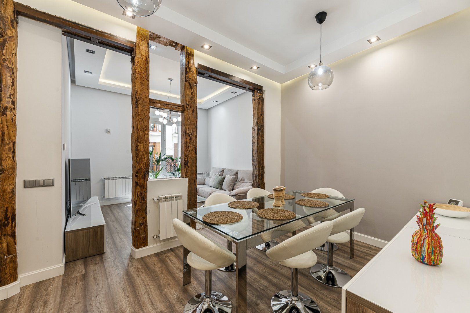 Blending timber frames with sleek, contemporary furnishings, this handsome apartment in Madrid’s lively La Latina neighbourhood is an ideal base for those looking to soak up the best of Madrilenian life.