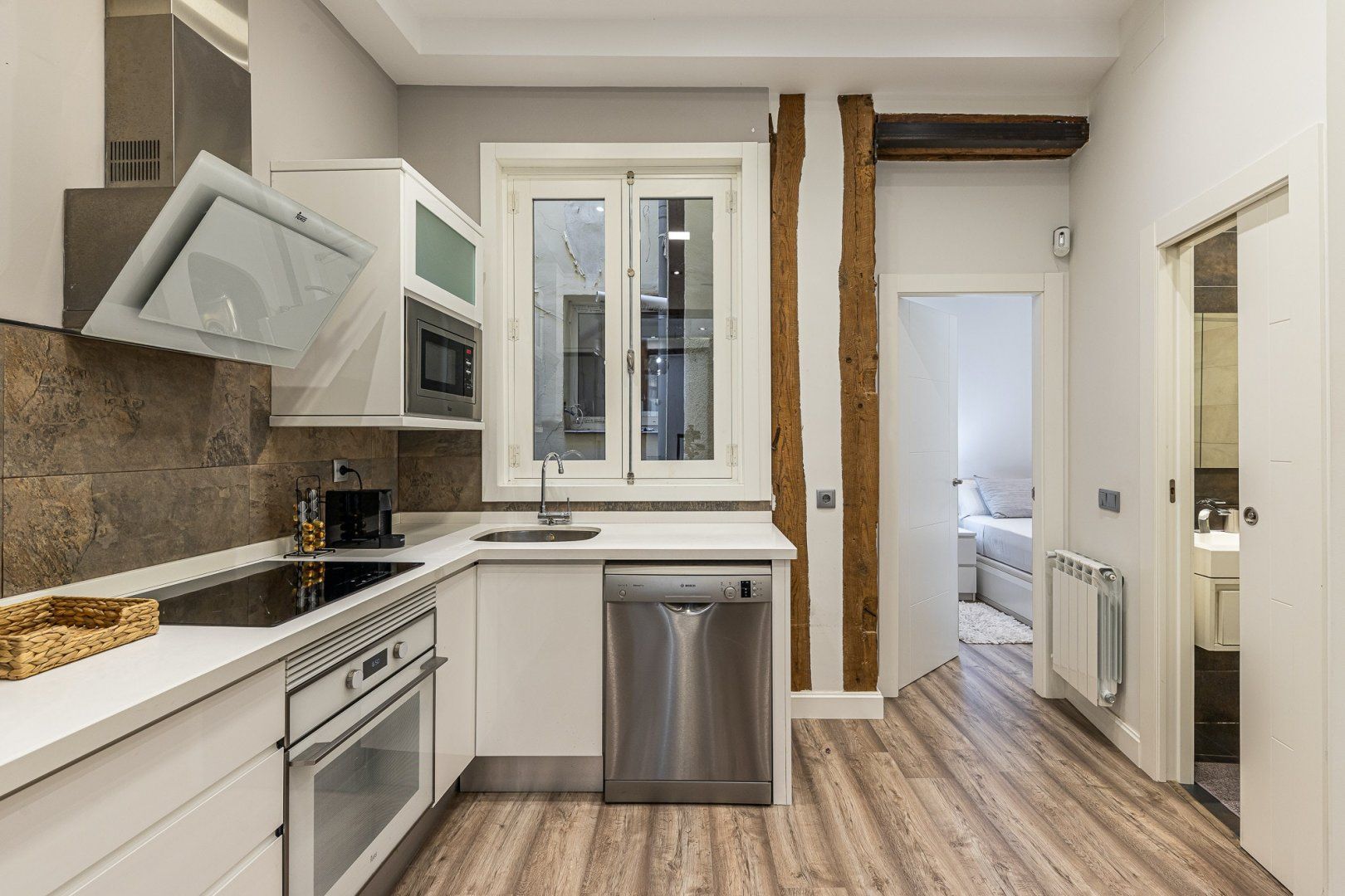 Speaking of sightseeing, you’ve got plenty to see and do within easy walking distance, not least of all your own neighbourhood’s maze of narrow lanes filled with tapas bars and cantinas. Elsewhere, Plaza Mayor is a ten-minute walk, the Royal Palace of Madrid is a fifteen-minute stroll, while the world-famous Museo Nacional del Prado is twenty minutes away on foot.