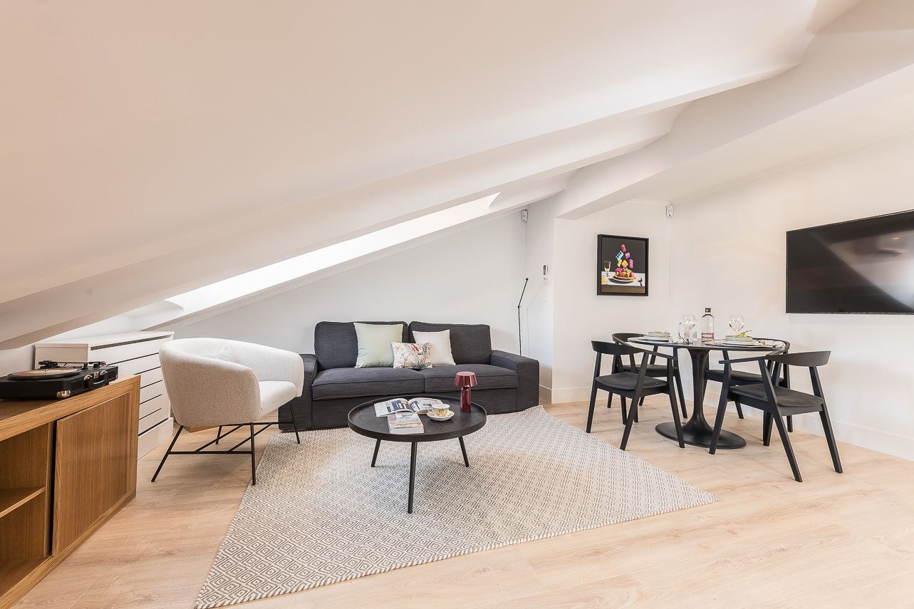 This luxurious apartment is located in the heart of Madrid’s Salamanca district, surrounded by boutiques, restaurants, and cafes. El Retiro Park is less than five minutes away on foot, there are galleries nearby, and a Metro station is just along the road. Housed in a stately building in a classic Madridian style, the apartment is stylish and sophisticated. High ceilings and large windows make it a relaxing space to return to after seeing the sights of the busy city.