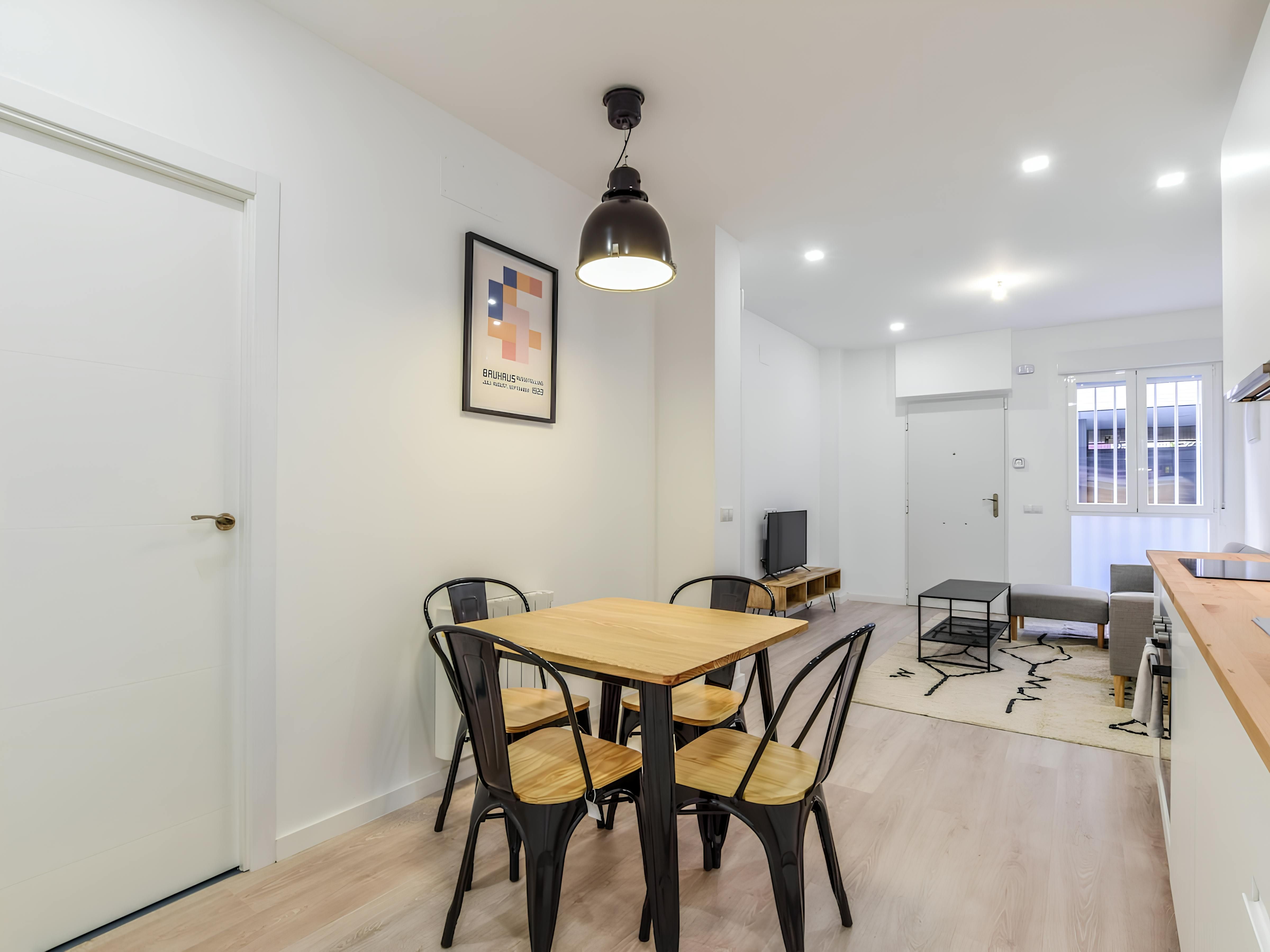 Just outside of Madrid’s centre lies this minimal and practical apartment in Usera. While it’s not in the beating heart of the city, you’ll be well connected here, with Almendrales metro station a short walk away. Though the space is fairly basic, and two guests will be sleeping on the sofa bed, it offers a laptop-friendly dining table for remote workers and a well-equipped kitchen for dinners at home. Plus, if you’re looking to make the most of your busy itinerary, your host can help arrange luggage storage.