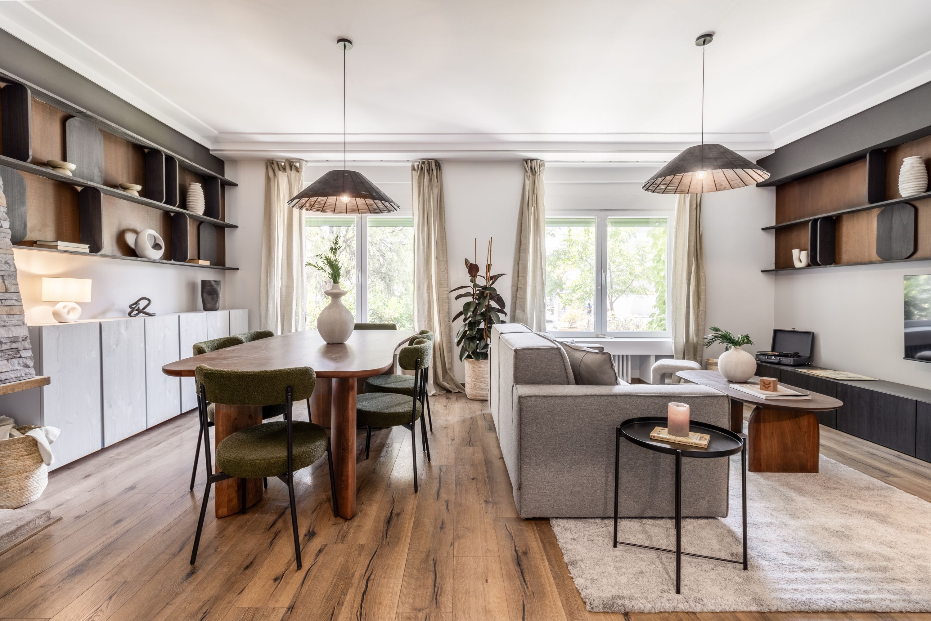 Sports fans – this one’s for you. Within walking distance of the Santiago Bernabéu Stadium, you can take in a game and soak up the atmosphere all around this home on match days. The apartment itself is spacious for six, and you’ll find everything needed for a comfortable stay. In Madrid on business? There’s a separate office space here, so remote work’s a breeze. If football’s not your thing, fear not – you can soak up the green space of Parque de la Ventilla or stroll along Paseo de la Castellana, instead.