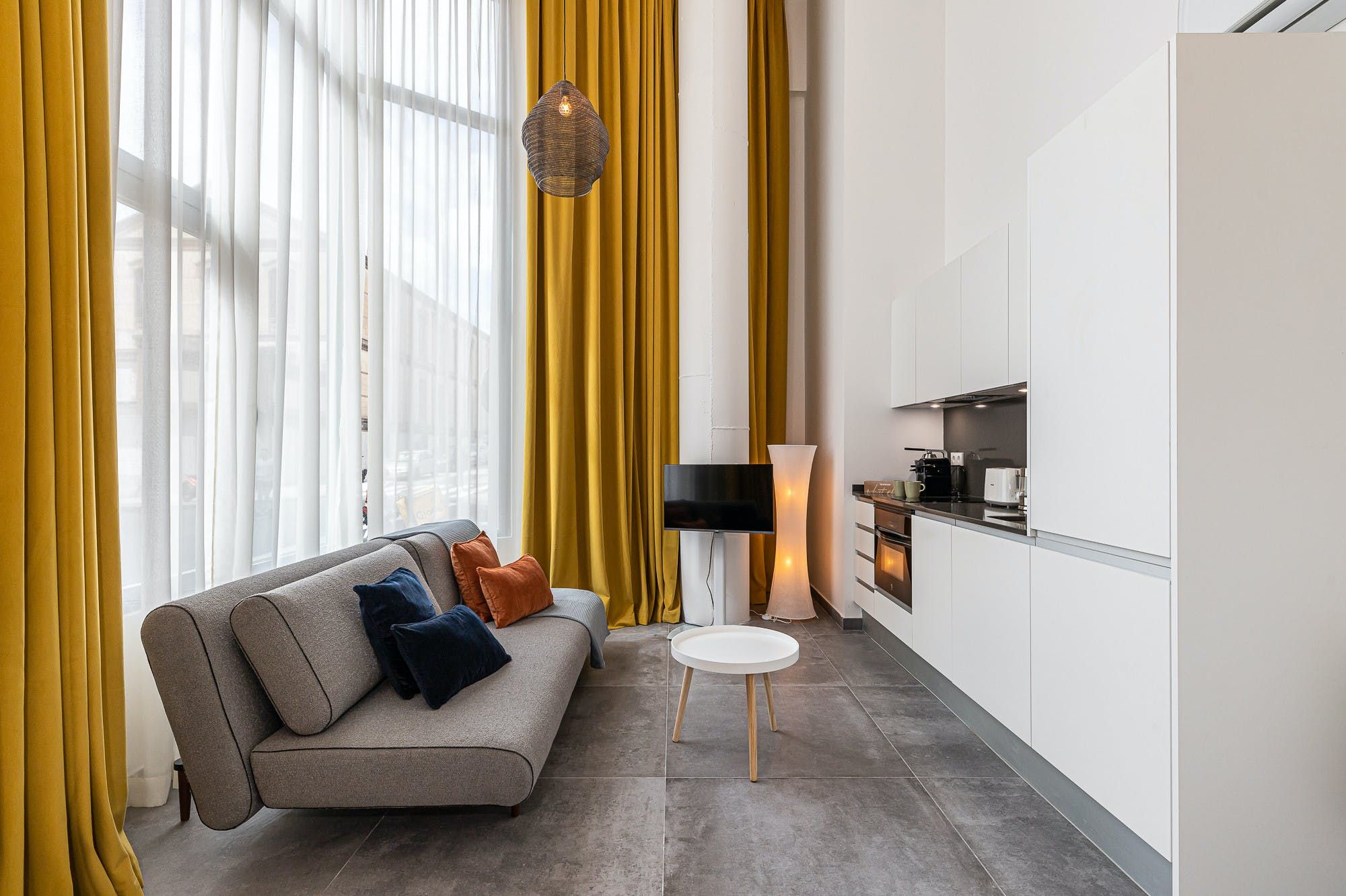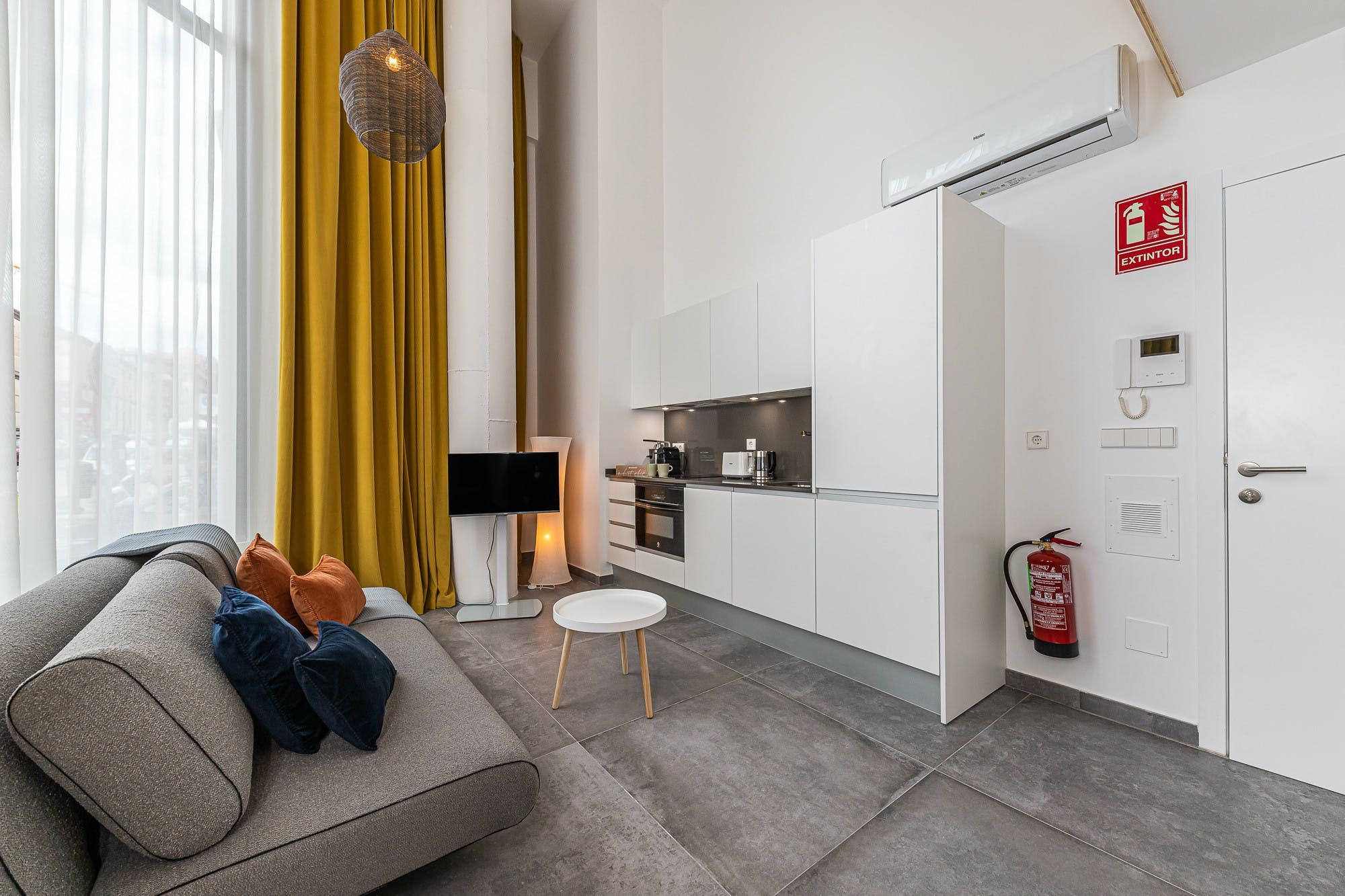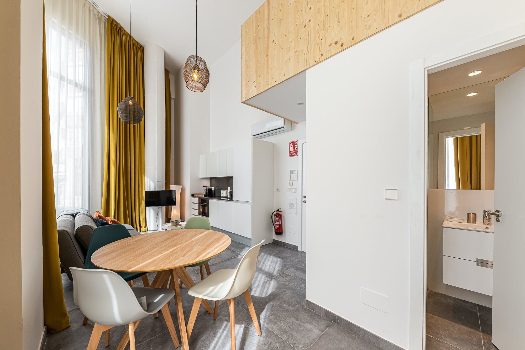 Set within one of Madrid's coolest areas, Lavapiés, this home has a great address. You'll be within walking distance of some fantastic cultural attractions, such as La Casa Encendida. And you'll be able to pick up some craft beer, cheese and other goodies from the nearby San Fernando Market. Take some ingredients back and rustle up some tapas in the modern kitchen. The first thing that strikes you with this home is its lofty ceilings. Up the staircase, you'll find the mezzanine bedroom, which overlooks the living space. This place would suit couples, a family or business professionals.