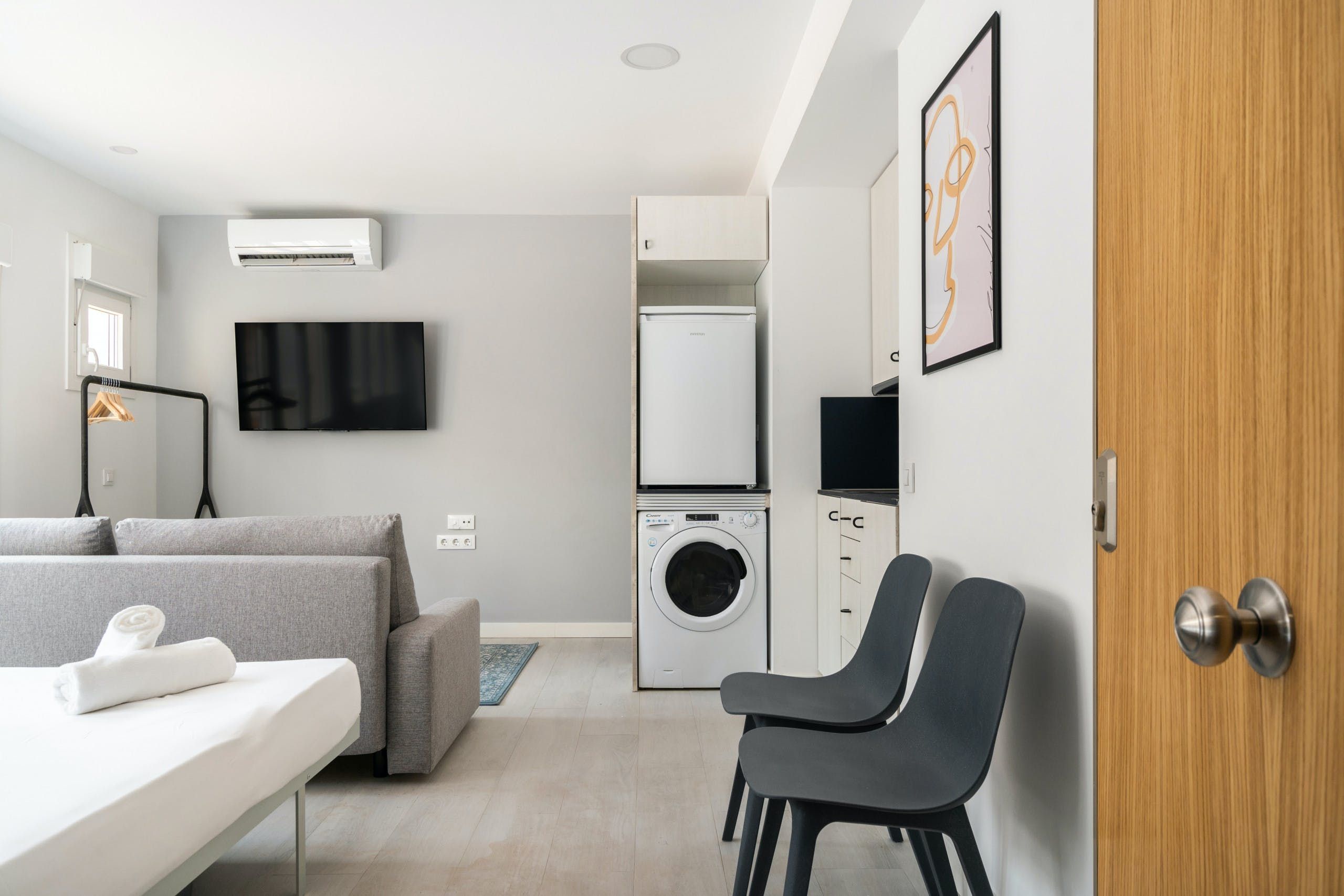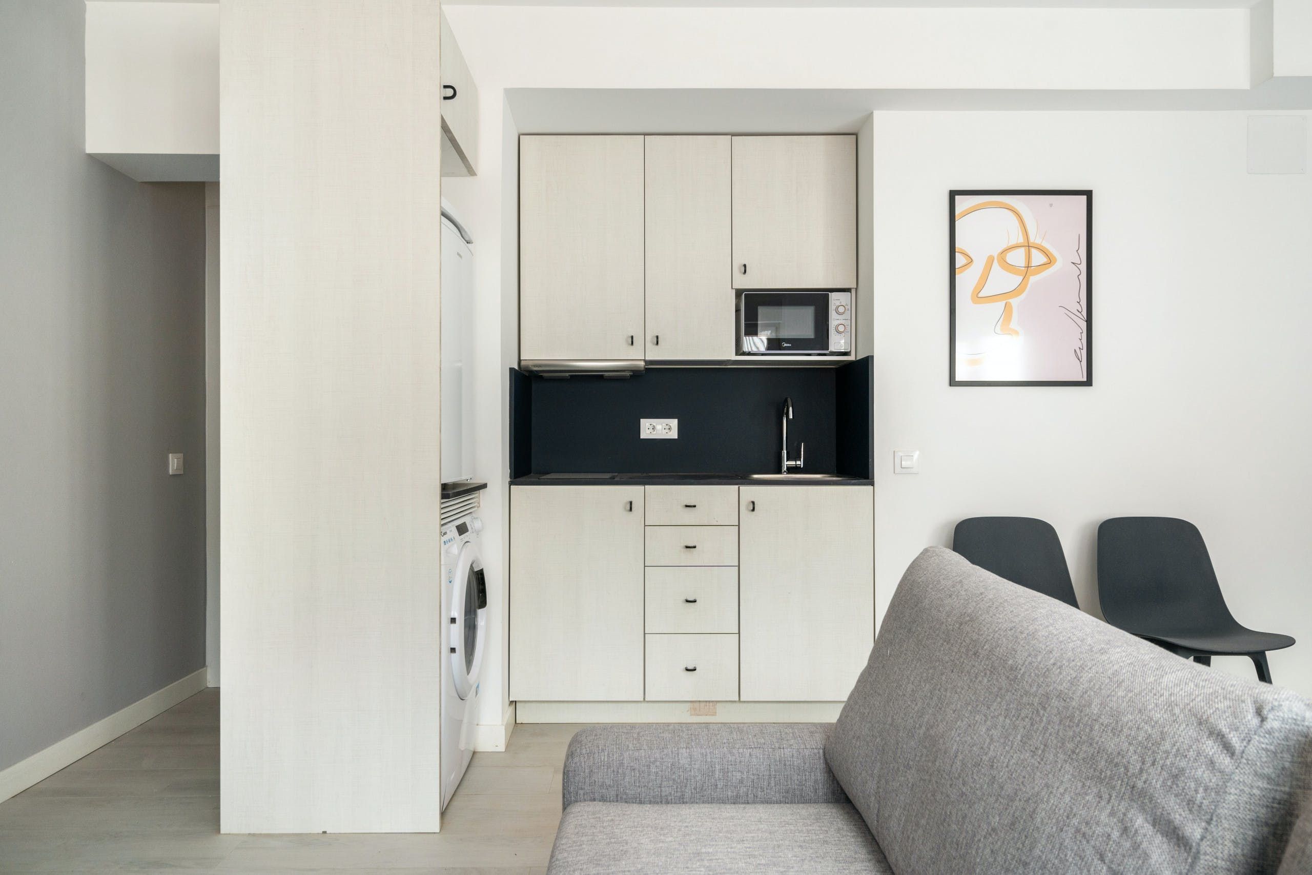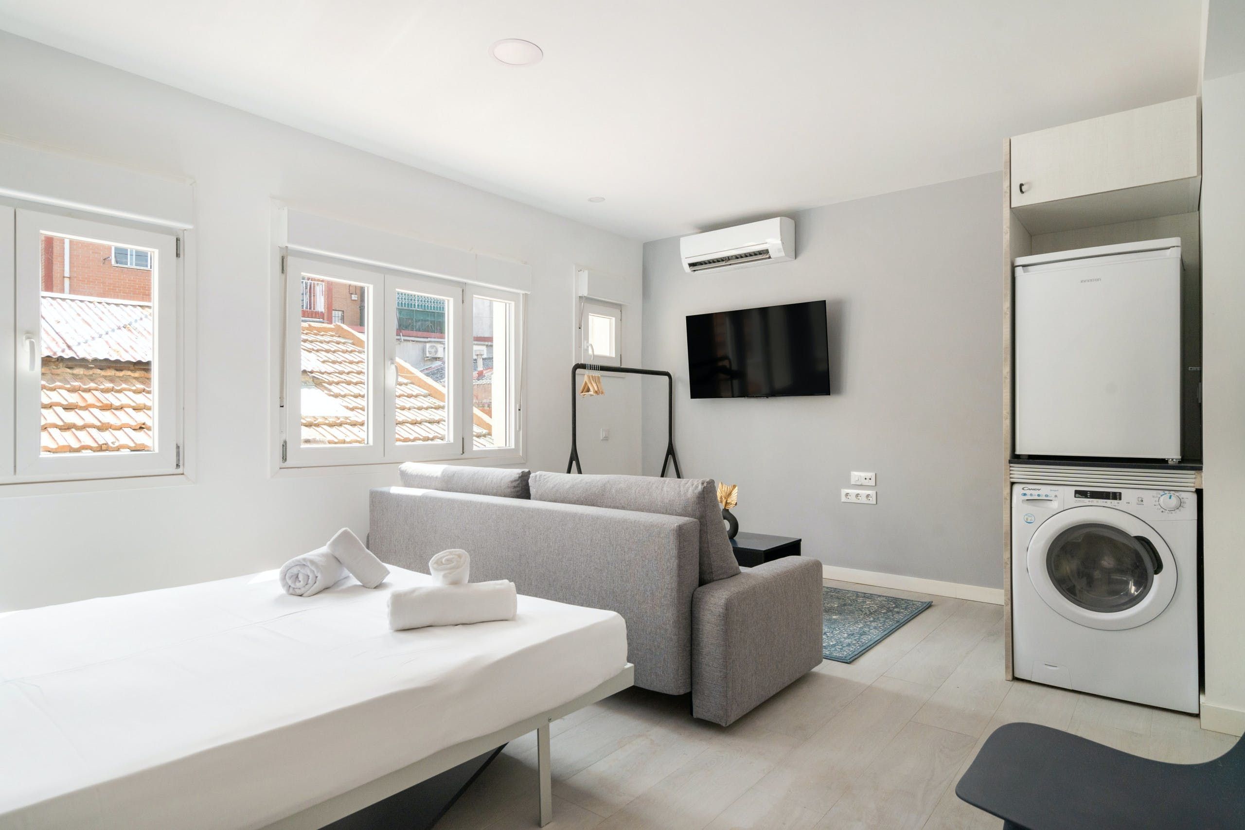 Living like a local and function meet in this studio flat in Madrid's Opañel district, with everything you need for an extended stay – ideal if you're a remote worker or someone who doesn't want to be on top of the touristy parts of town. With both beds in the same room, the home is best suited to families, and space is limited – though with a sofa bed and a Murphy bed, you can create extra space during the day. In the local area are several parks and local eateries, while the nearby Urgel Station connects you to the city centre in less than twenty minutes.