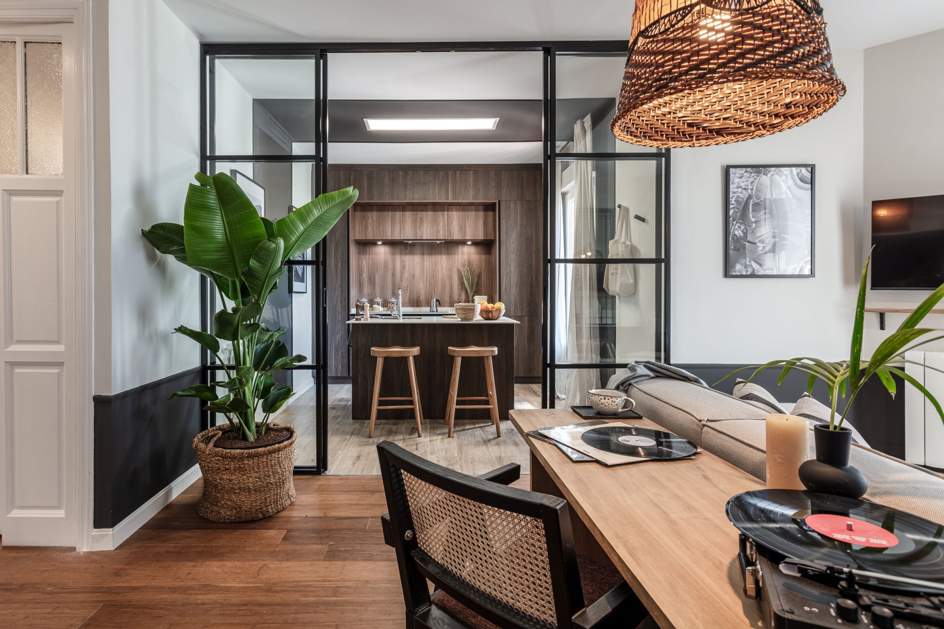 You’ll find this contemporary pad nestled in New Ministries-Rios Rosas, an area that seamlessly blends modern skyscrapers with classic architecture. The home itself is perfect for families or a group of friends, with plenty of space to spread out or socialise. With not one but two desks, it’s ideal for business travellers, too, and the sun-kissed balcony, though not the biggest, is a cosy spot for sangria. Ready to explore? Head to the Azca shopping district, or enjoy a little culture at the Geological Museum.