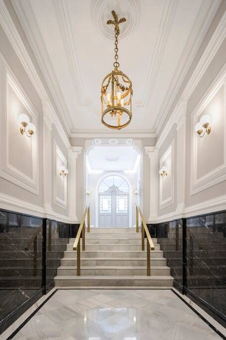 Nestled in the heart of Madrid, this sophisticated, split-level apartment is steeped in majestic charm. You wouldn’t be able to tell from its modern interior, but this home dates all the way back to the 17th century when it was used as a residential palace for members of Spain’s nobility. So, if you’re looking to live like a king, you’ve come to the right place.