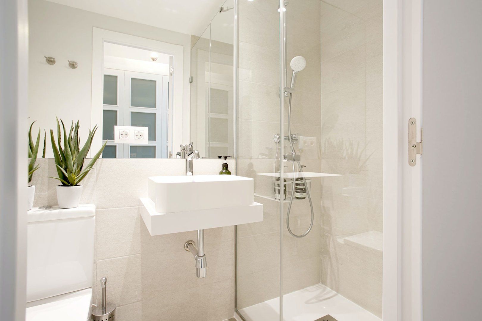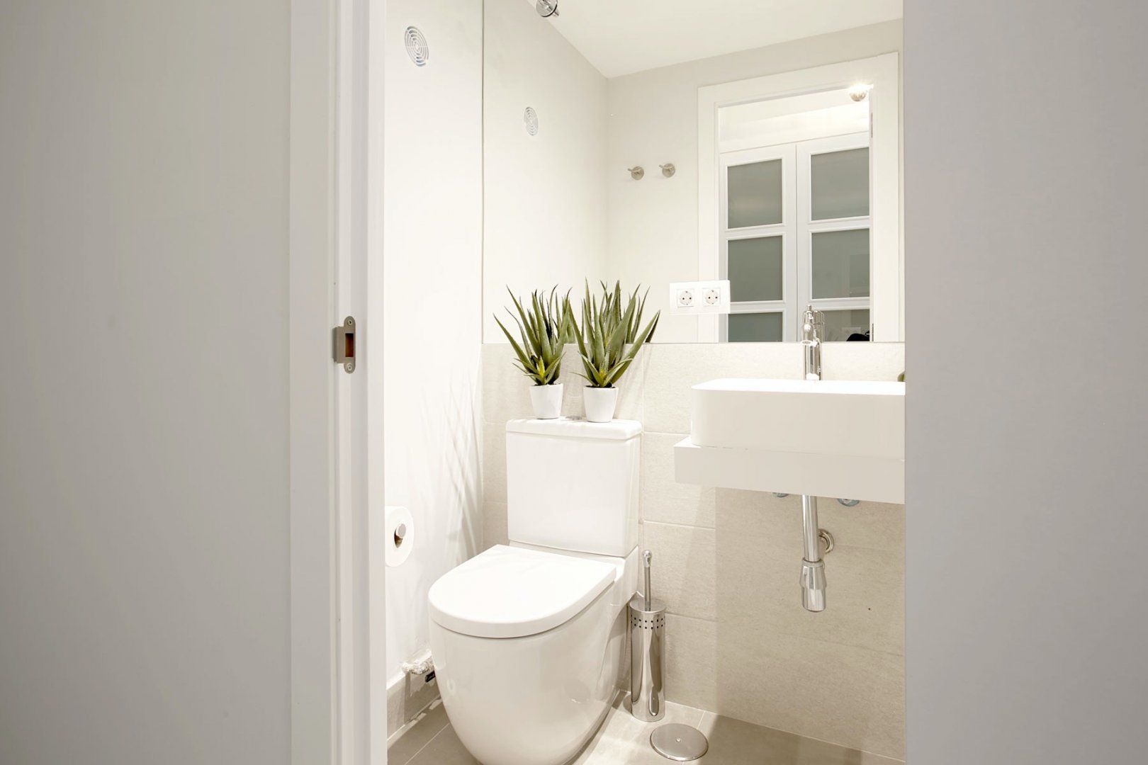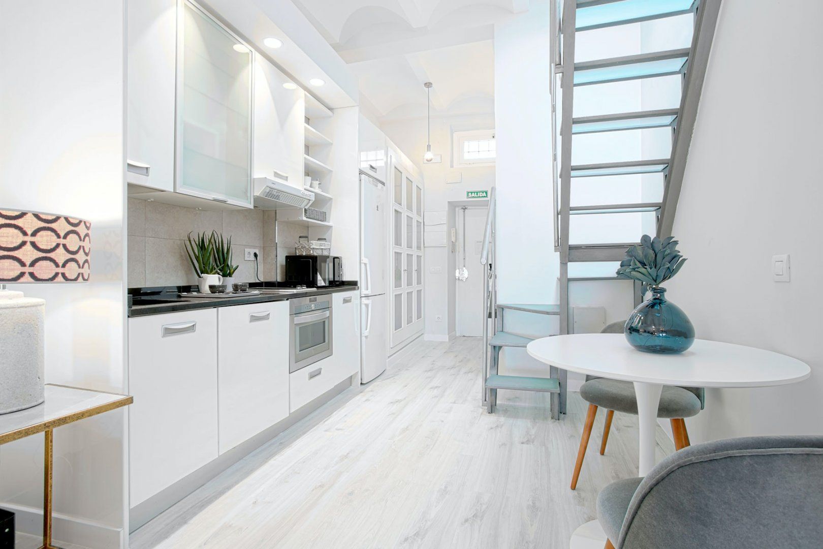 Inside, elegant white interiors set a striking first impression in the open-plan living area, with pops of green in the houseplants and a glossy, modern finish to the furnishings. The bedroom is a chic retreat with a small balcony giving way to Plaza Mayor views, but for truly outstanding views, we recommend climbing the stairs to the private rooftop terrace.