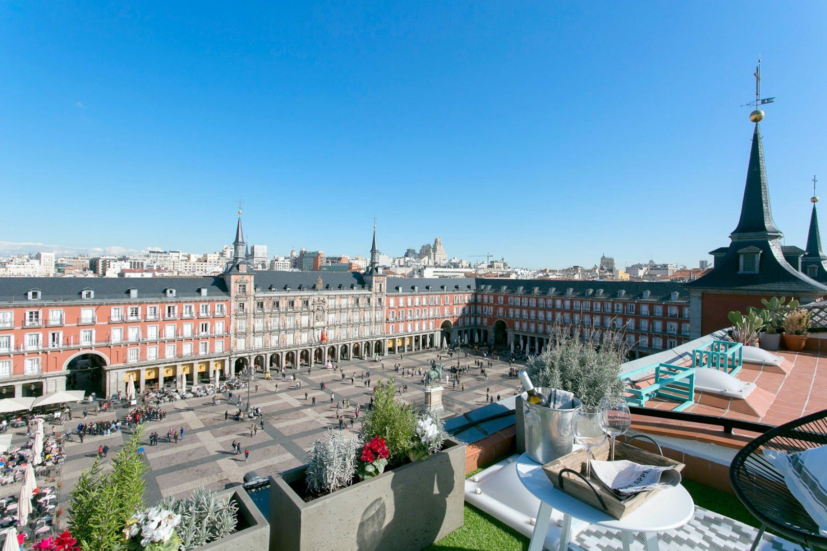 Equipped with loungers and Acapulco chairs, this sun trap is the ideal spot to catch some rays over your morning coffee or watch the sunset over the Plaza, a glass of Spanish wine in hand.