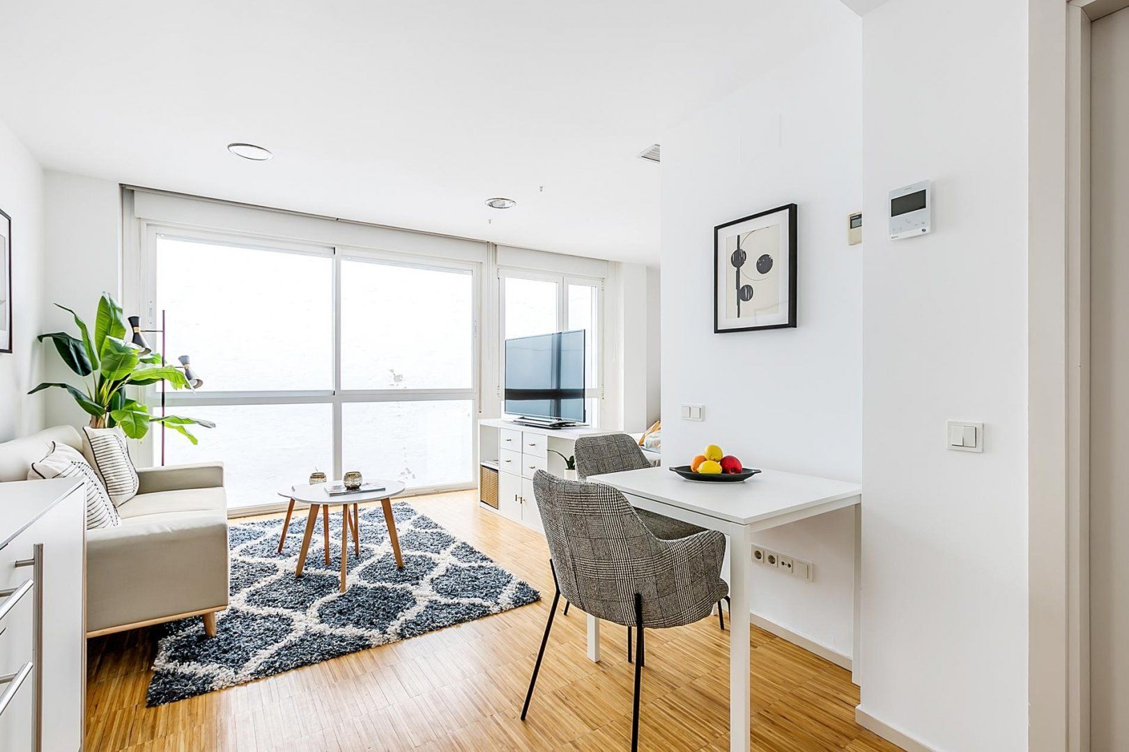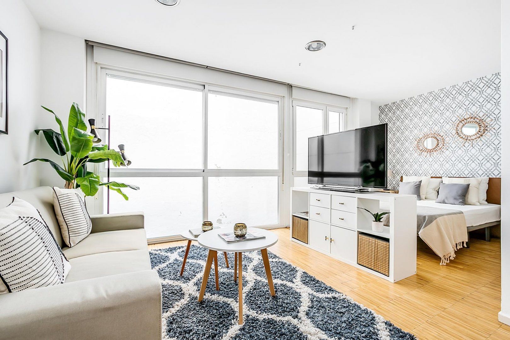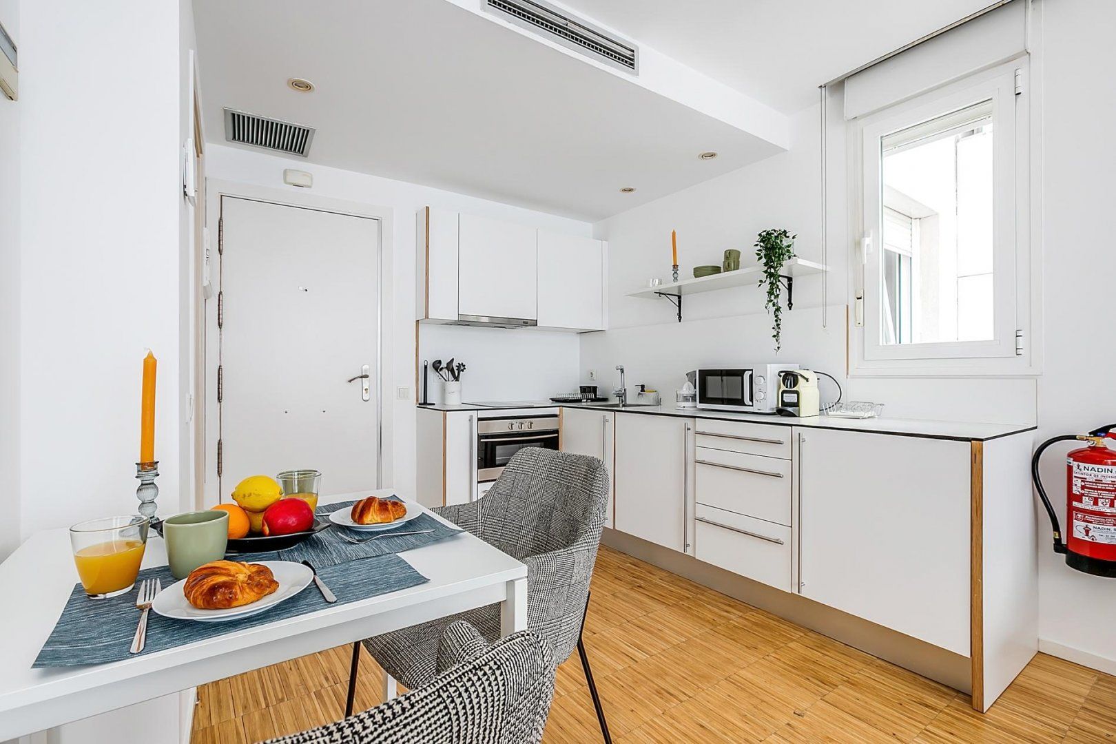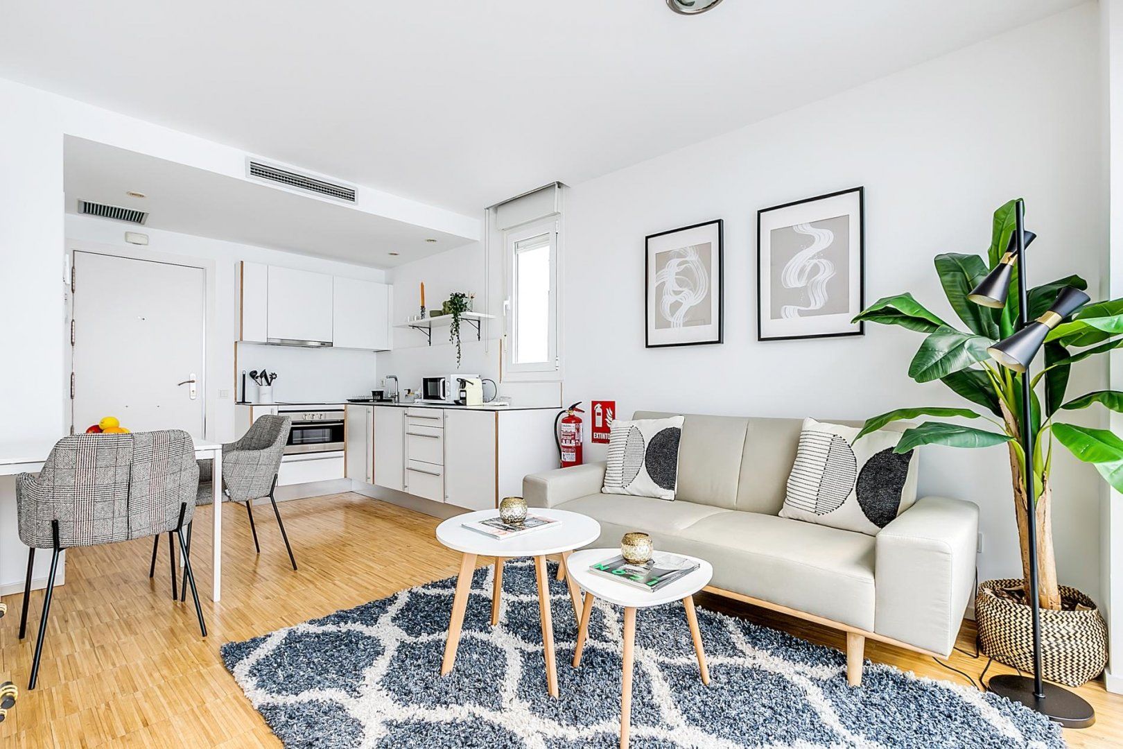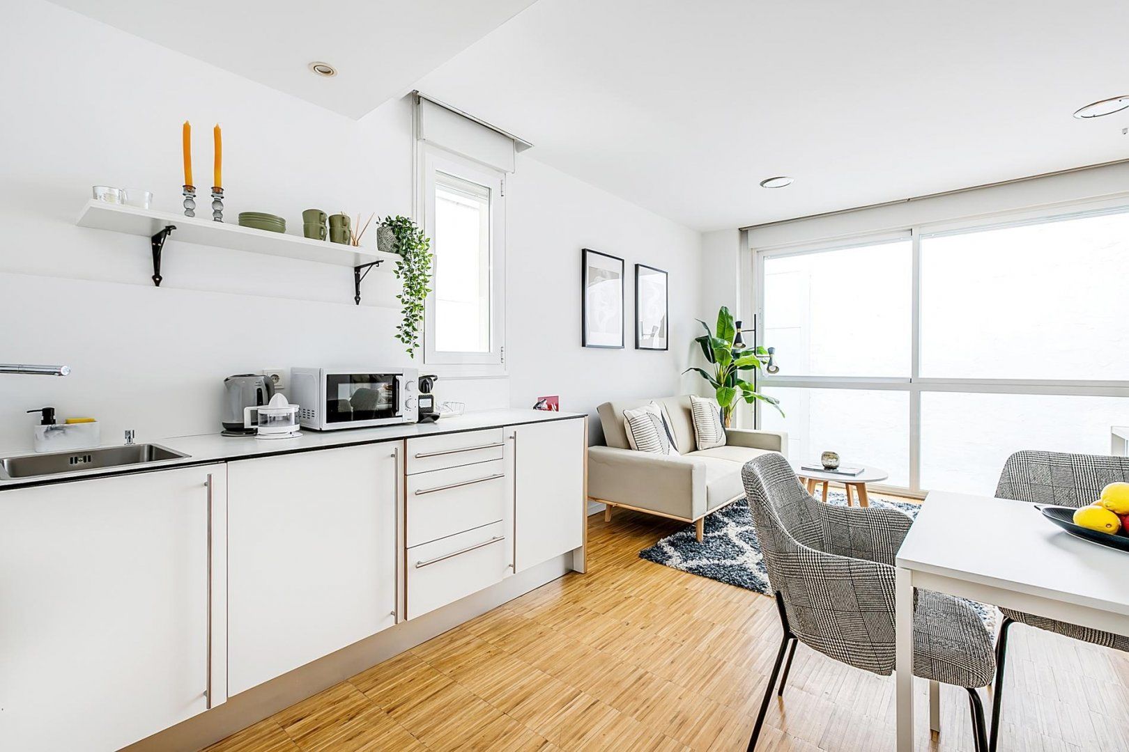 Home truths: *There's a sofa bed in the living area for more flexible sleeping arrangements – your host may be able to accommodate a further two guests here on request *Given its studio-style layout, there's no separation between the sleeping and living areas except *The dining table doubles up as a laptop-friendly workspace *Parking in Madrid can be tricky, so we recommend sticking to the easily accessible public transport where possible – though we think the best way to see the city is on foot *This home is in a central spot, so noise is to be expected *Storage space is minimal here, so we'd recommend packing light *The Smart TV is equipped with Netflix and there's a Playstation here too