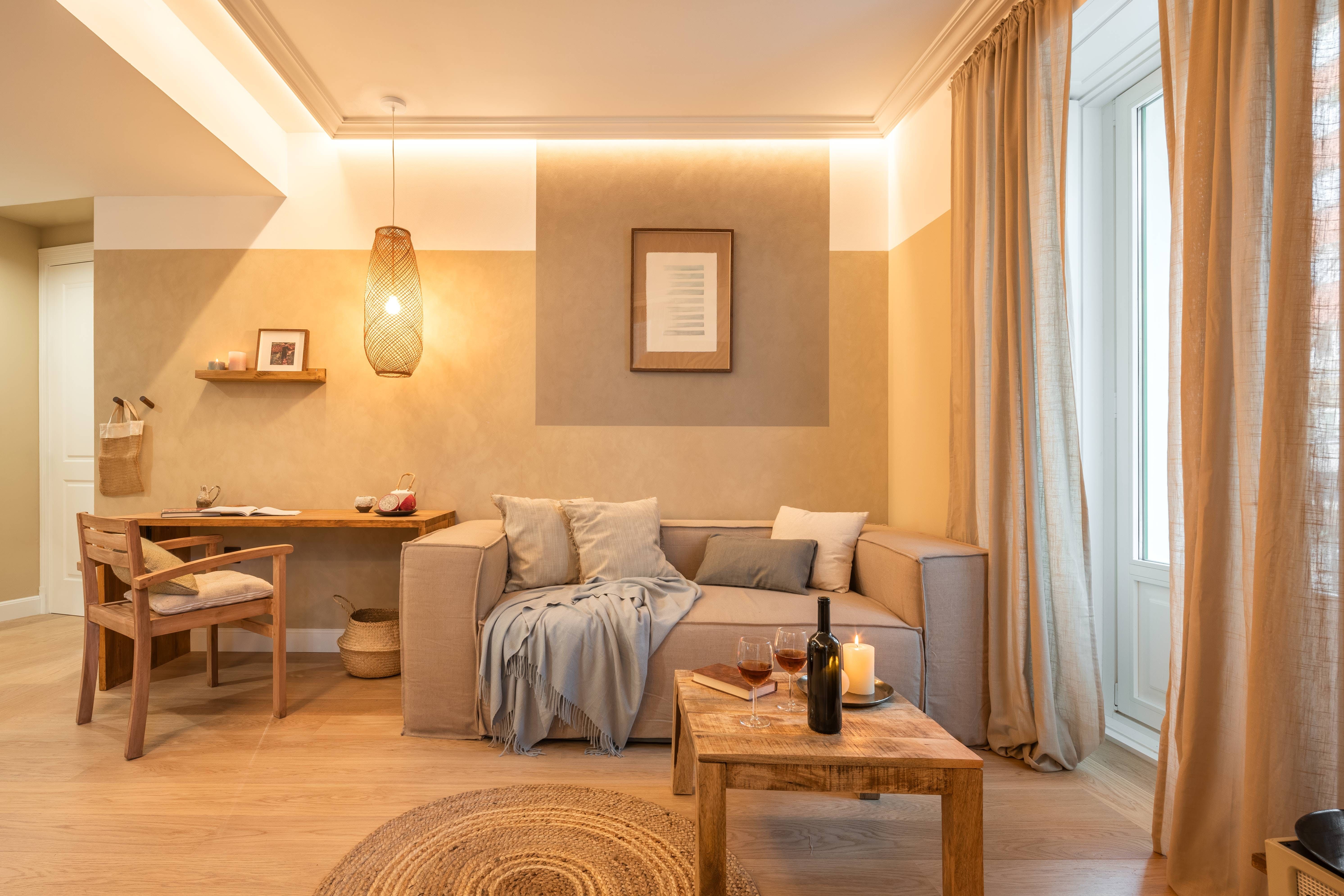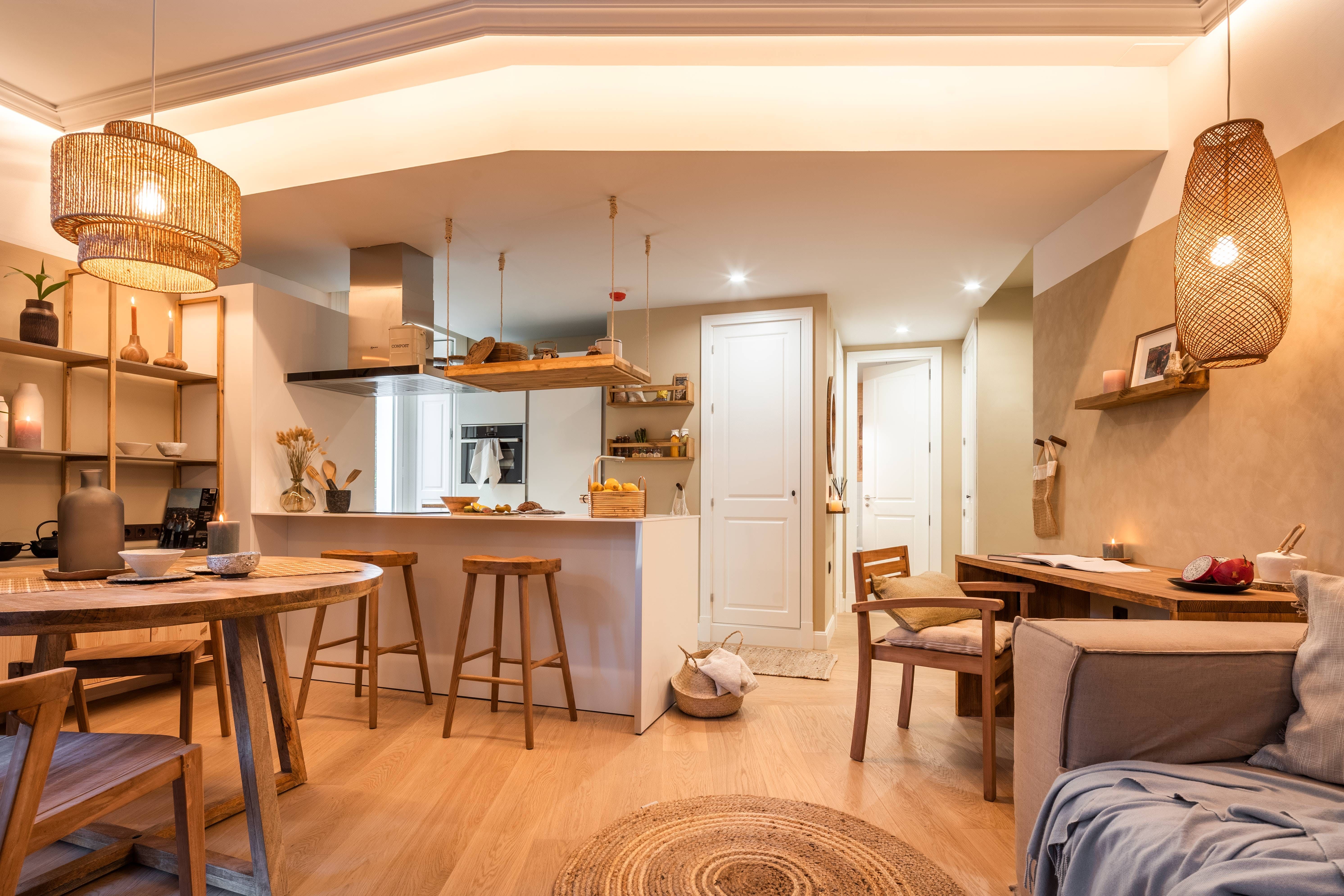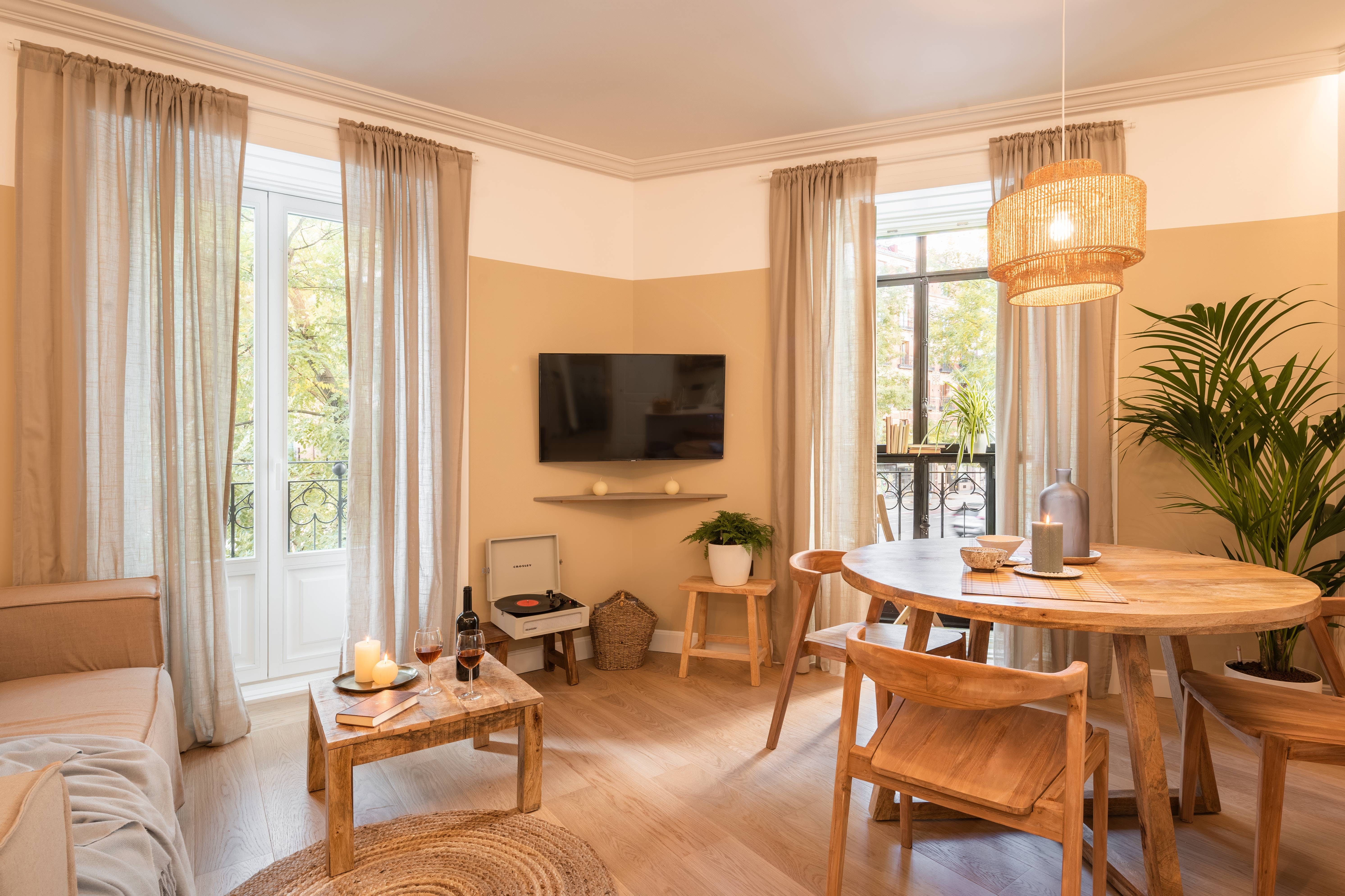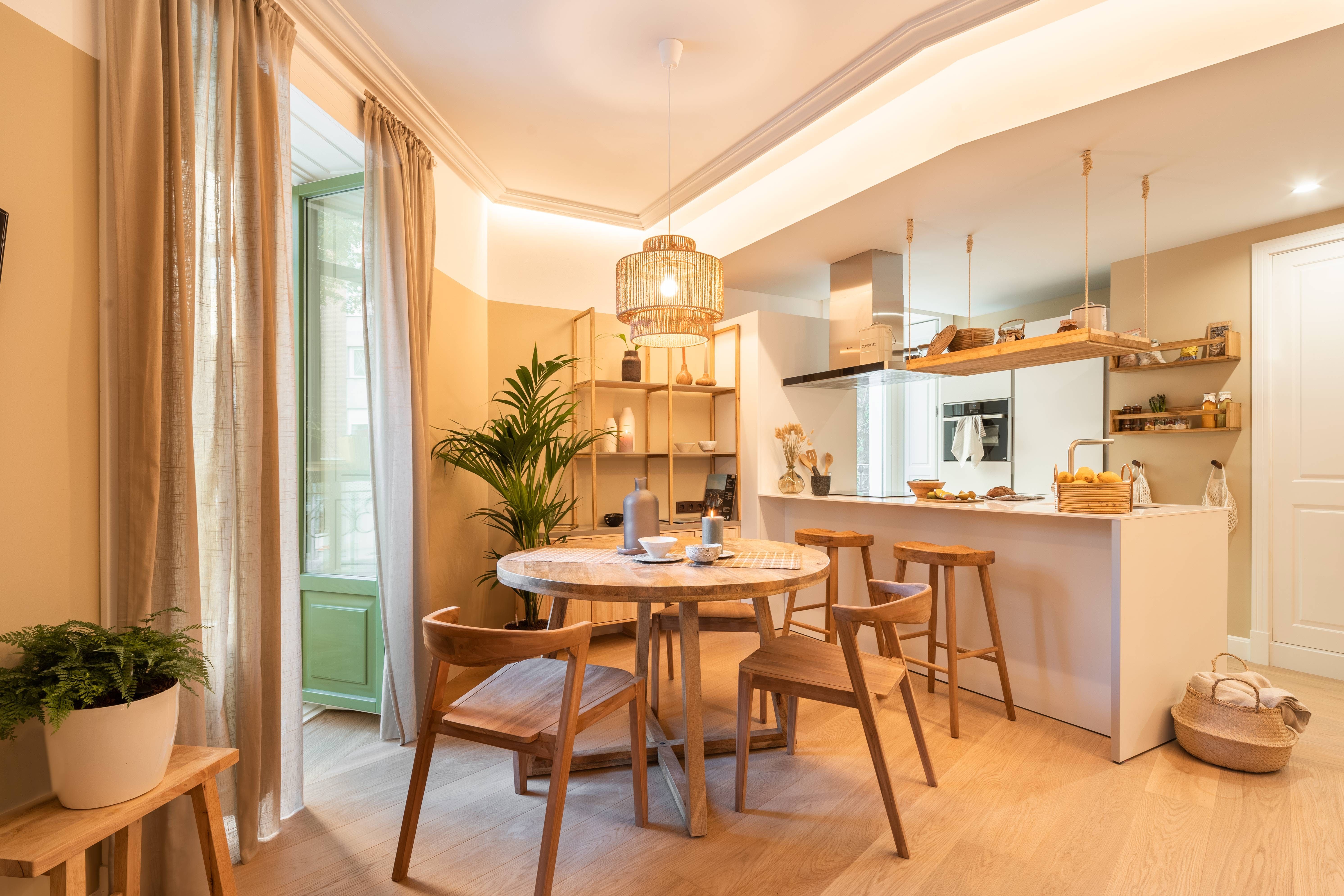 This home has not one or two but four balconies to enjoy. The French windows let light flood in, allowing the array of plants, including verdant palms, to thrive, creating a homely atmosphere. There's a distinct nod to the orient here, with the custom-made bamboo panelling on the bedroom ceiling – we love the attention to detail at this place. There's a desk too for working from home and a communal gym in the building if you want to keep up your fitness regime while away. Sit at the kitchen island with some churros and a hot chocolate for breakfast before heading out to explore Madrid.