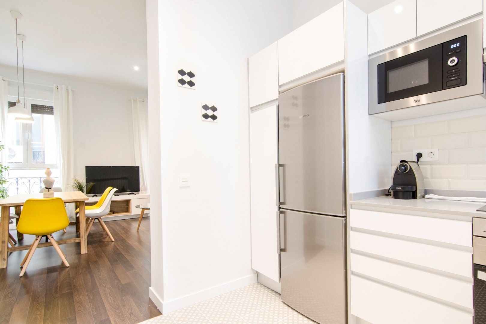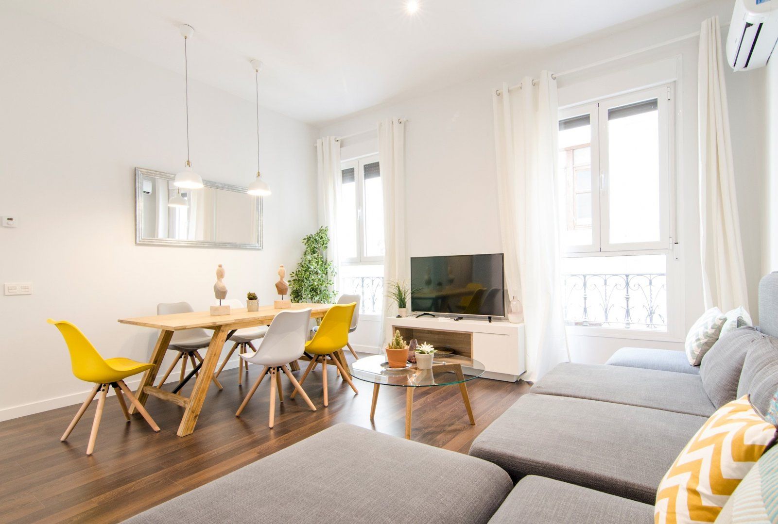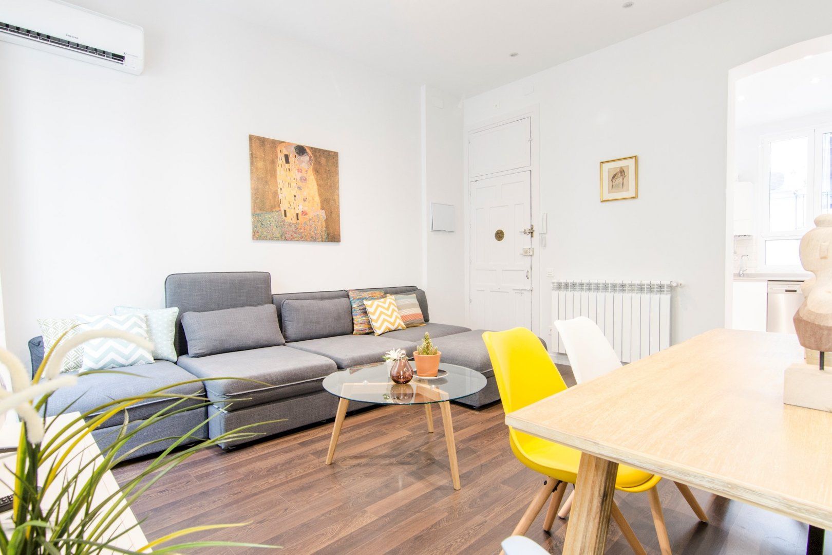 If your idea of the dream city break is trying to visit as many of the destination's museums and galleries as possible, you will cherish this apartment in the middle of Madrid. From your front door, it's possible to walk to a staggering number of cultural institutions in under twenty minutes, including the 'Golden Triangle' — the Prado, Reina Sofía and Thyssen-Bornemisza art museums. Of course, standing on your feet and looking at priceless antiquities all day is tiring business, so we're sure you'll be equally grateful to return home to this home. The newly-renovated interior is bright and airy, thanks to two large windows in the living space, and playfulness abounds, whether it's those yellow chairs that instantly draw the eye, the statement lighting in the bedrooms or the artistic touches peppered about the place. Whether you're sprawling out on the corner sofa or getting some shut-eye on the comfy bed, you'll find this address will help you get the vital R&R you need ahead of another day exploring the riches of the Spanish capital.