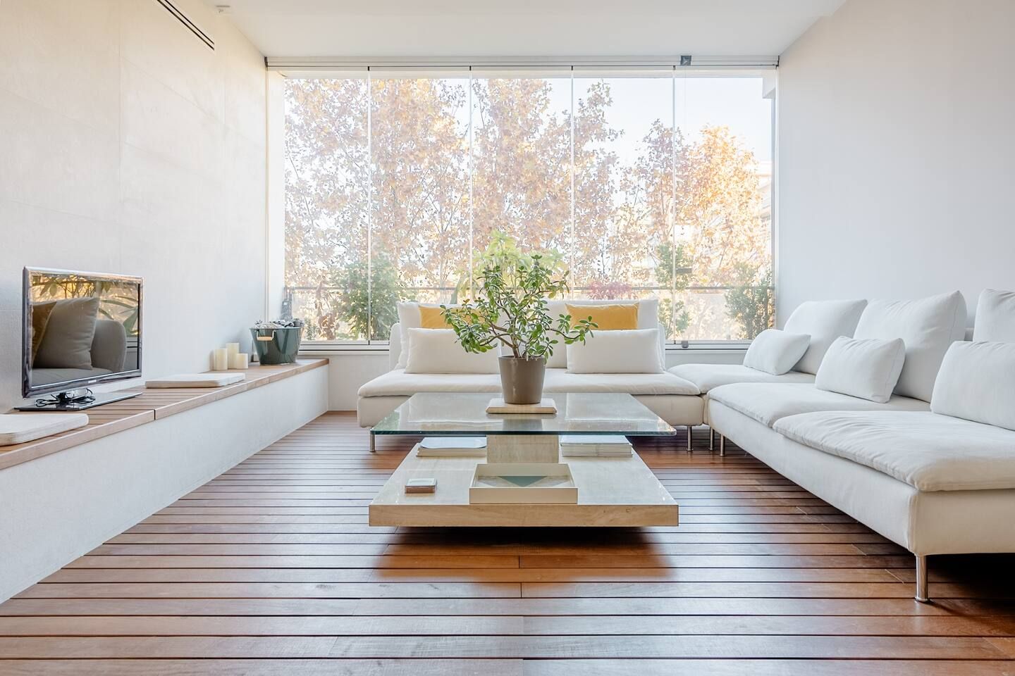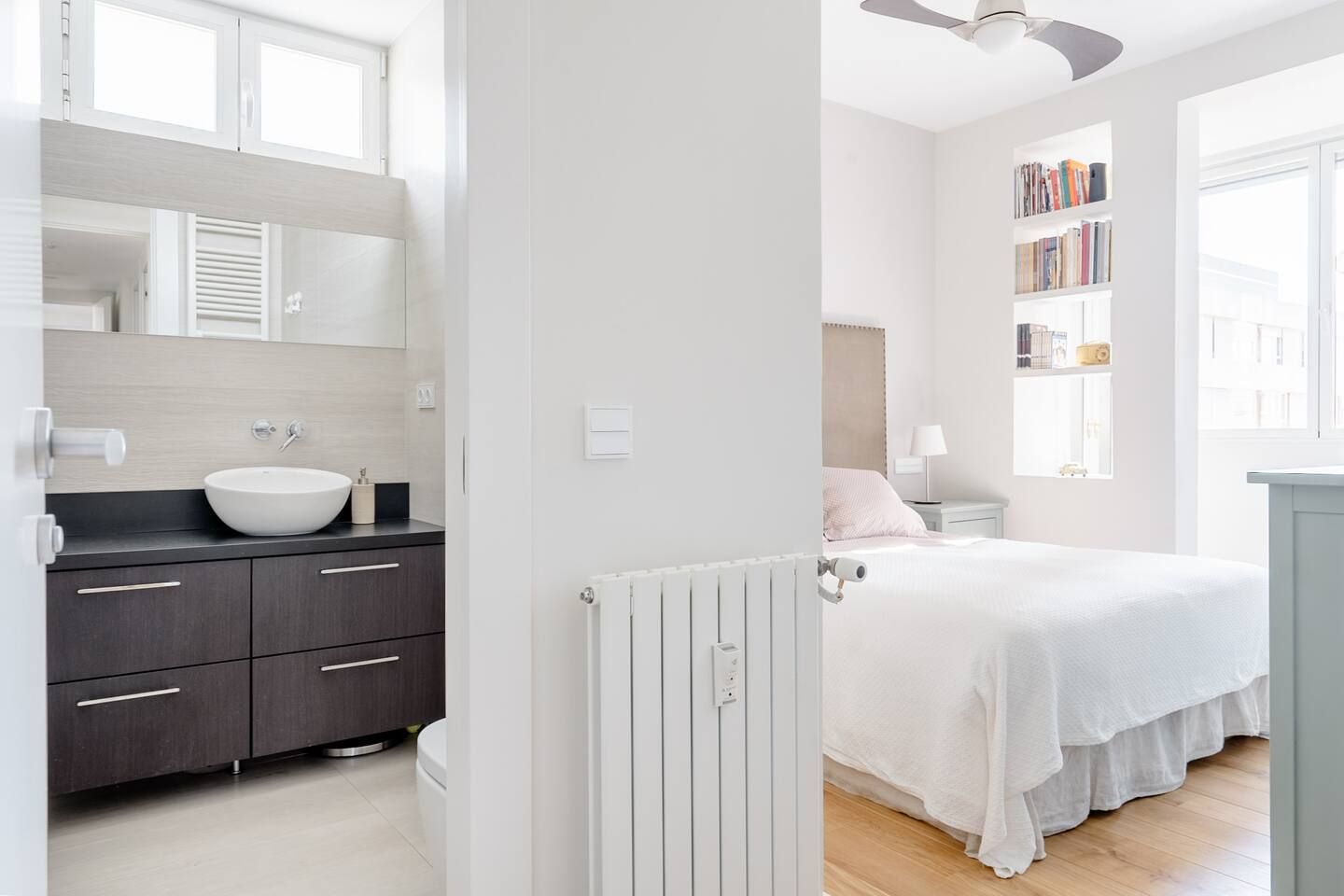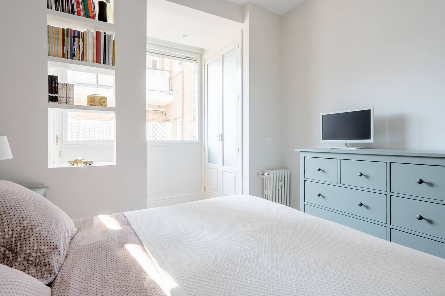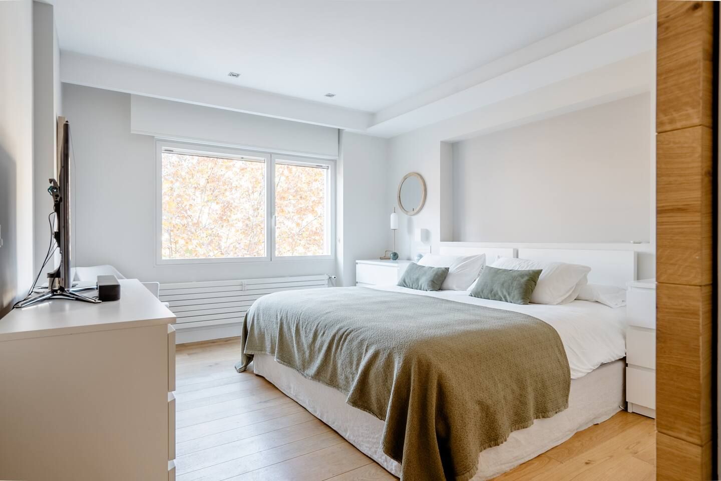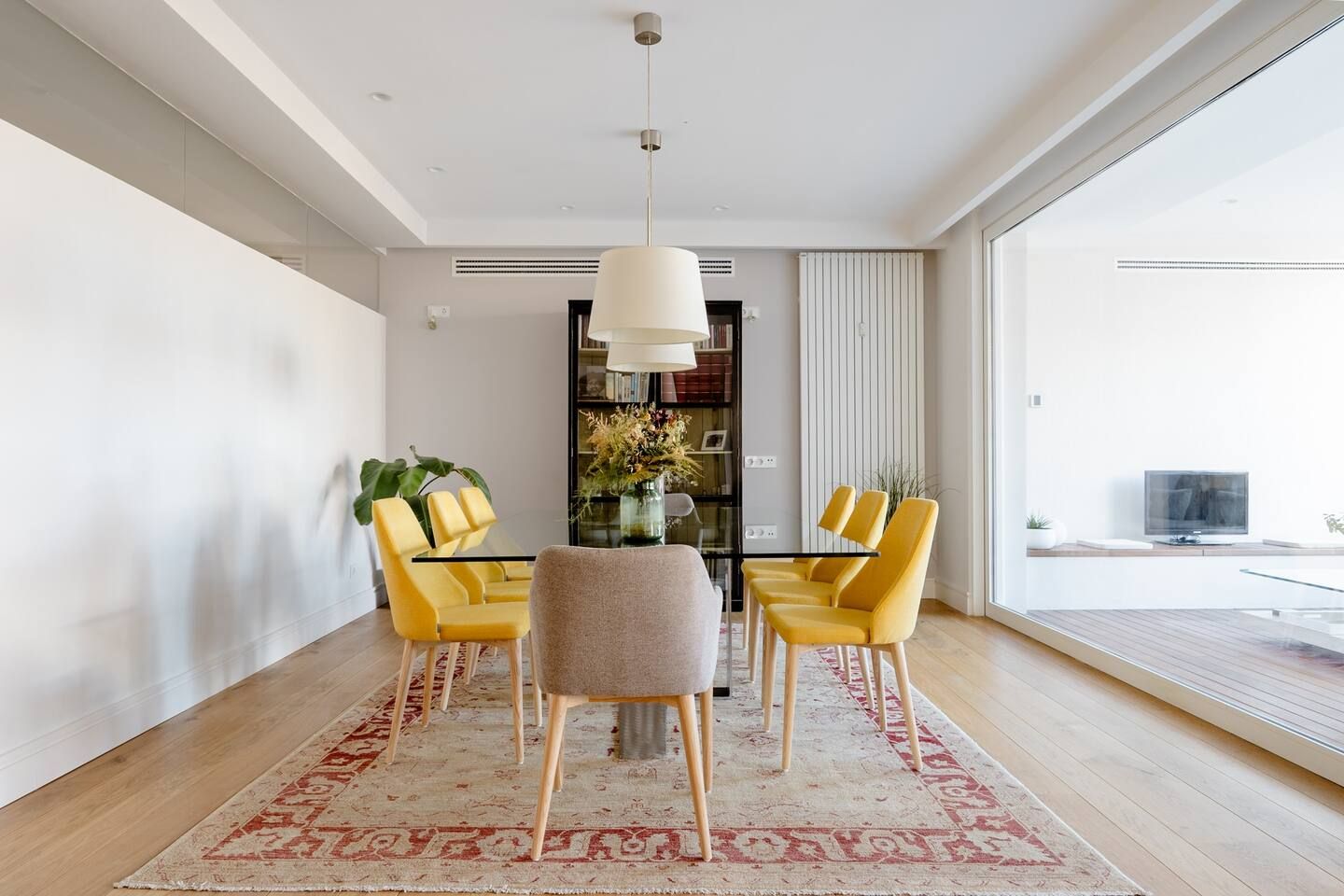 In the trendy Chamartín district, this light-filled apartment is modern in every aspect. A covered terrace acts as a second living area – there's even an outdoor TV – while the kitchen has all you need to whip up tapas at home. Travelling with little ones? The main bedroom includes a cot and changing table – not to mention an en-suite Jacuzzi bath. Football fans will love being a short walk from Santiago Bernabéu stadium – home of Real Madrid FC – while those in town to sightsee can take advantage of nearby Cuzco Station.