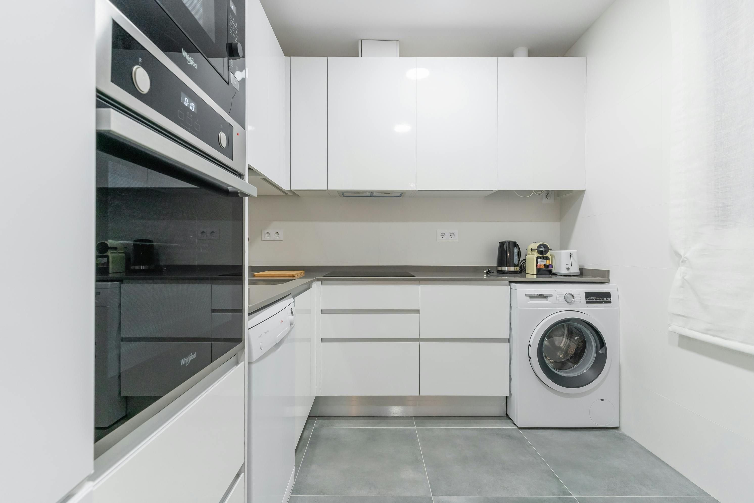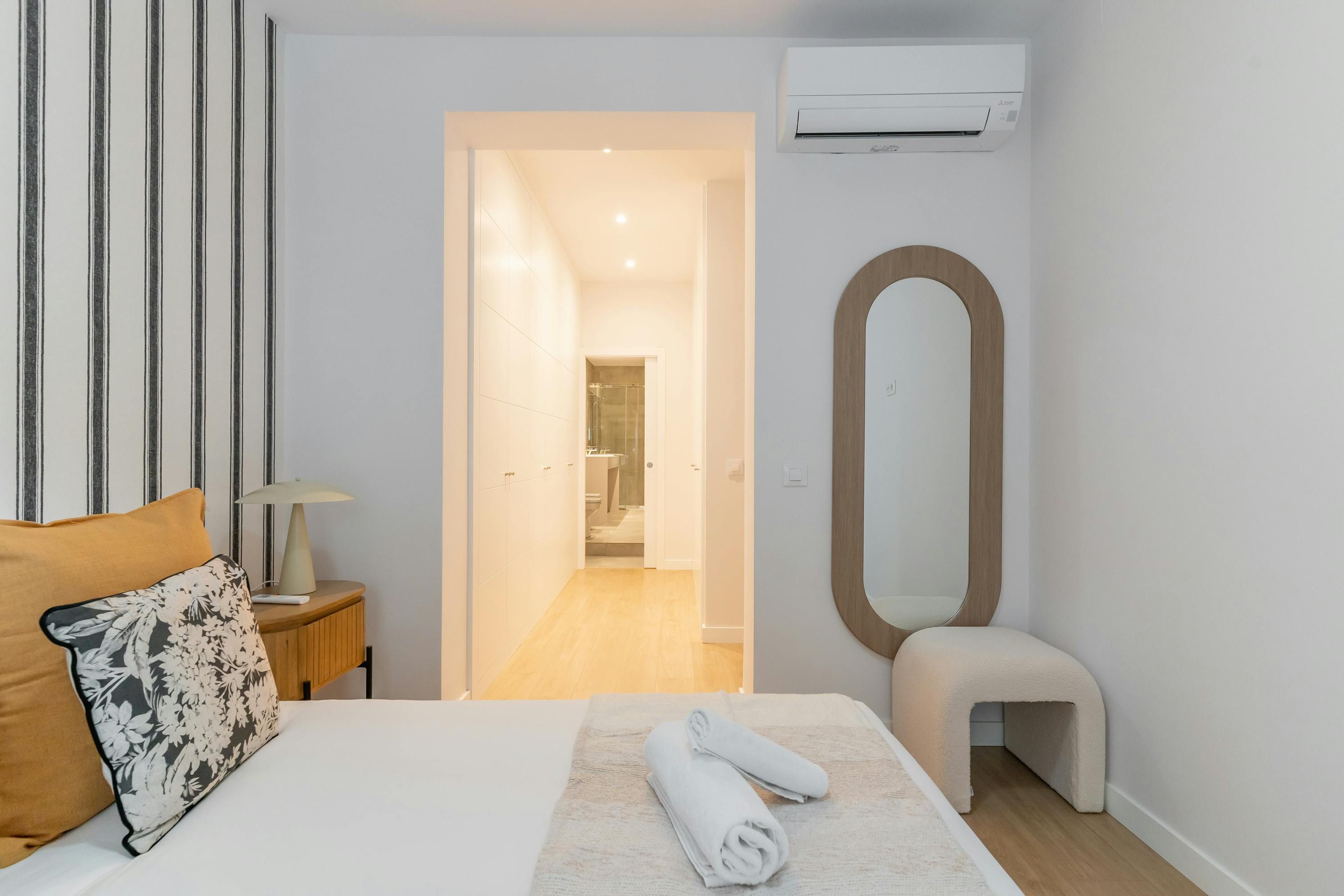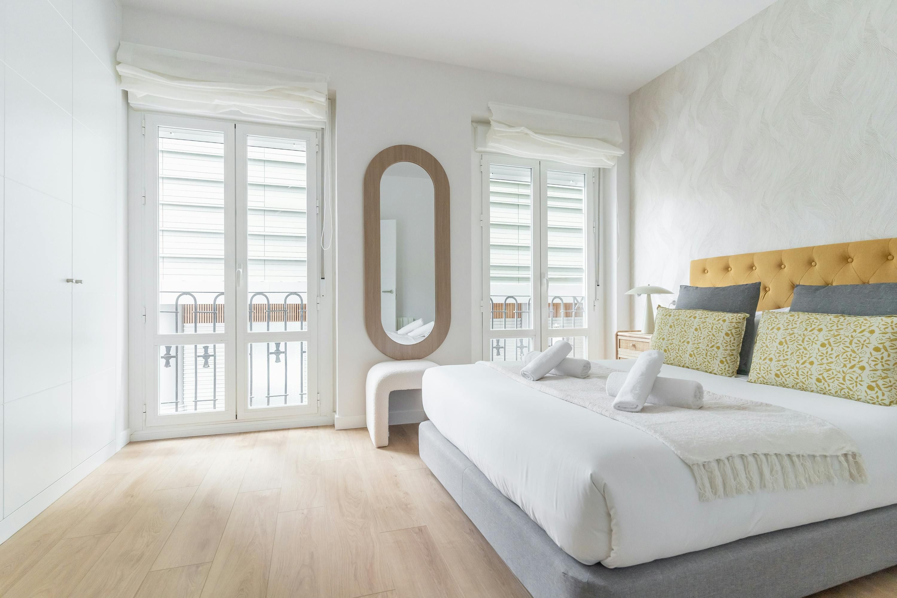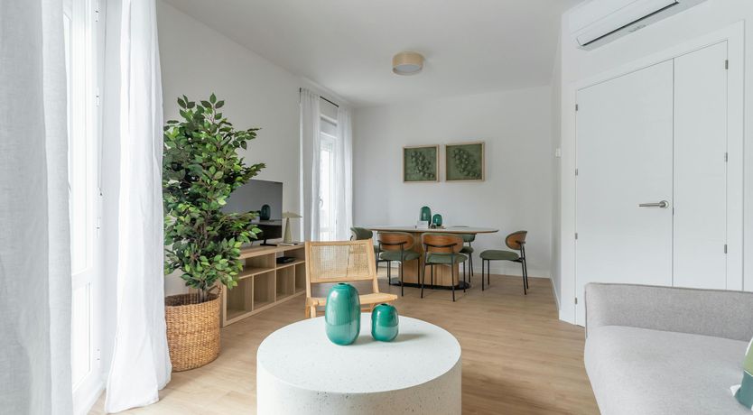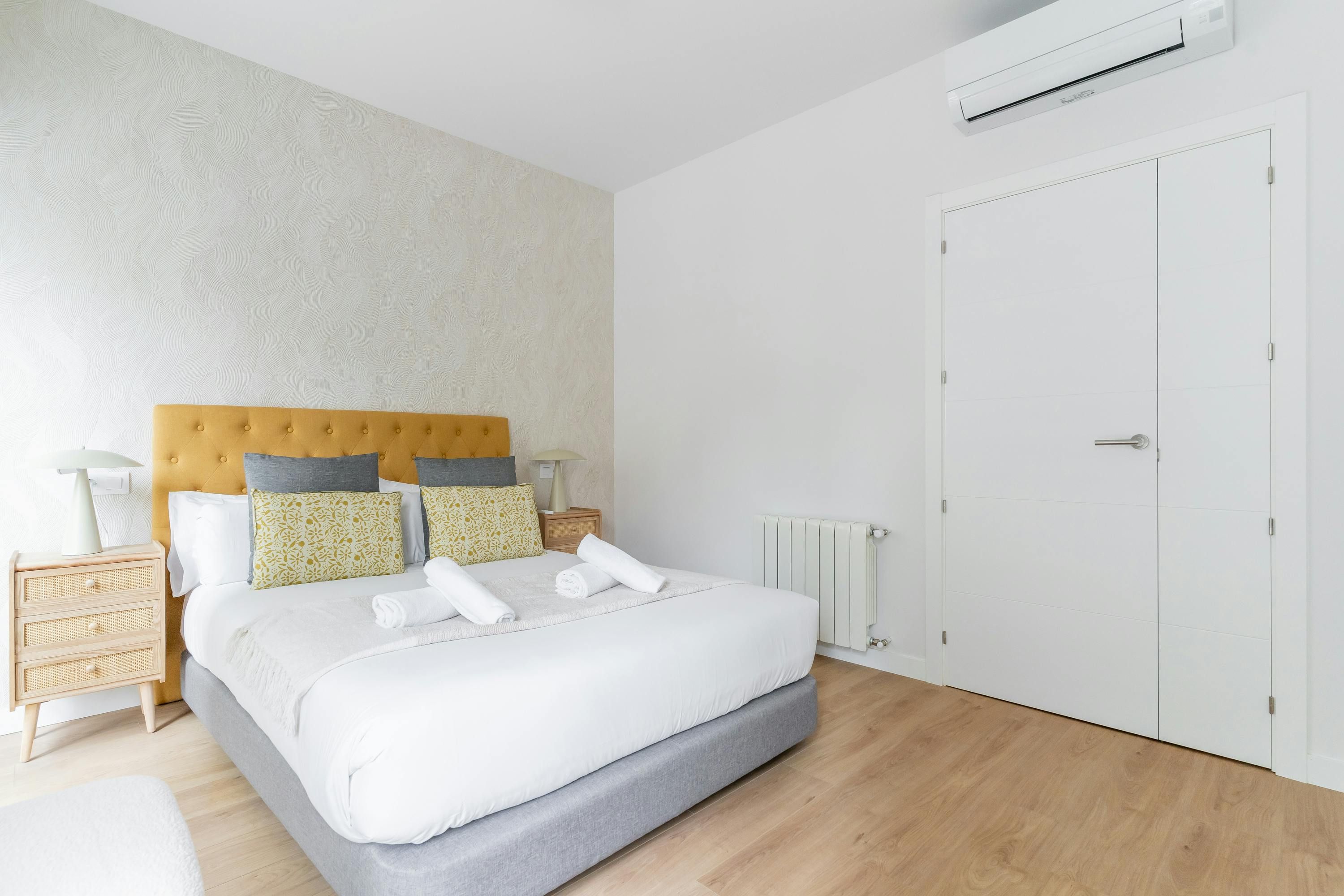 Just a short walk from Retiro Park sits this apartment. With an address within the sought-after Salamanca district, you’ll find luxury boutiques and high-end dining establishments nearby. The home itself has a good-sized living room and well-appointed kitchen for when you want to do some home cooking. We love the main bedroom with its French doors onto the Juliet balcony too. This is a great place to stay for friends or families looking for an exclusive and well-connected locale in Madrid.