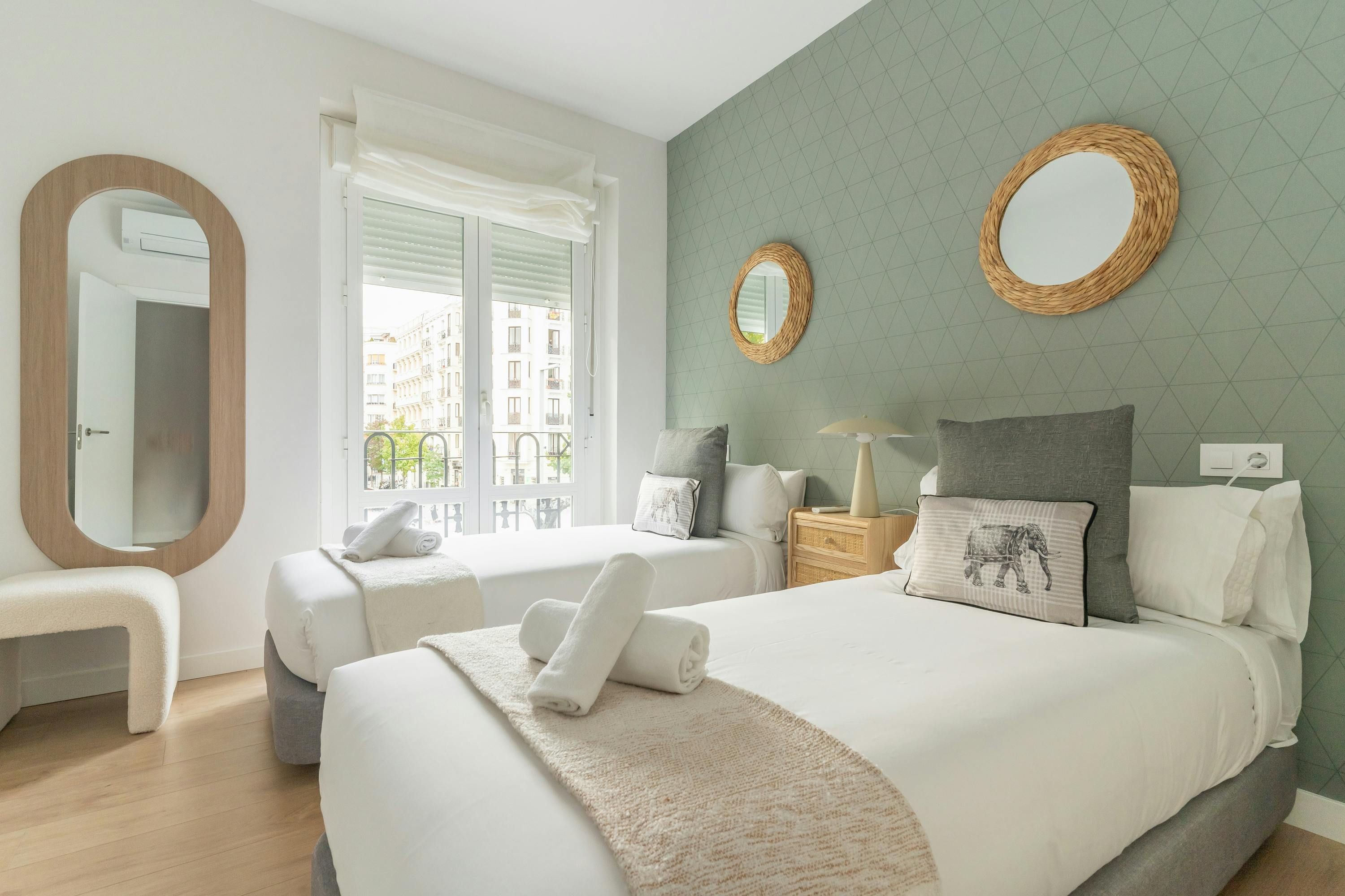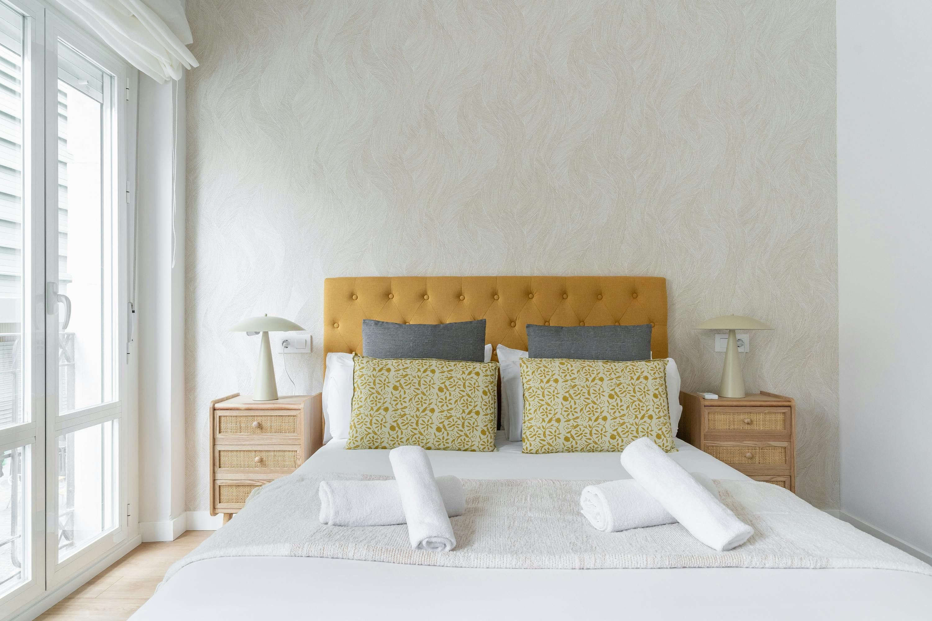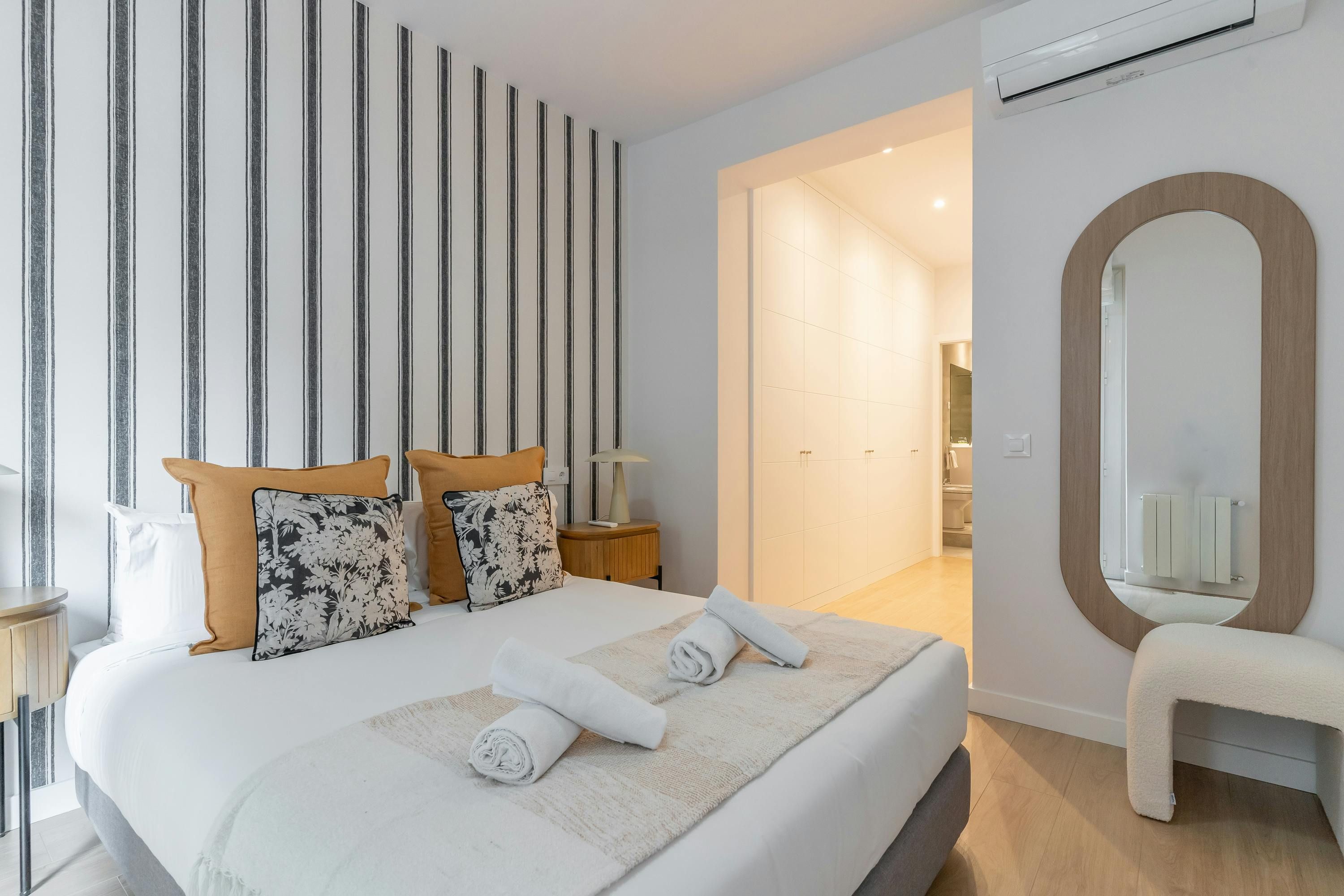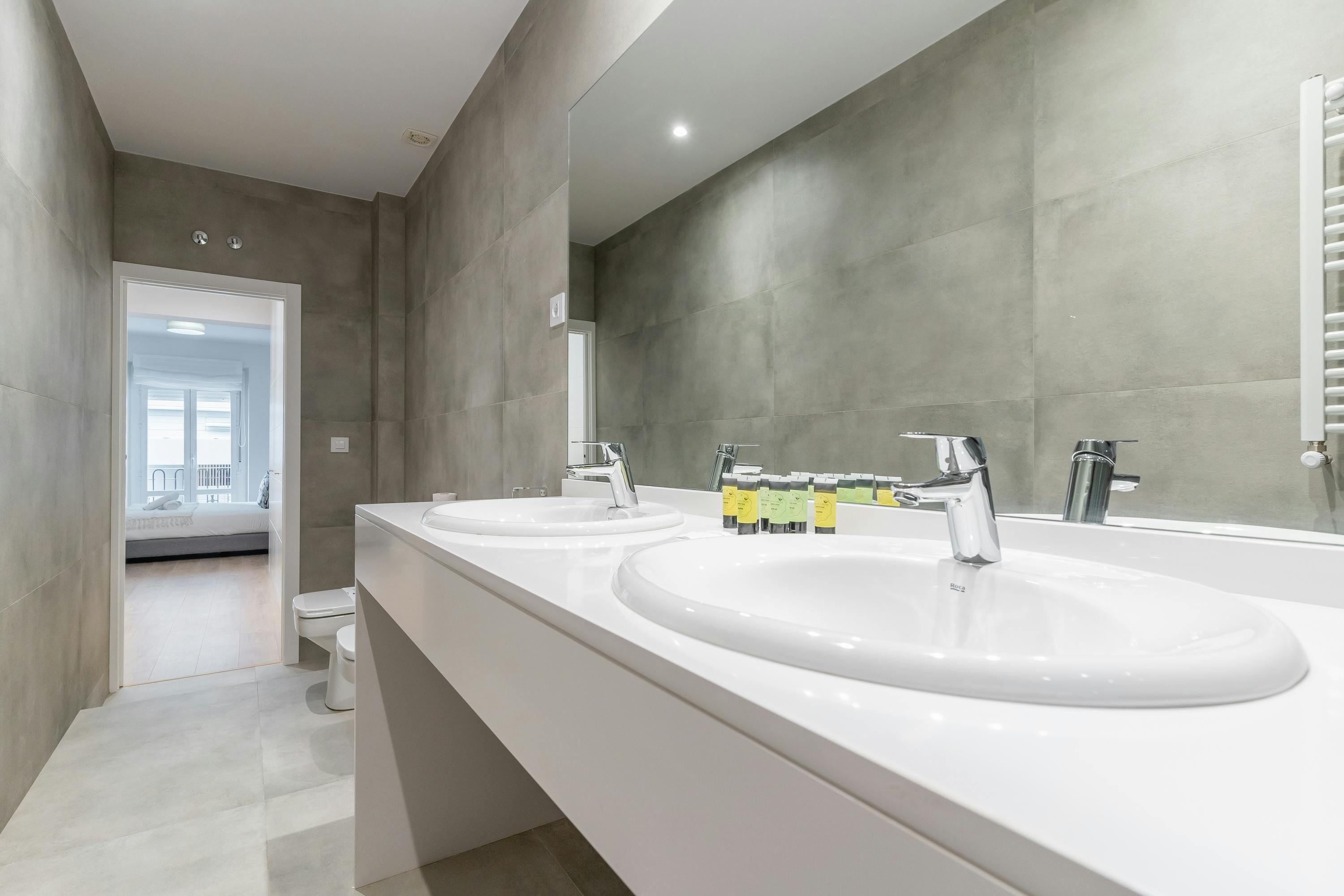 Just a short walk from Retiro Park sits this apartment. With an address within the sought-after Salamanca district, you’ll find luxury boutiques and high-end dining establishments nearby. The home itself has a good-sized living room and well-appointed kitchen for when you want to do some home cooking. We love the main bedroom with its French doors onto the Juliet balcony too. This is a great place to stay for friends or families looking for an exclusive and well-connected locale in Madrid.