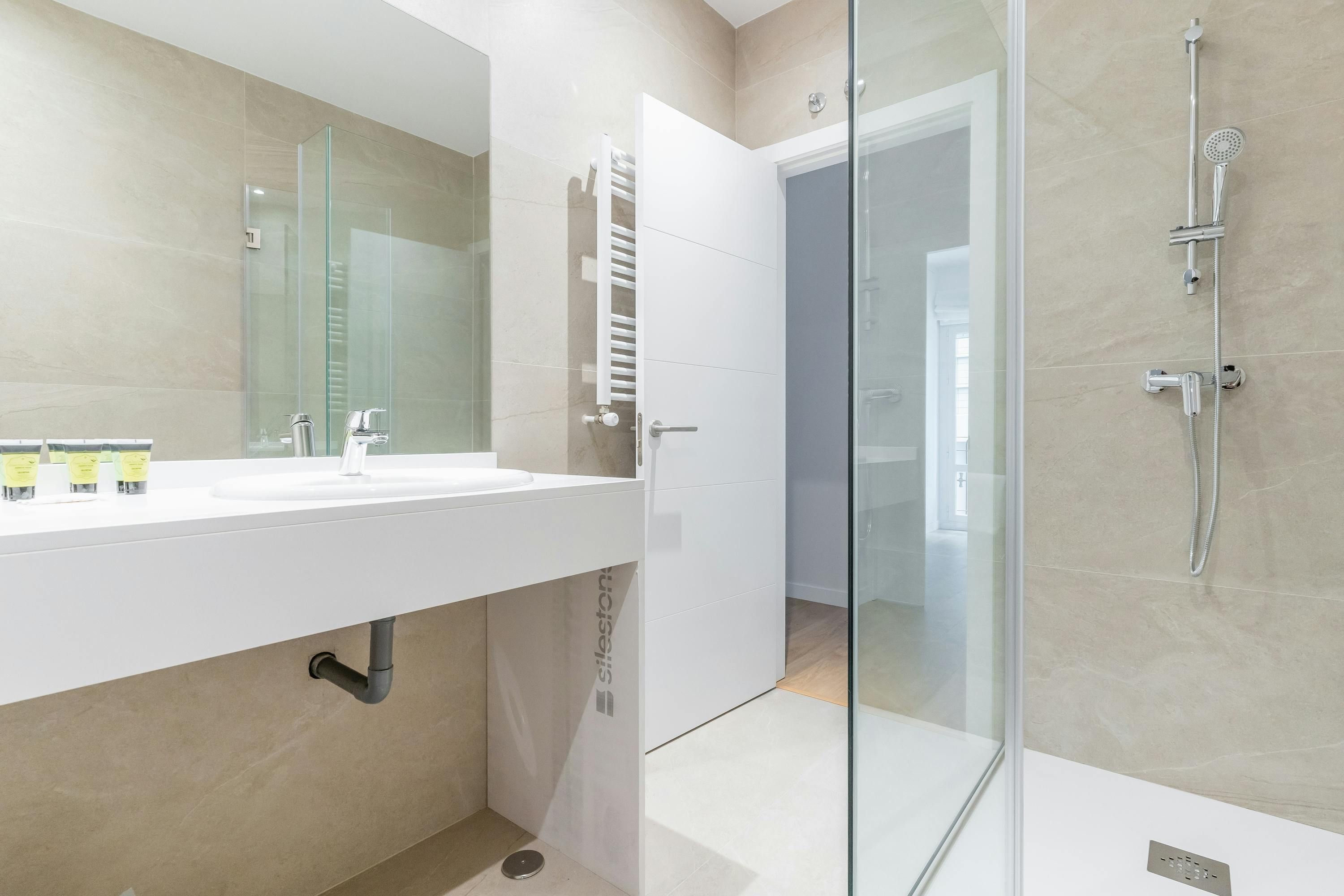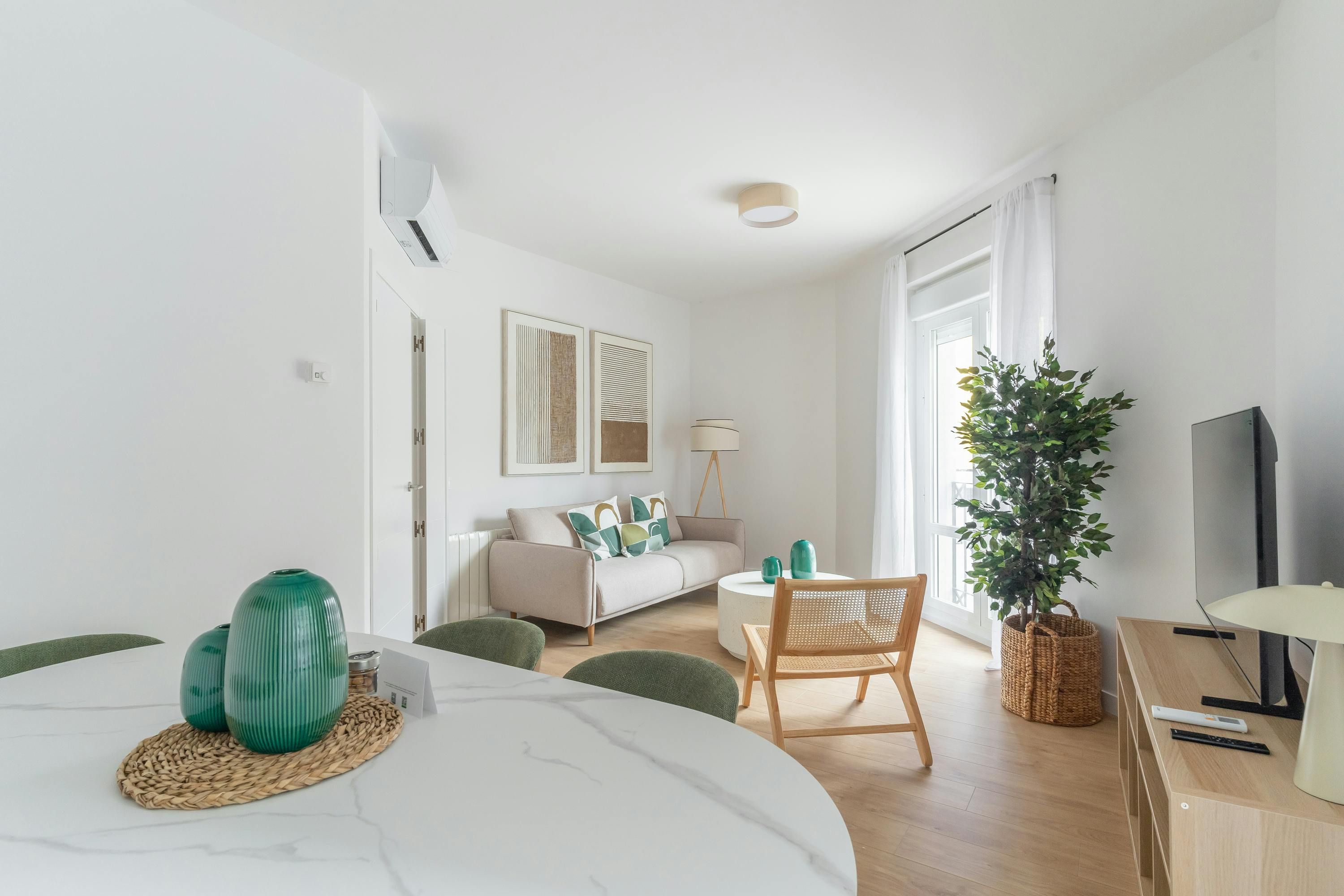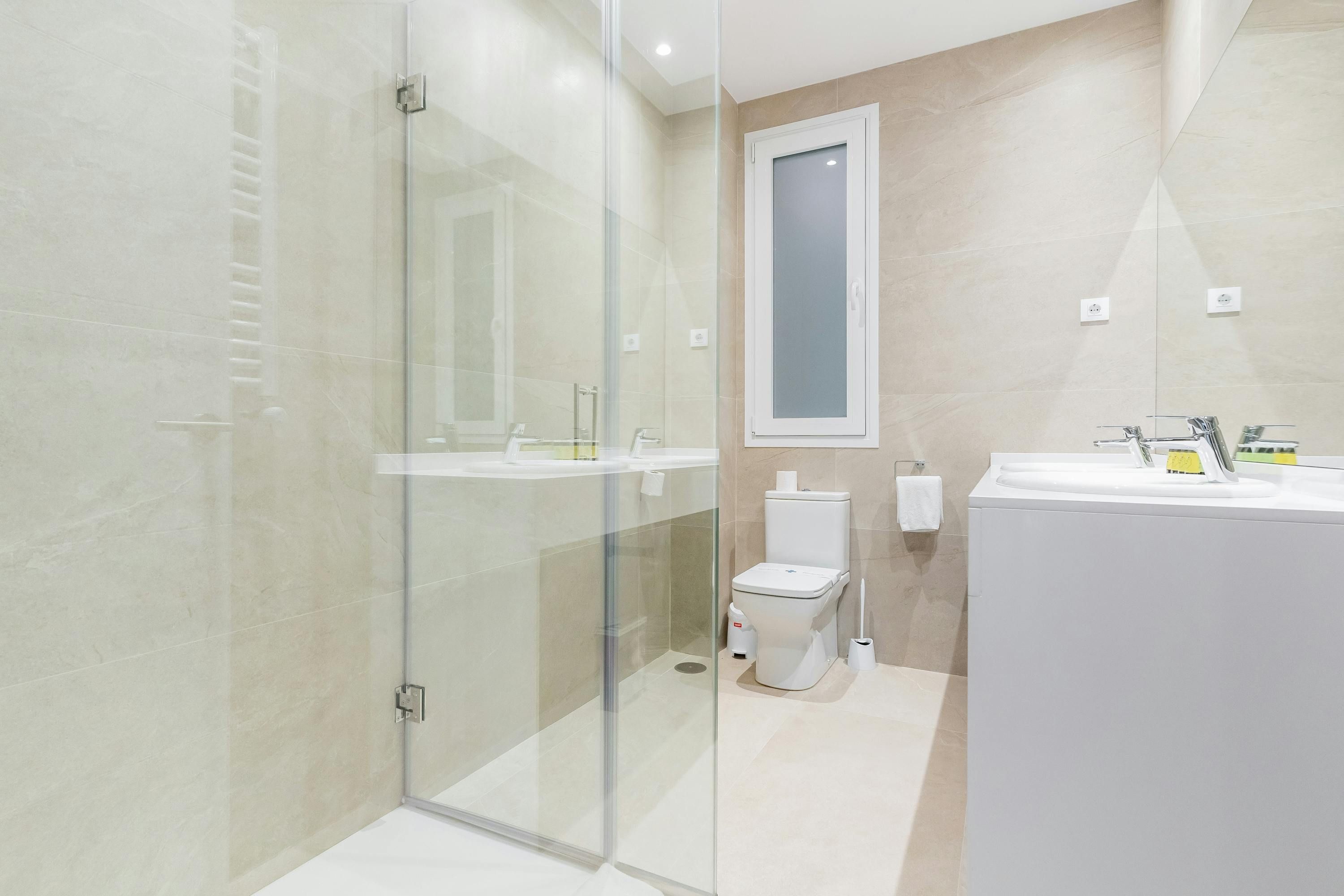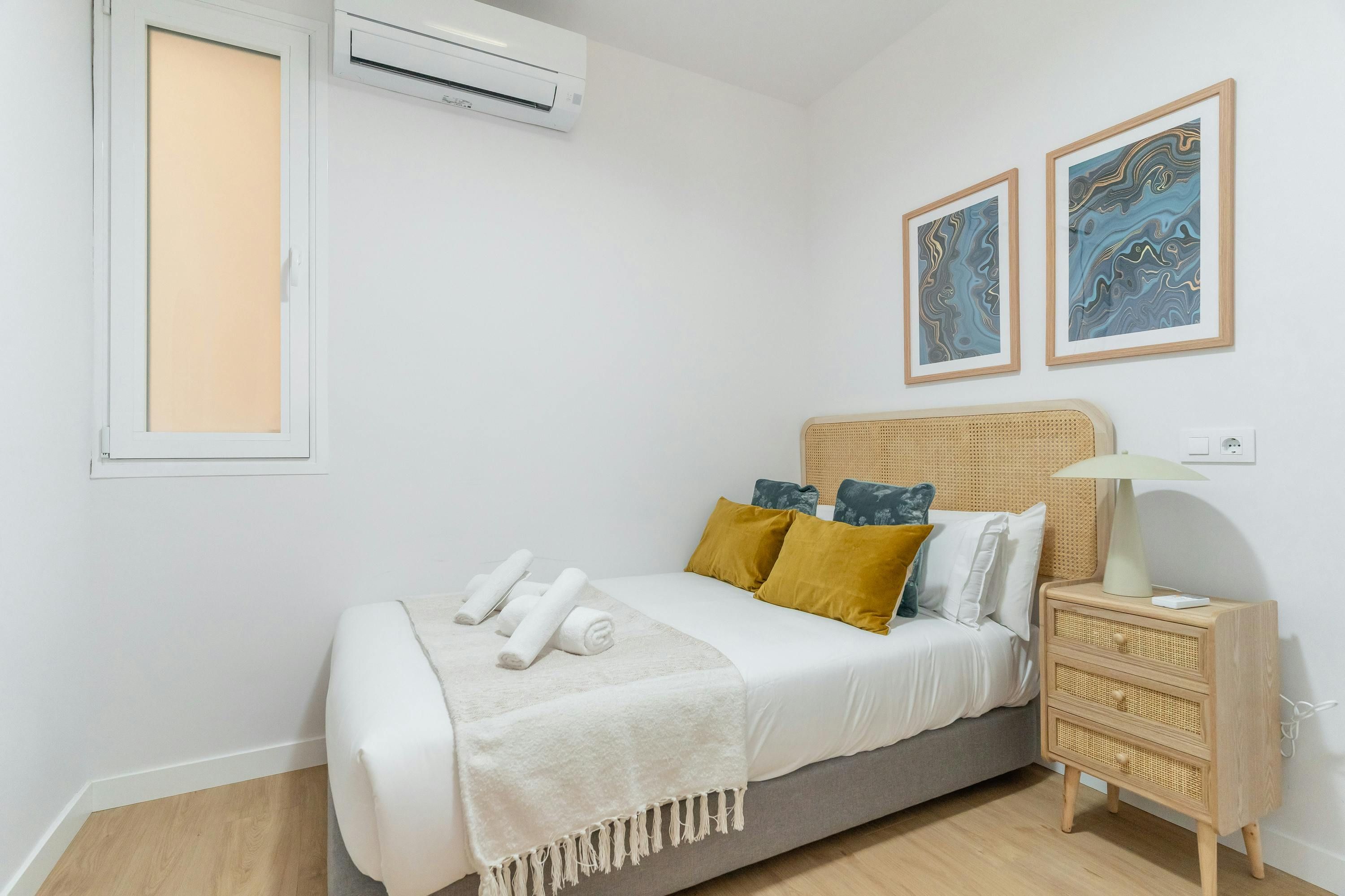 Just a short walk from Retiro Park sits this apartment. With an address within the sought-after Salamanca district, you’ll find luxury boutiques and high-end dining establishments nearby. The home itself has a good-sized living room and well-appointed kitchen for when you want to do some home cooking. We love the main bedroom with its French doors onto the Juliet balcony too. This is a great place to stay for friends or families looking for an exclusive and well-connected locale in Madrid.