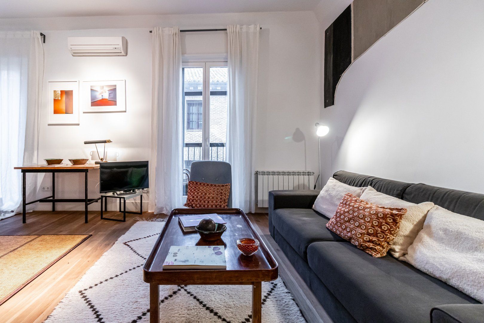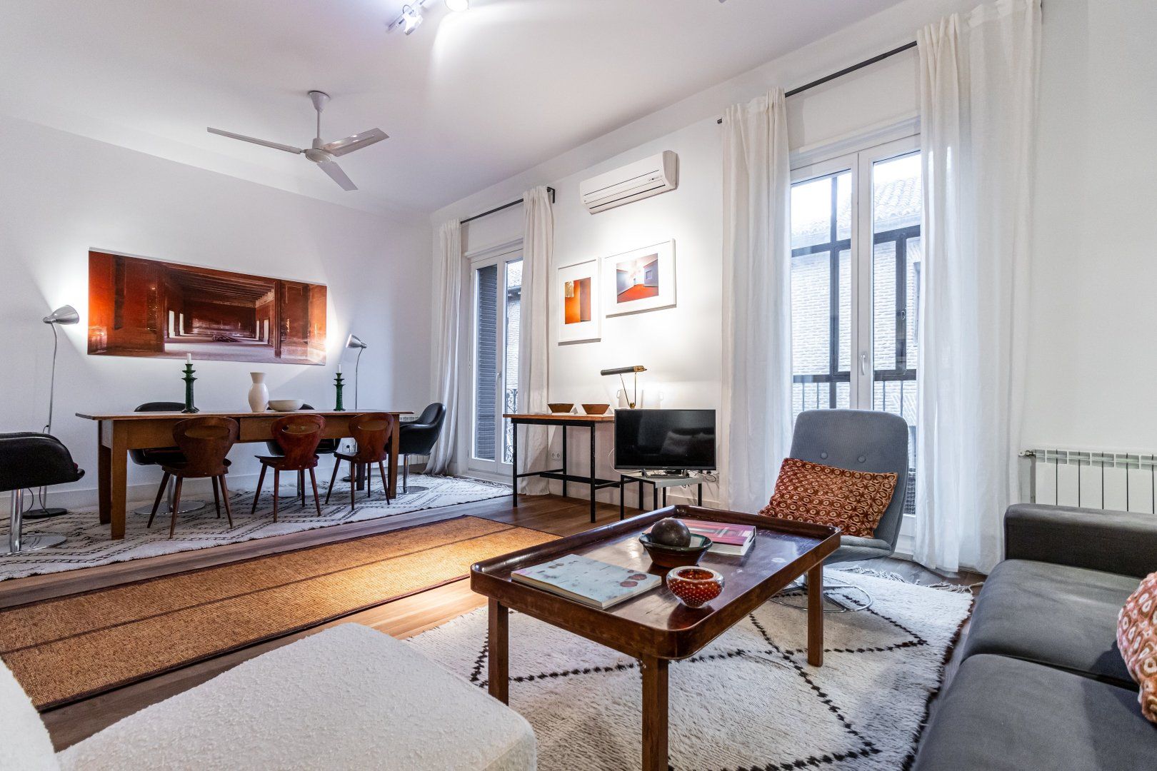 A comfortable and functional home in the heart of Madrid, this apartment is quiet, inviting and convenient. There’s a winter garden balcony for relaxing with a cup of coffee in the mornings, a sitting room with a collection of books – fitting, considering your home is in the Literary Quarter – and a bright and spacious living area, our favourite place to recline with a glass of wine in the evenings.