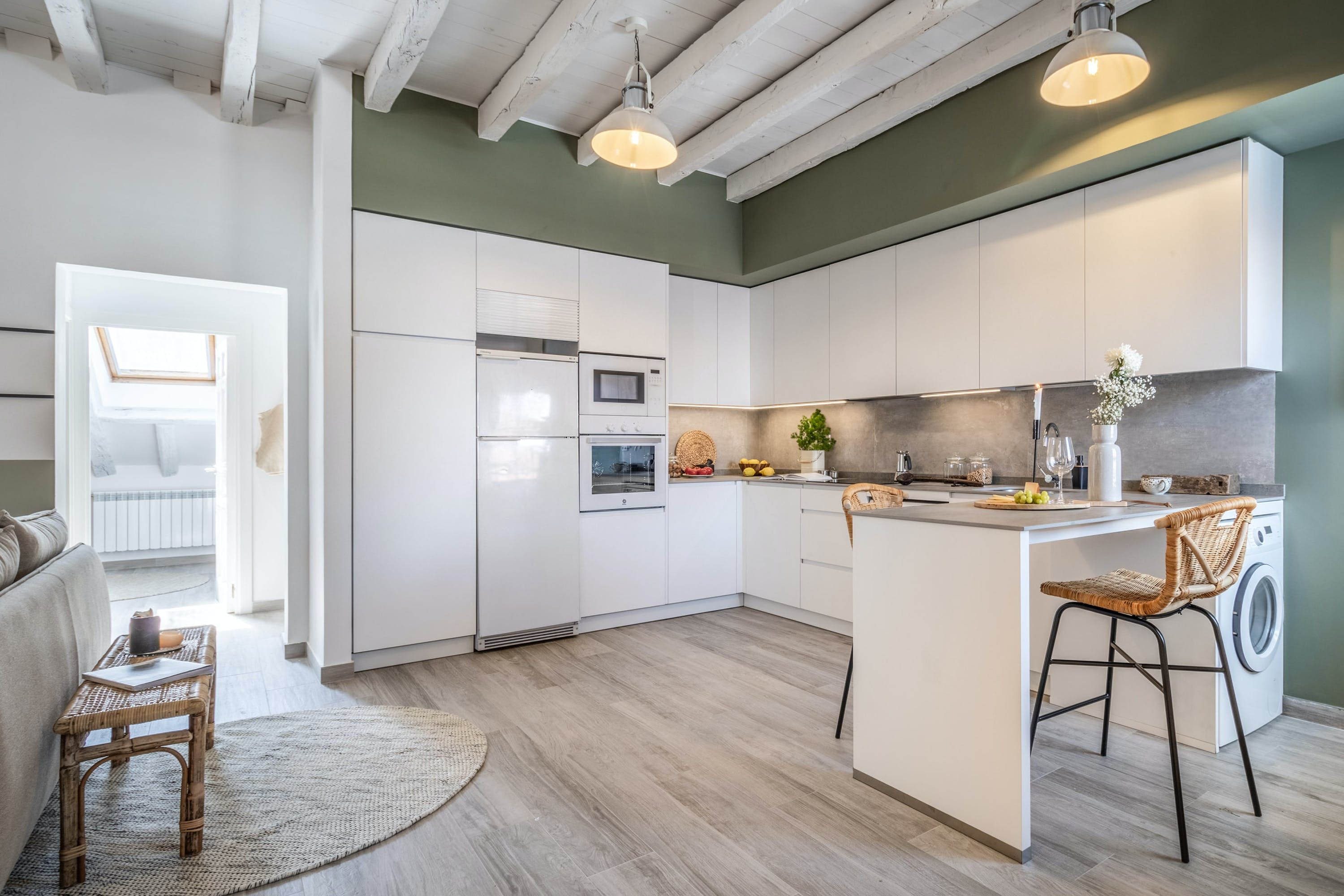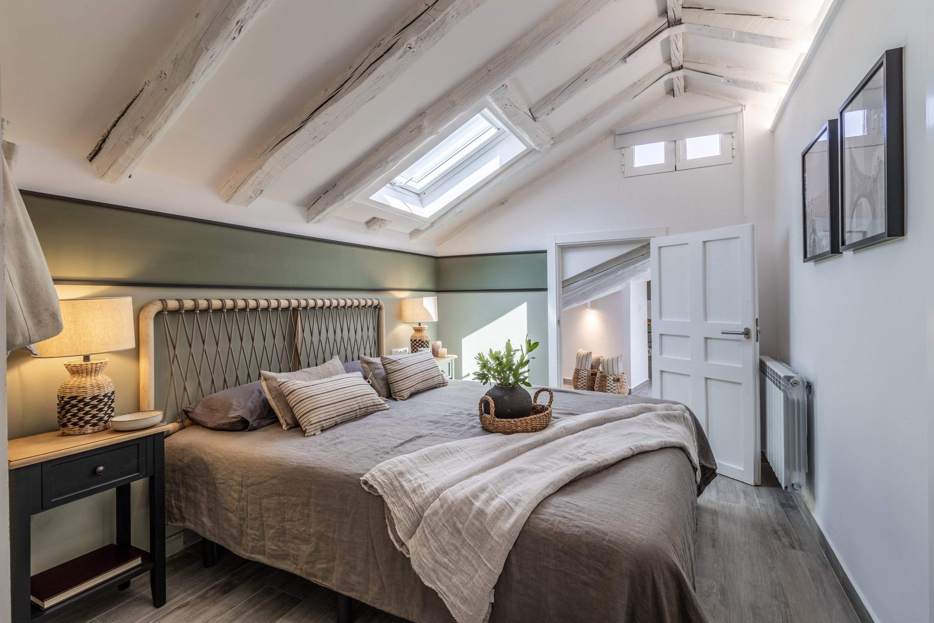With many of Madrid’s must-see attractions within easy reach, this home is an ideal base from which to explore the Spanish capital. And for those in the city on business, it holds an extra bonus – a dedicated office space, complete with a desk and lounge area. But, if this is a holiday in the true sense of the word, then we think you’ll find this area handy too. After all, where better to indulge in a good book, with a glass of wine in hand? Just mind your head on those sloping ceilings that make the space so cosy.