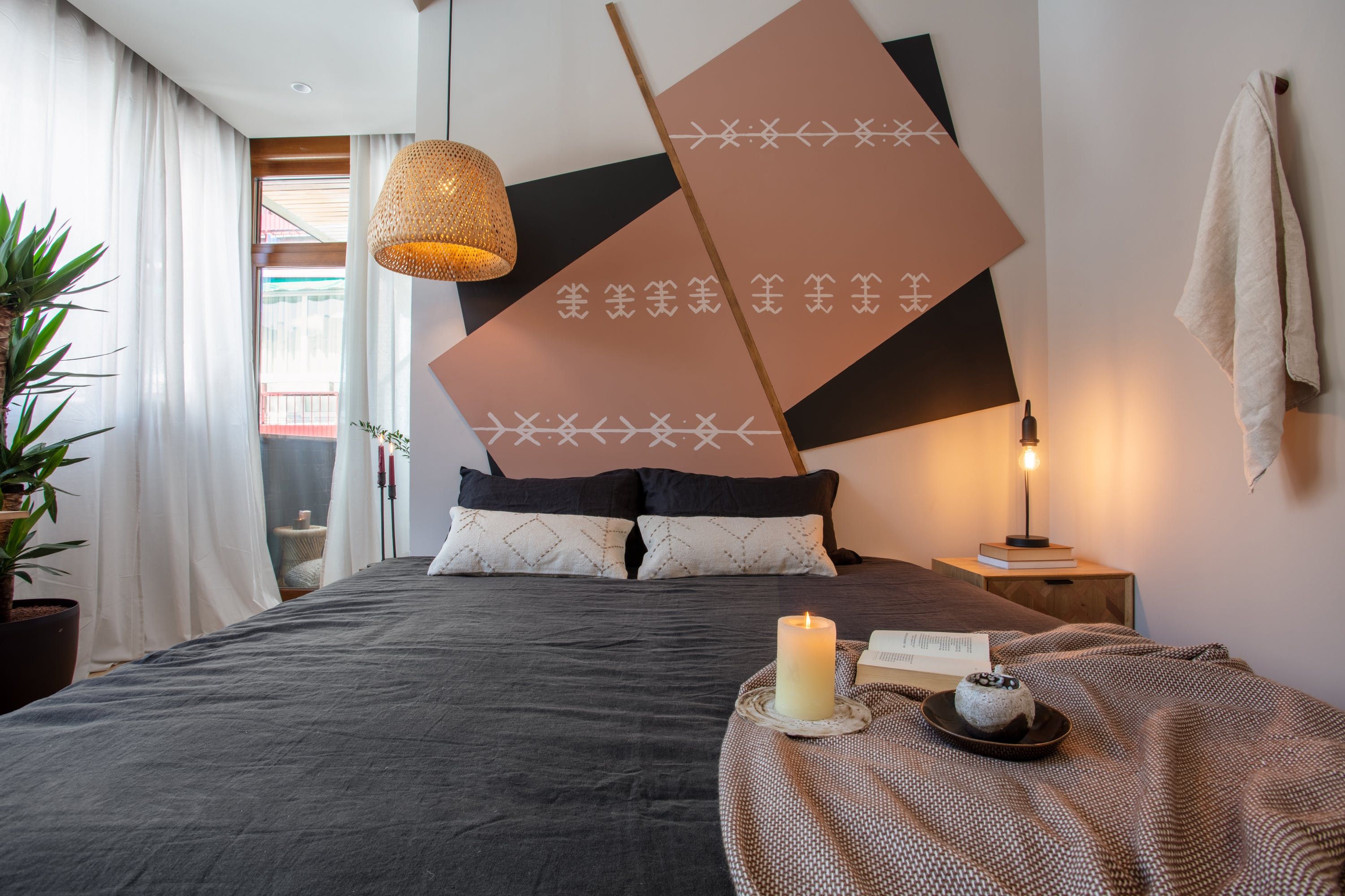 With a mesh of Aztec and African design elements, this beautiful home in the heart of Madrid's Azca district is stylish and modern without compromising on comfort. In fact, the cosiness of the cushy couch is increased by the throw and soft lighting. Imagine yourself here with your feet up as you listen to a record.