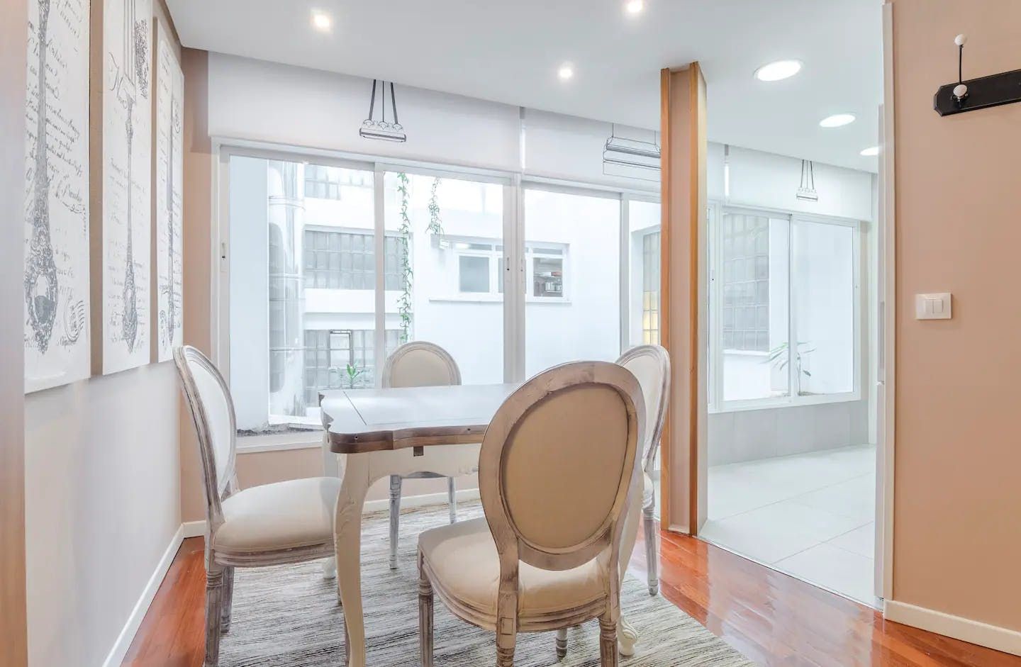 Ideal for a small family or group of friends, one of the bedrooms boasts a street view window, while the other has its own little interior patio terrace – a peaceful spot to wake up to over your morning coffee.