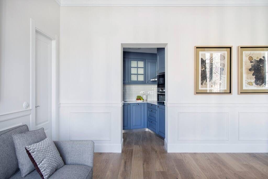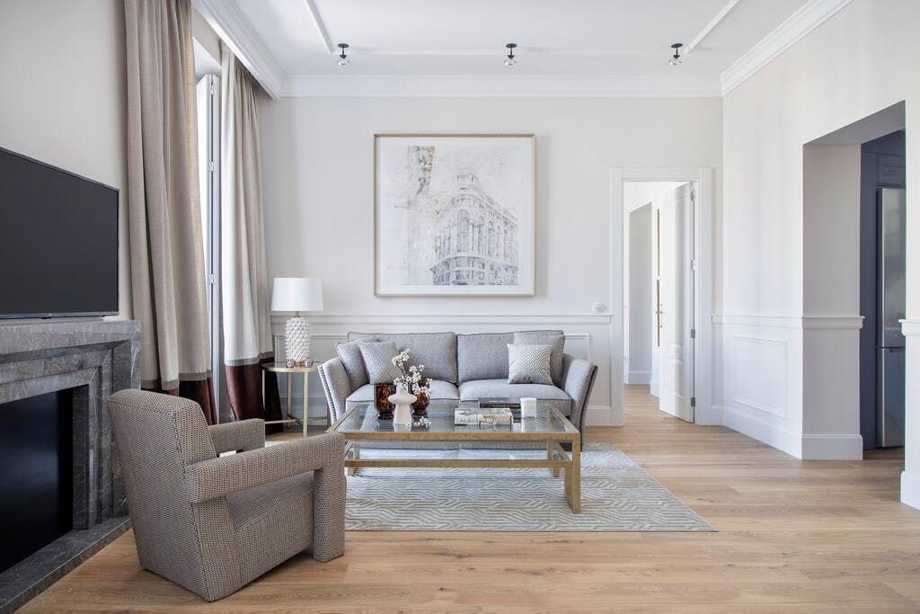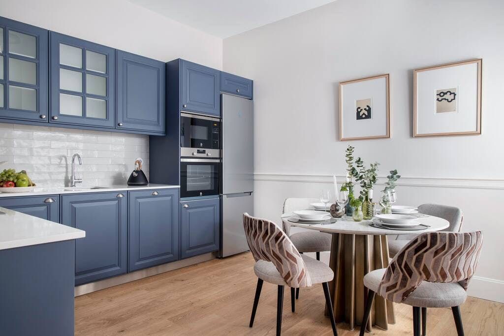 Inside your elegant apartment, you’ll be greeted by a light-filled living and dining area, with beautiful furnishings and a welcoming ambience. We love the high ceilings and pale colour palette, creating a sense of instant serenity.