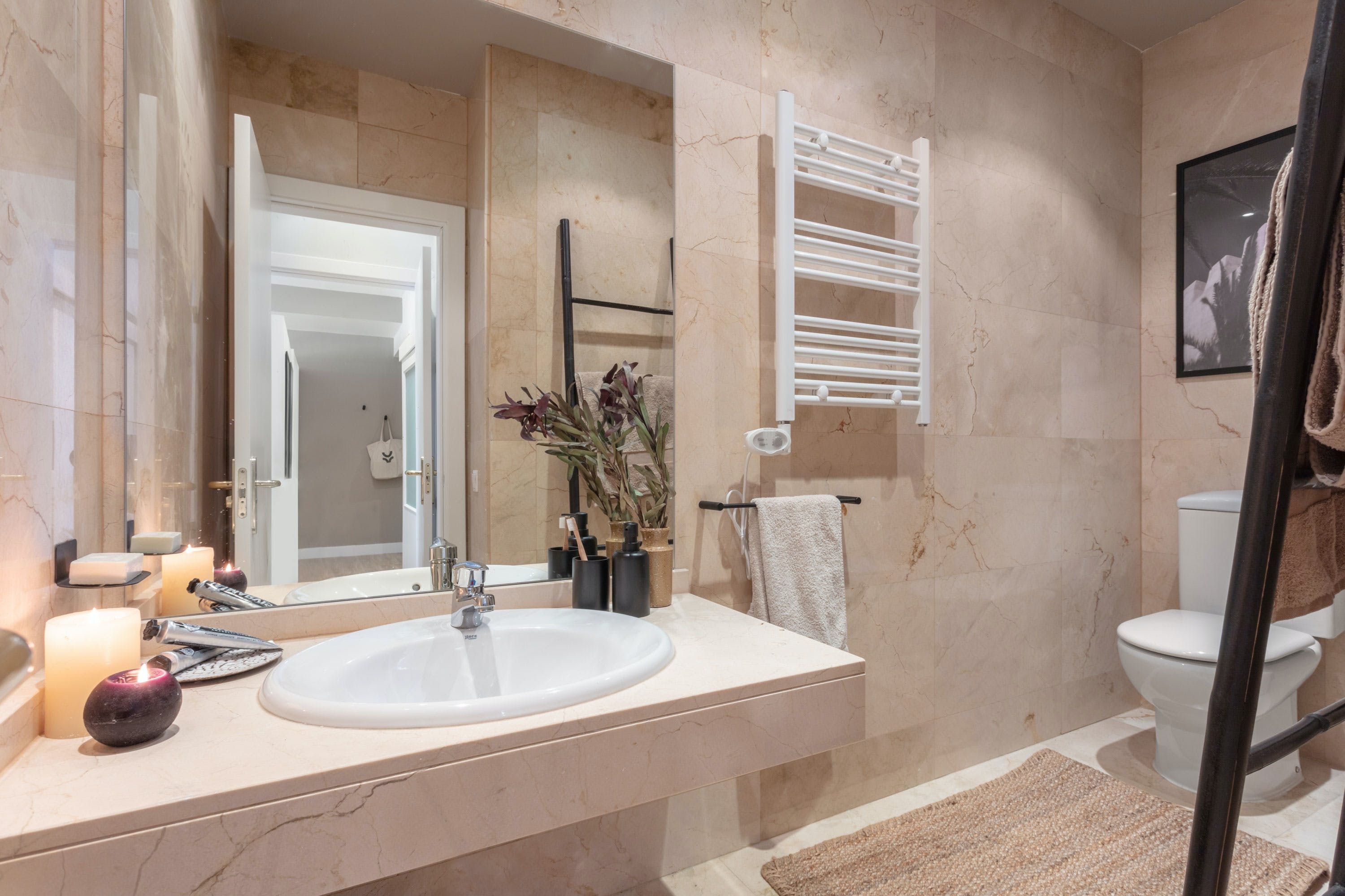 When work isn’t on the agenda, you can spend days sampling the city’s diverse tapas restaurants, admiring modern works in the Museum of Contemporary Art and evenings soaking up the culture with a concert at the National Music Auditorium. When you return home to your sumptuously stylish apartment, enjoy a glass of wine out on the balcony, or sink into the plump linen sofas under the glow of the pendant lamps.
