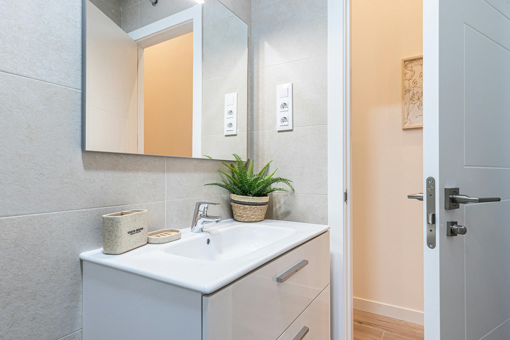 *At full occupancy, two guests will be sleeping on the sofa bed in the living room. *While we like the overall design of this home, it is lacking in natural light. *Given the home's central spot, expect to hear some street noise throughout your stay. *You won't find a welcome hamper or basic essentials here, so we'd recommend packing some bits and bobs to get you started. *This home is located within an apartment building, with a shared entrance. Expect to bump into other guests during your stay. *If you're travelling for work, you won't find a dedicated desk here. However, the dining table doubles up as a laptop-friendly workspace.