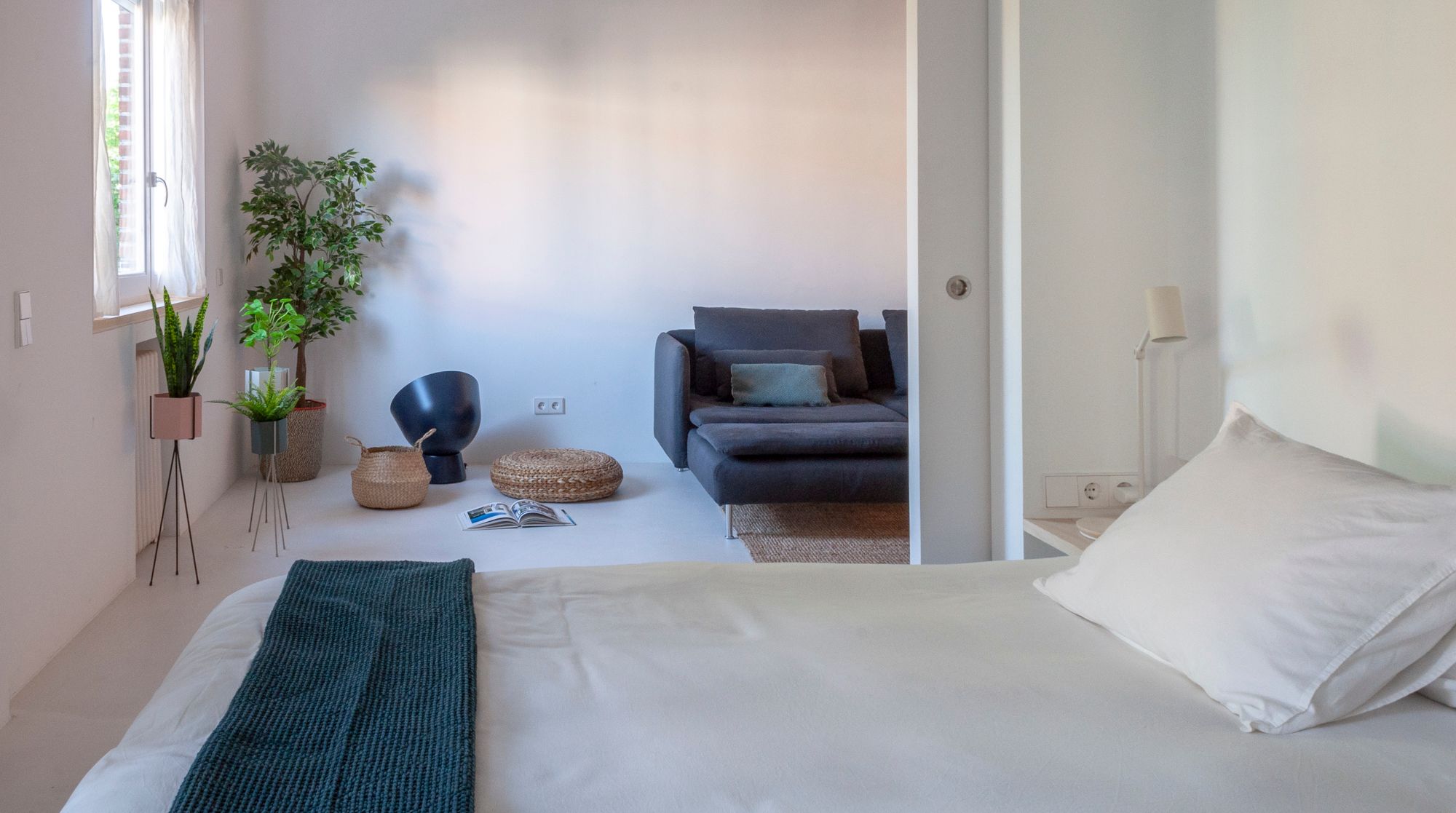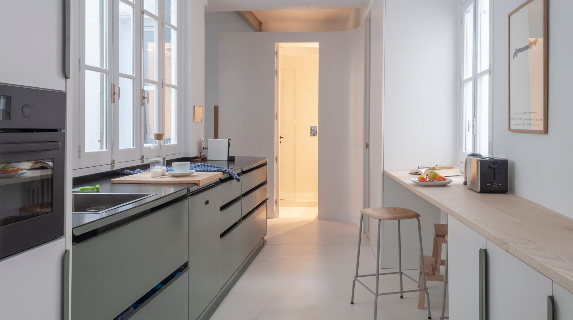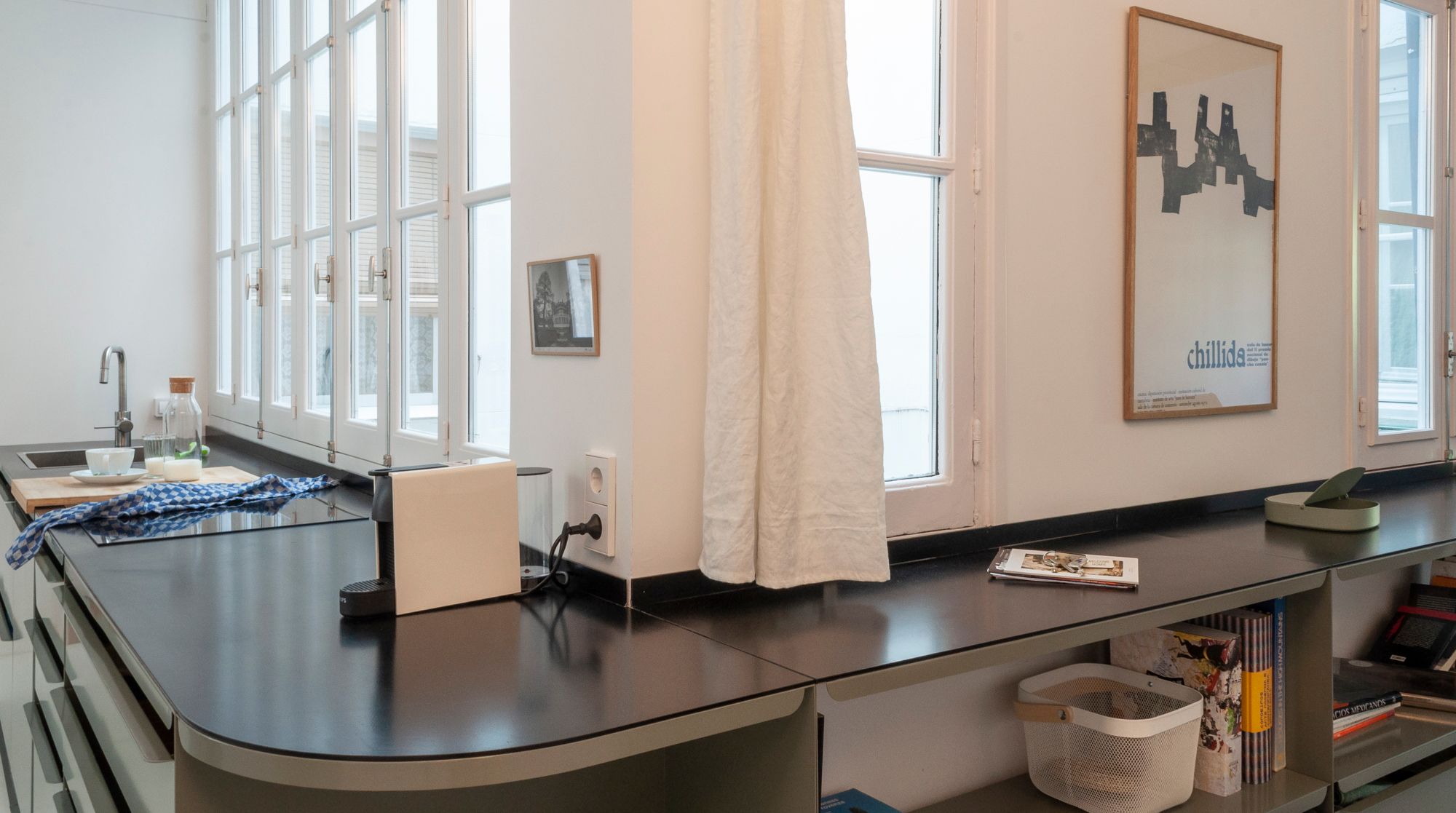 This minimalist home's most prominent feature is the heavy use of drapes. You'll see them separating the master bedroom from the living room, the workspace, and the kitchen has its own stylish set too. True, there is more of a hotel vibe here, but at the same time, this is a sleek, well-designed and super comfortable home — not to mention the excellent traffic links to the rest of Spain via Atocha station.