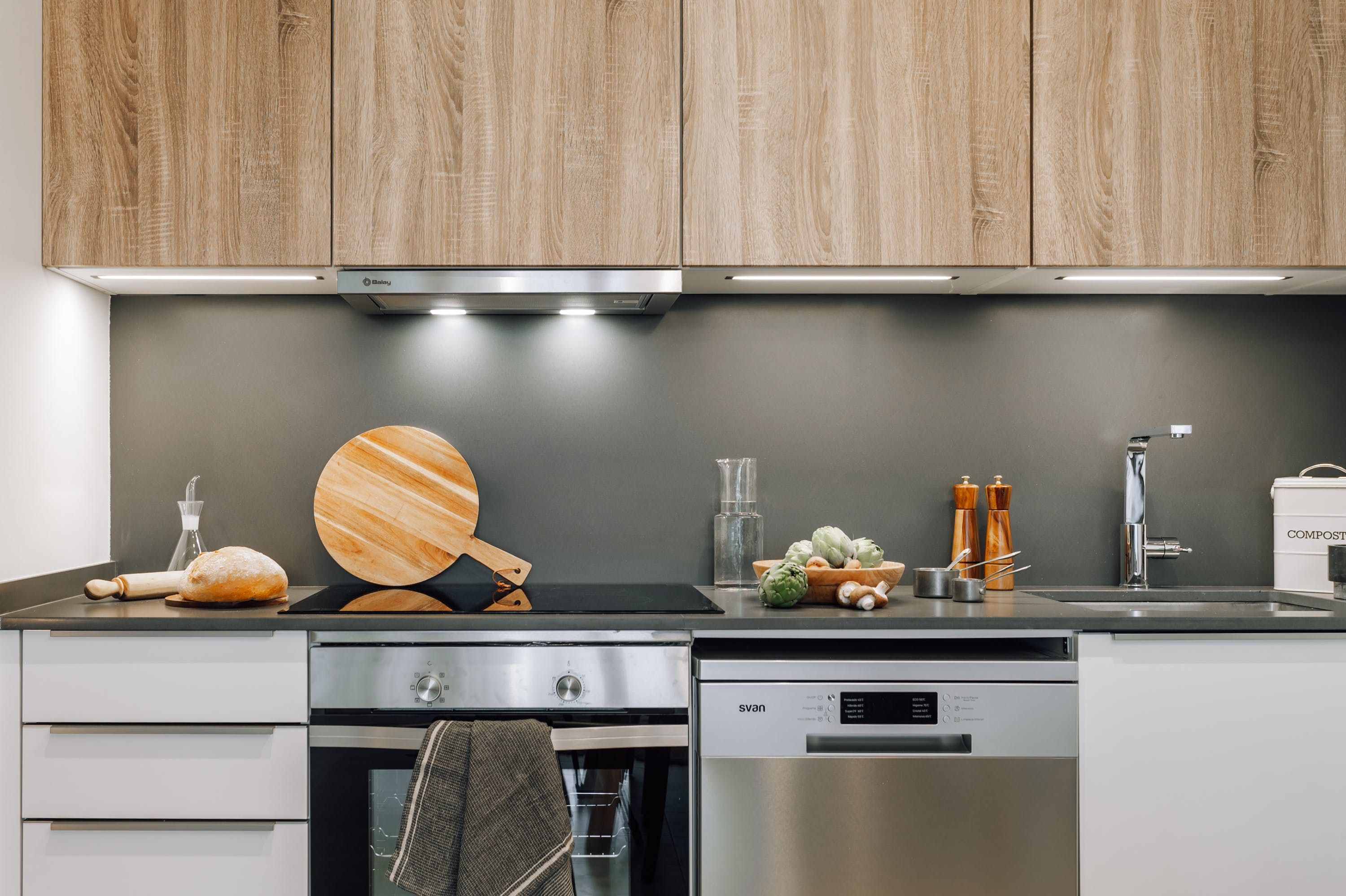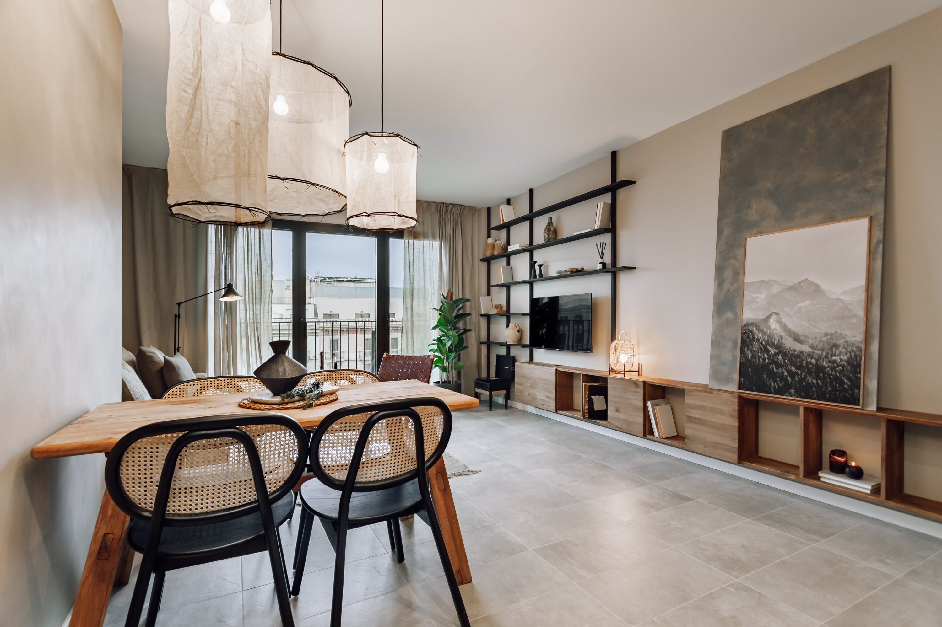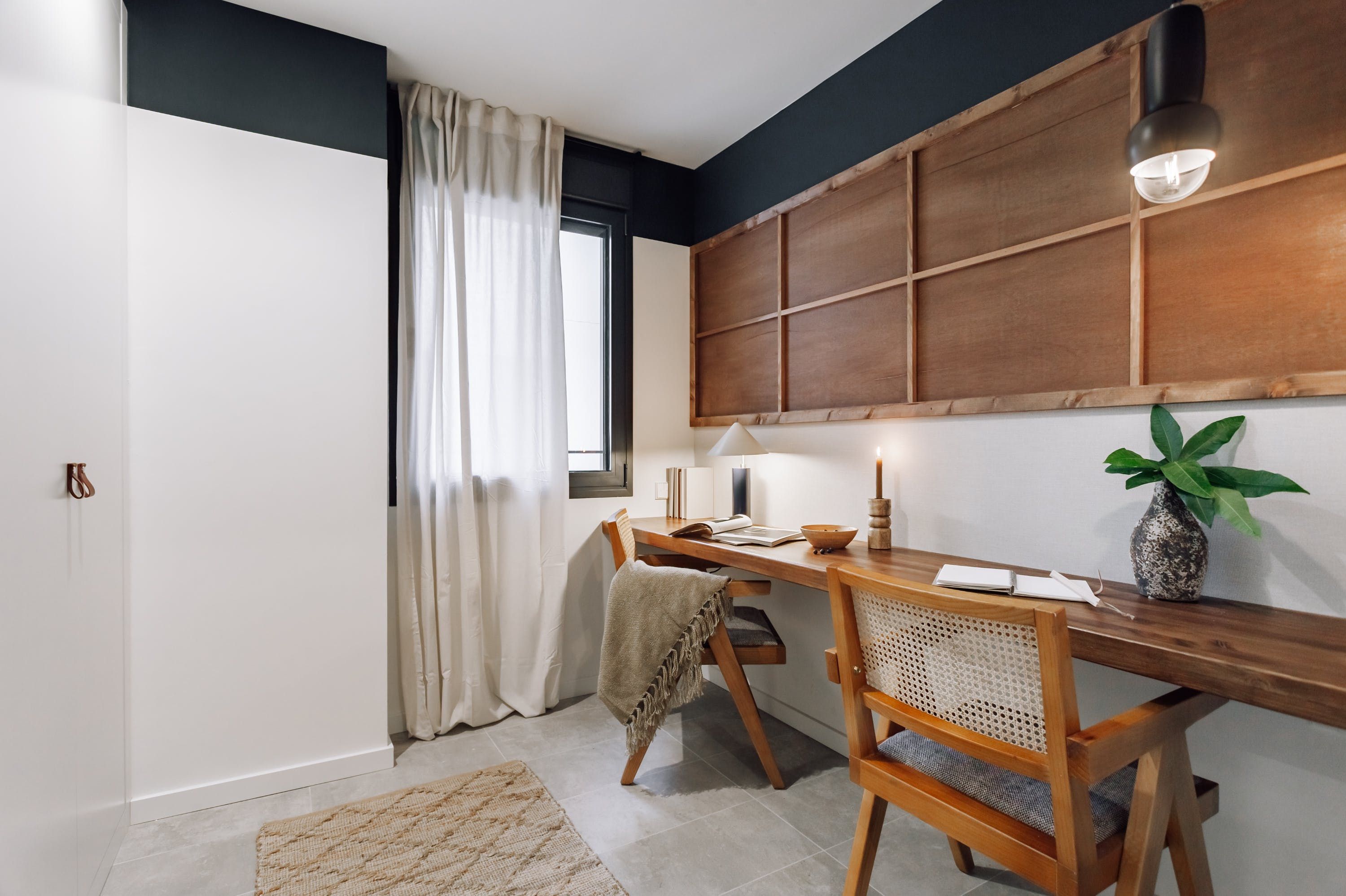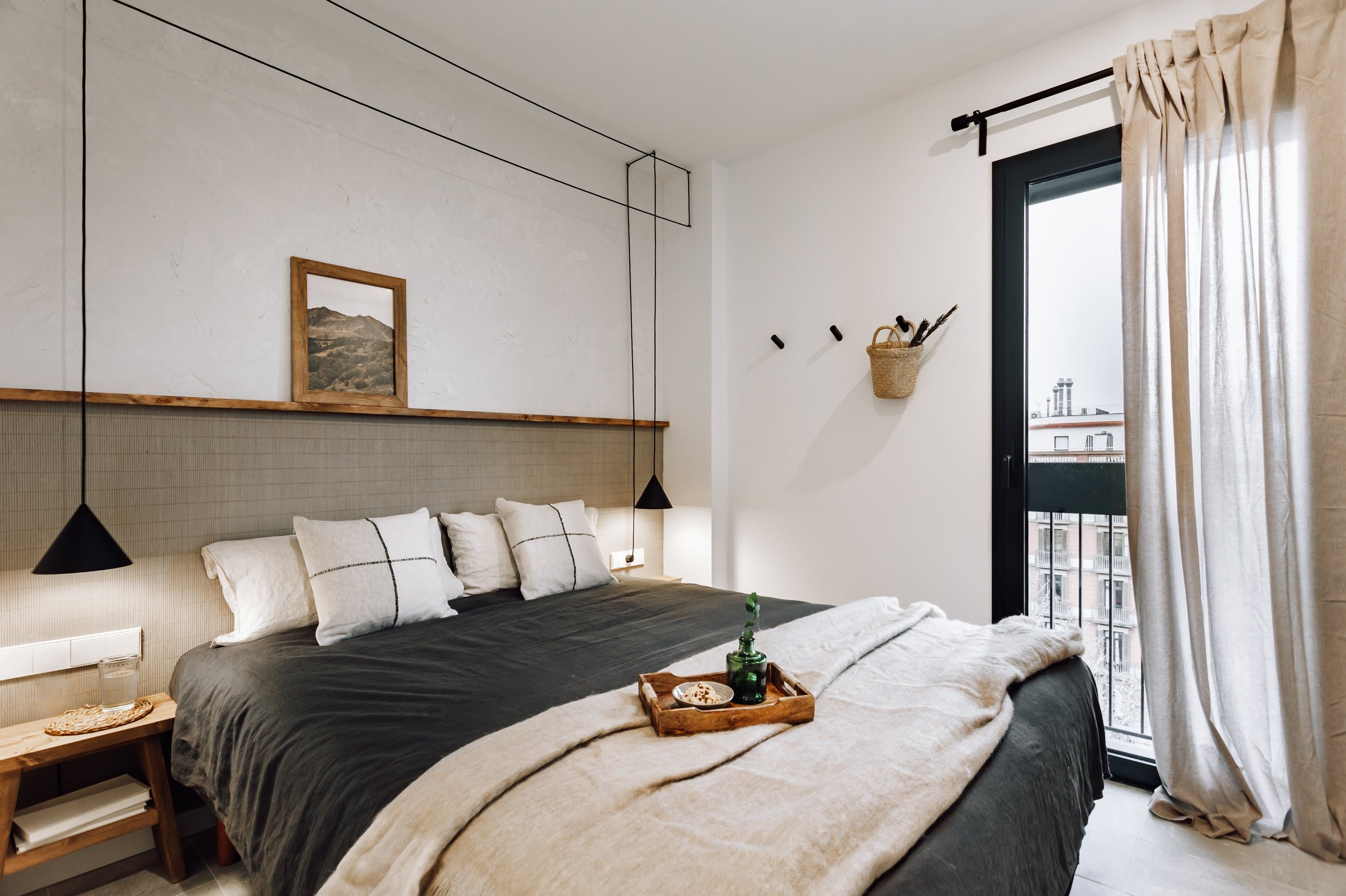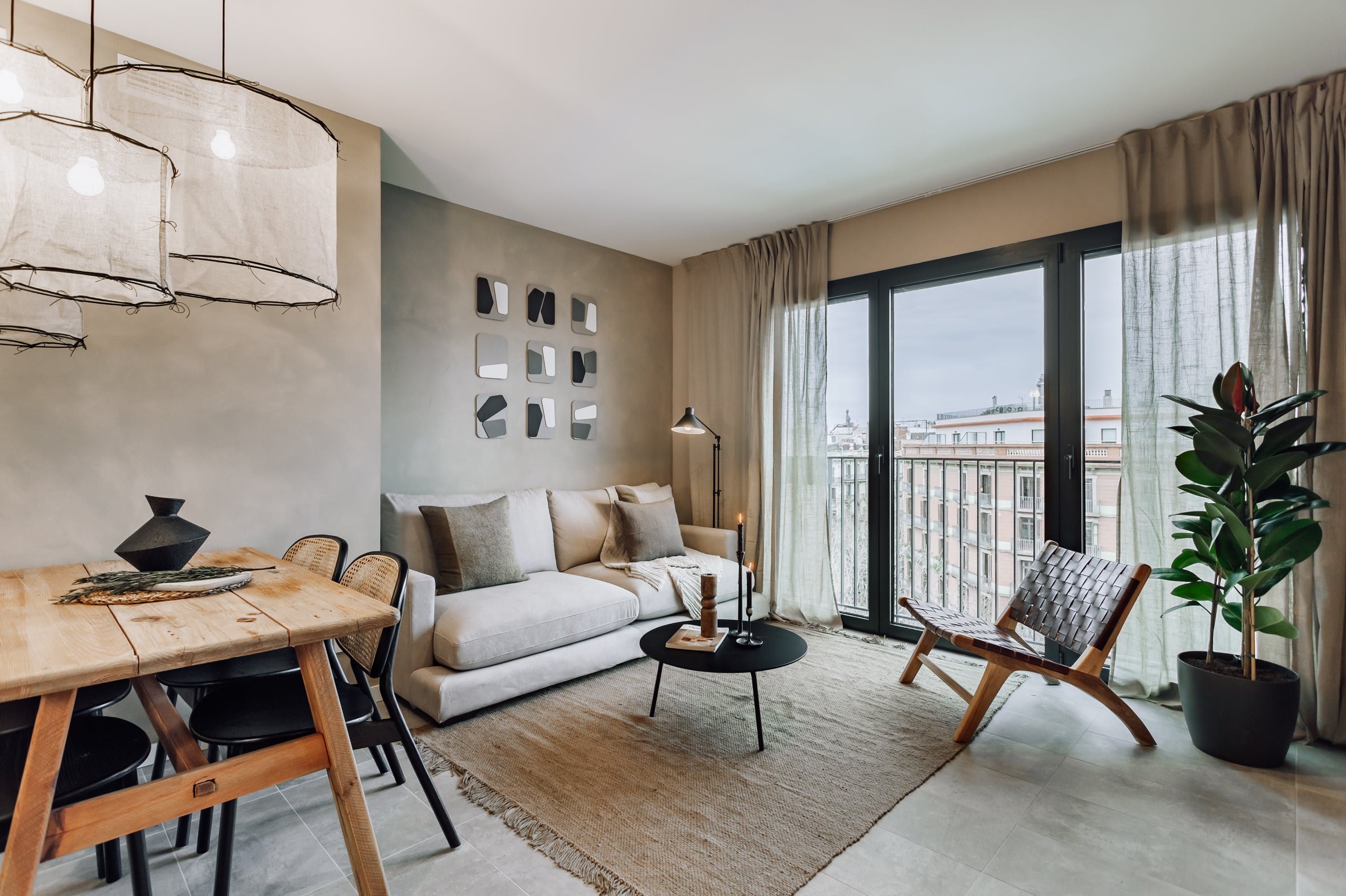 We love the soft tones and simple, rustic style of this apartment. When you’re curled up with a guidebook in the light-filled living and dining space, it’s easy to forget you’re in the heart of Barcelona’s bustling Eixample district. But step outside, and you’ll find yourself surrounded by bars, restaurants and theatres. You’re a short walk from Plaça Universitat and Plaça de Catalunya, where you can people-watch for hours. The apartment’s full-length windows make it bright and welcoming. There’s also an office for those needing to work during their stay.